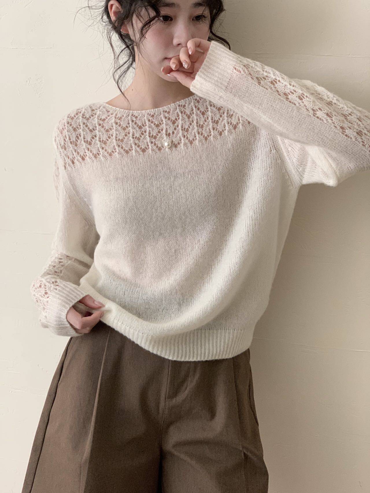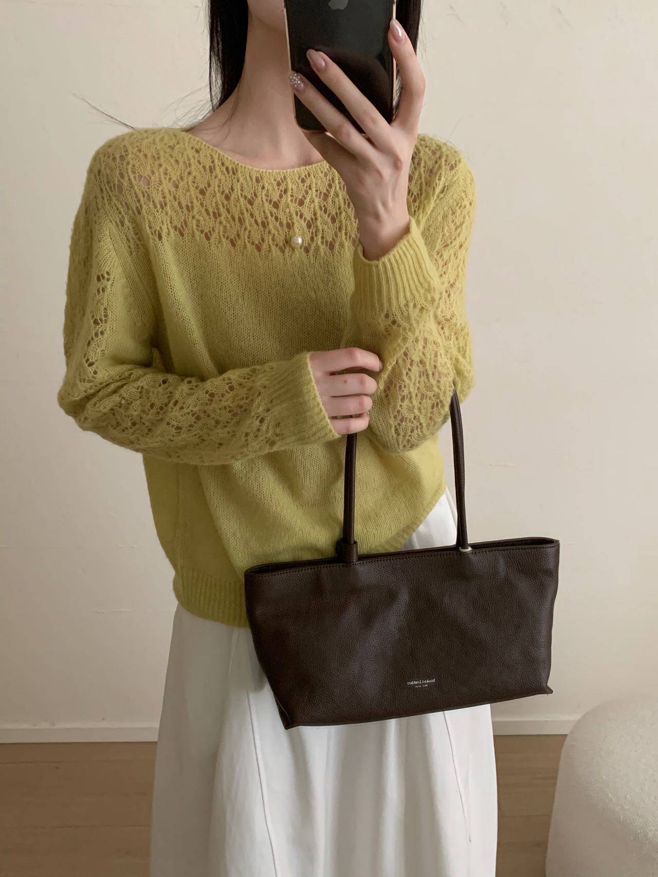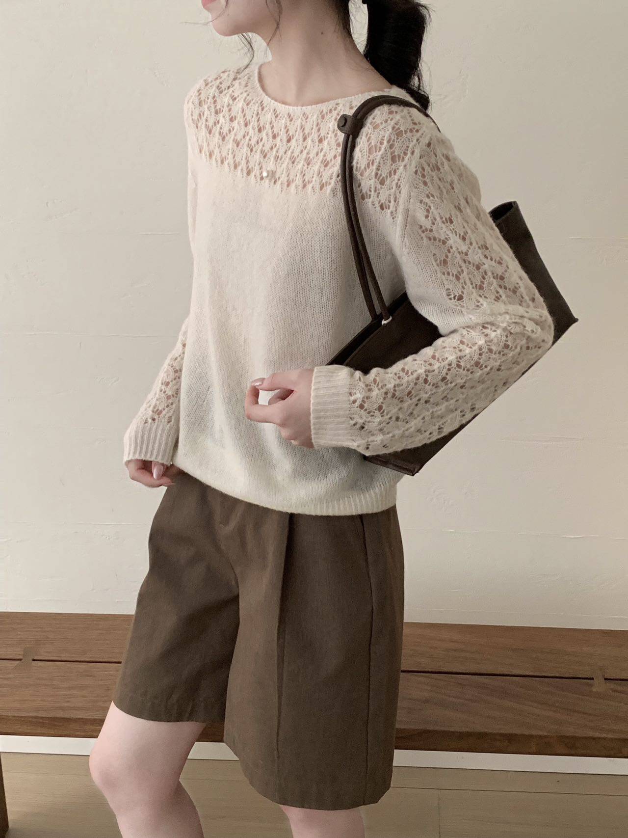 Alpaca Wool 27120 Spring New Korean Style Loose Slimming Round Neck Hollow Knit Sweater for Women Versatile Sweater