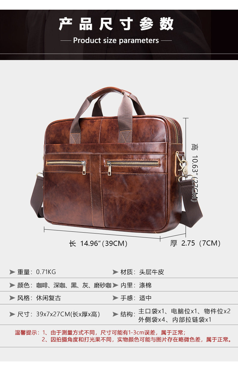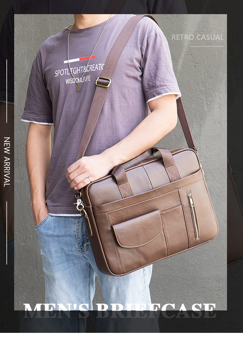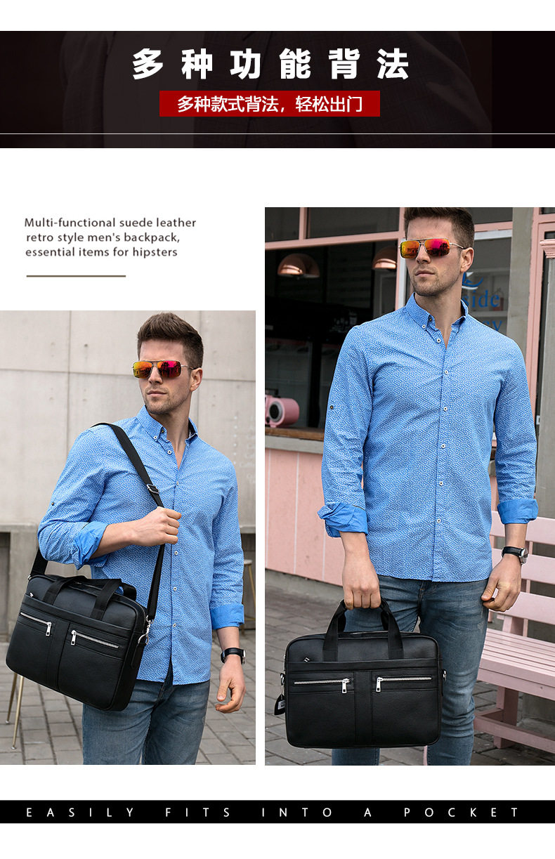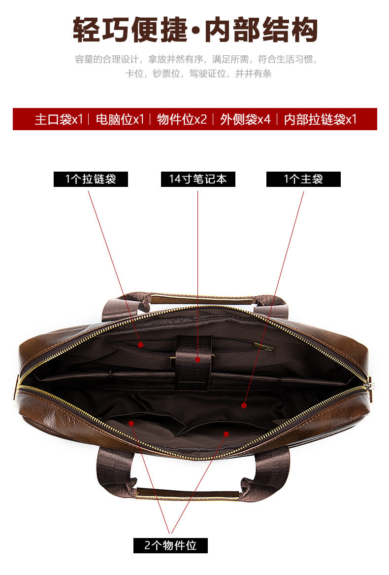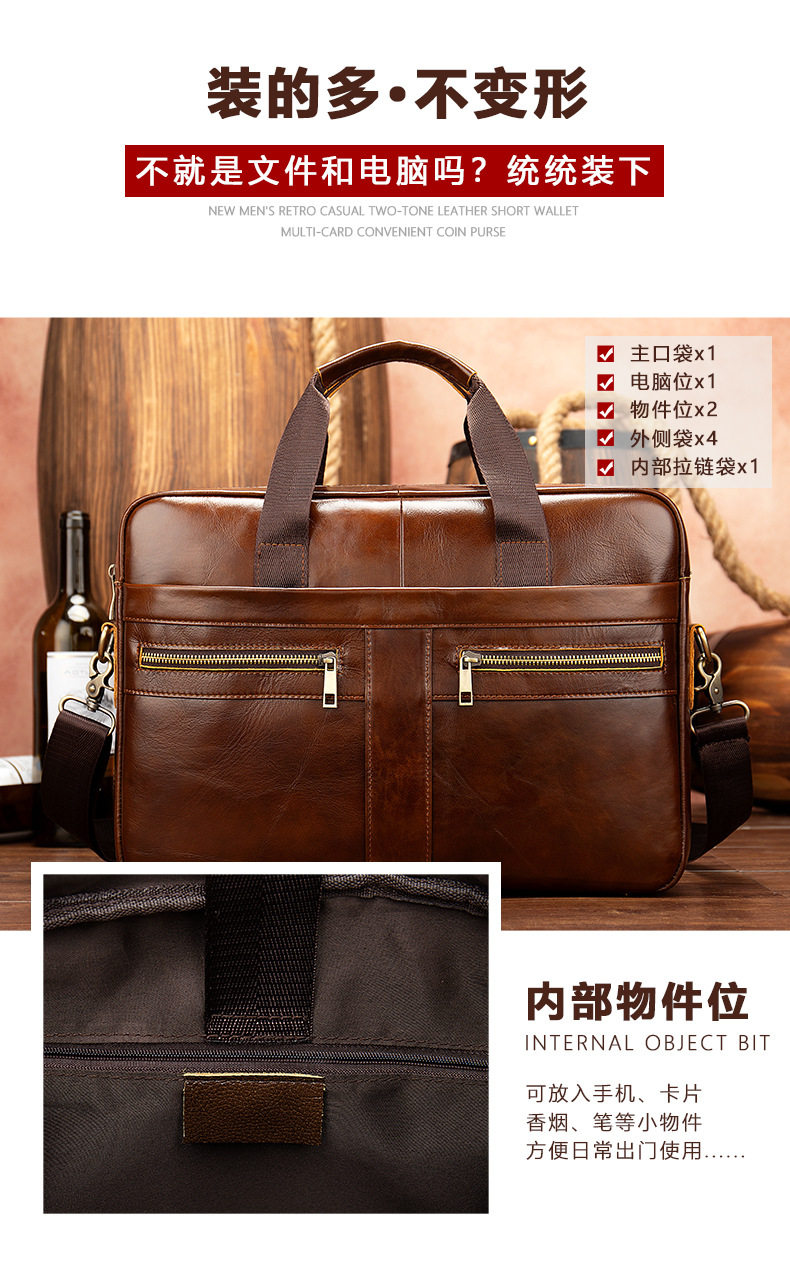 Lendaryer Briefcase Men's Business Travel Commuter Handbag First Layer Cowhide Casual Large Capacity Computer Bag