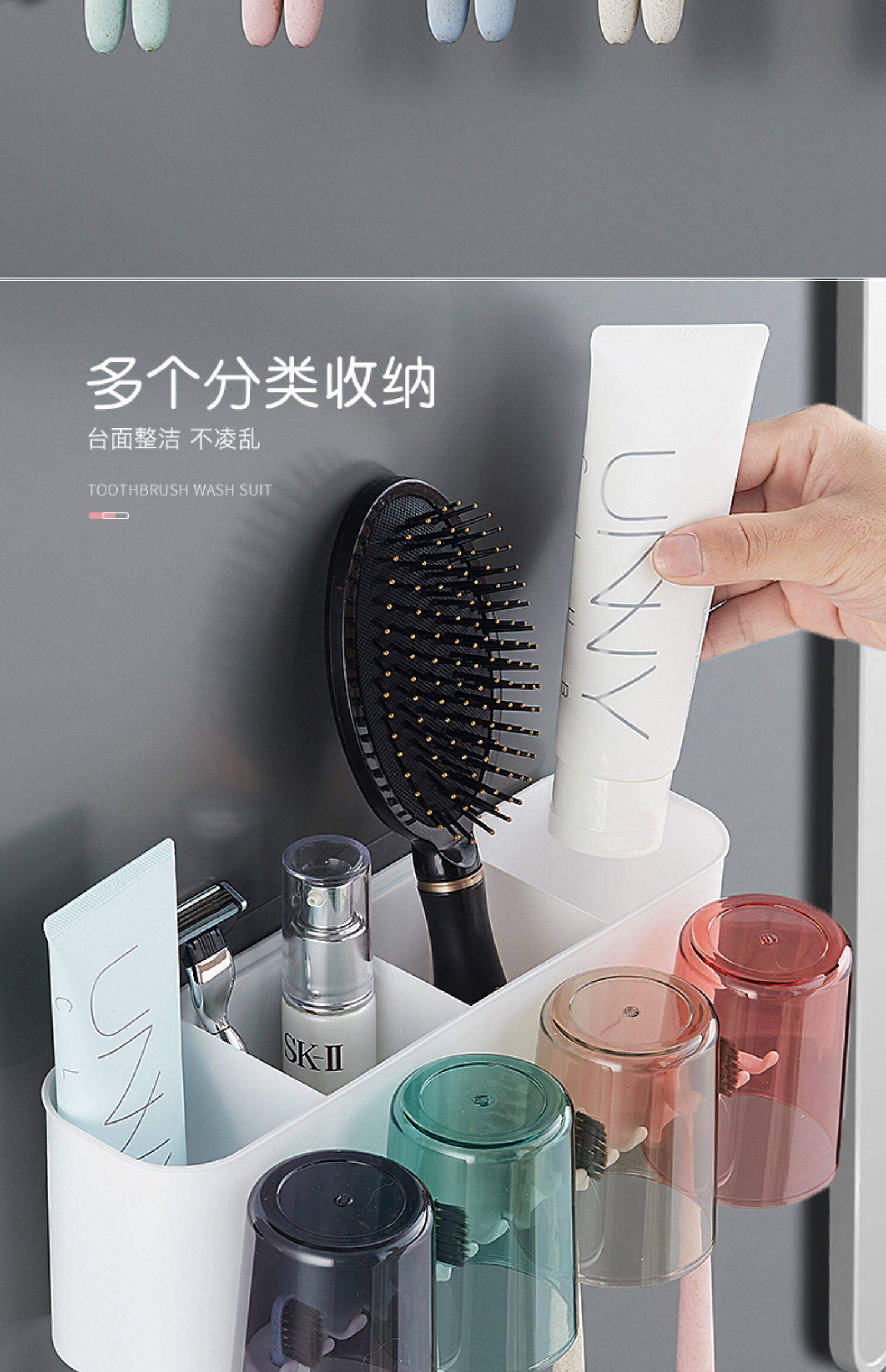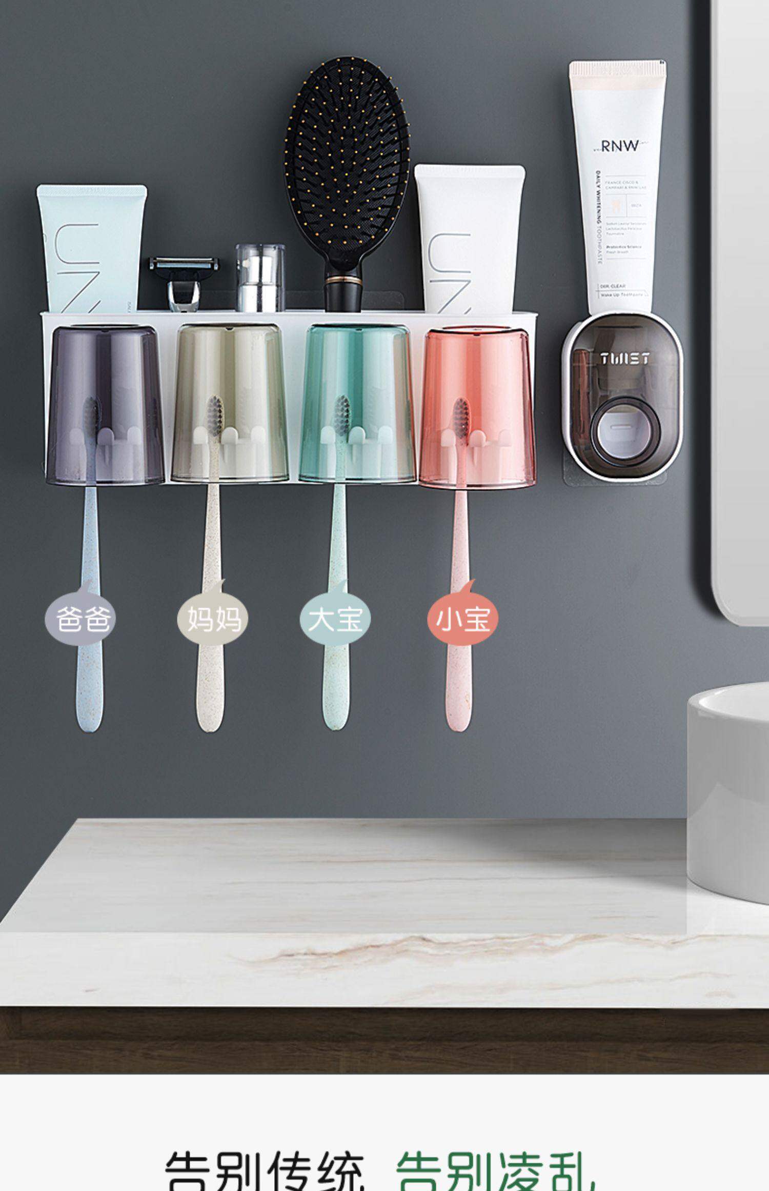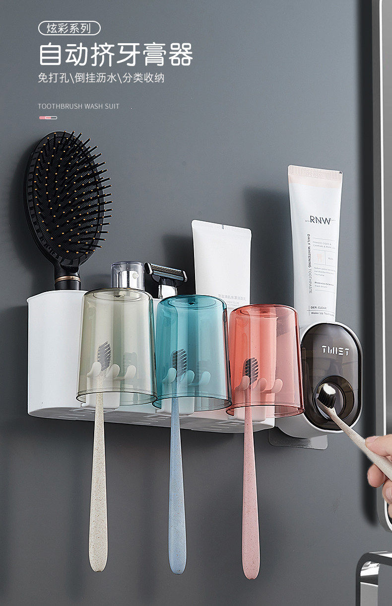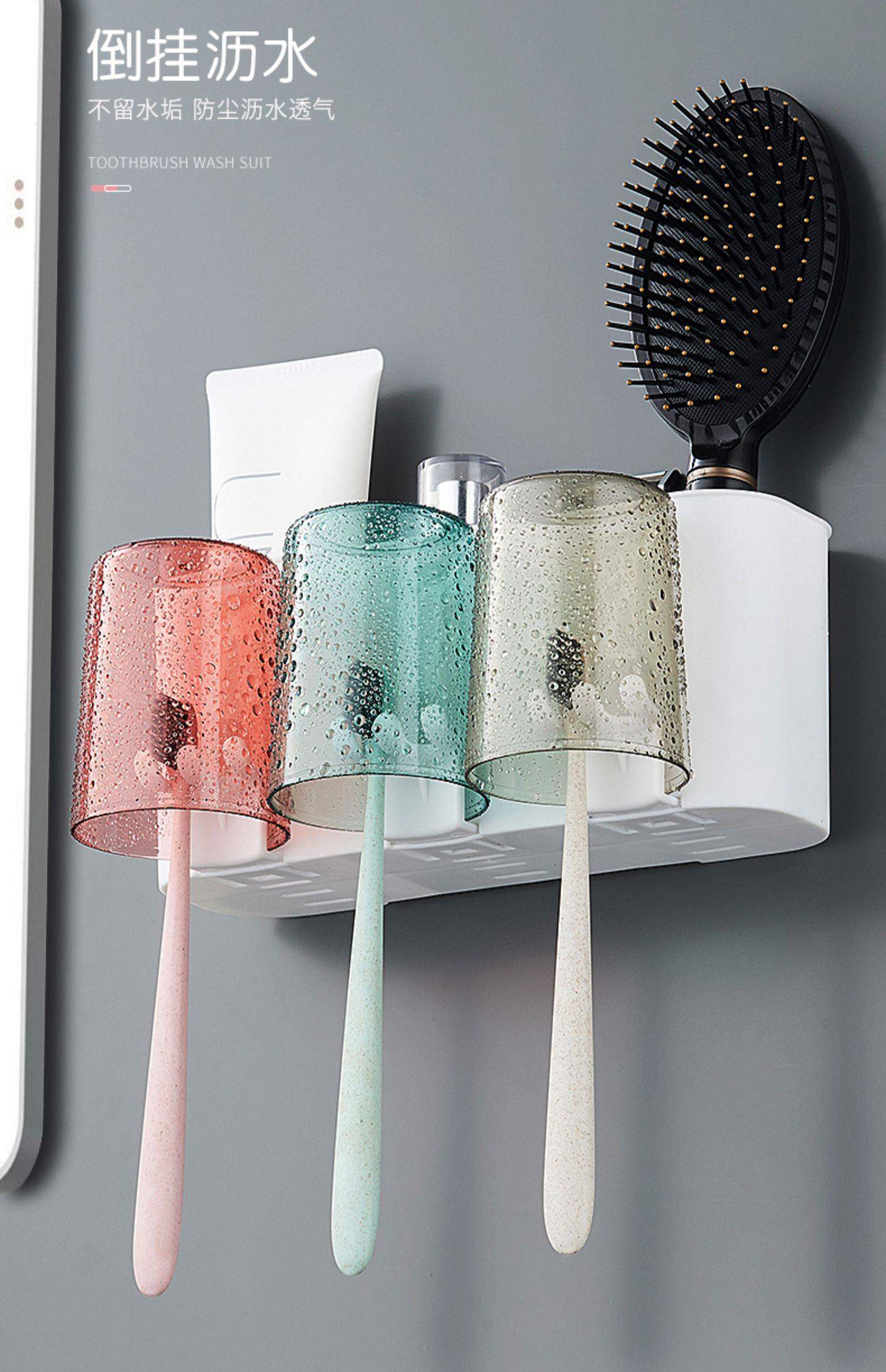 Toothbrush rack, no punching hole, bathroom mouthwash cup, tooth cup, toothbrush rack, wall hanging, household toothbrush, toothpaste set