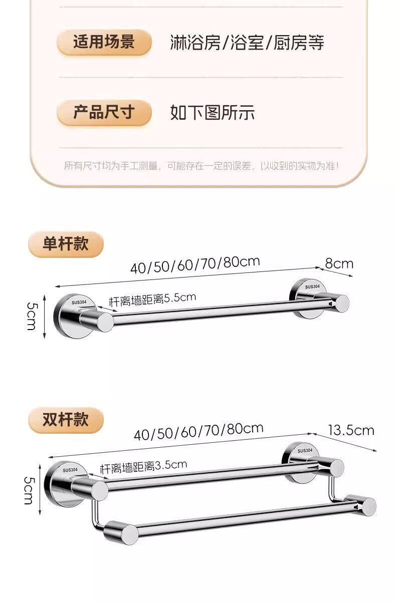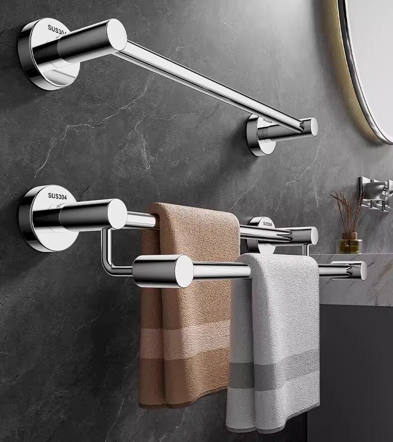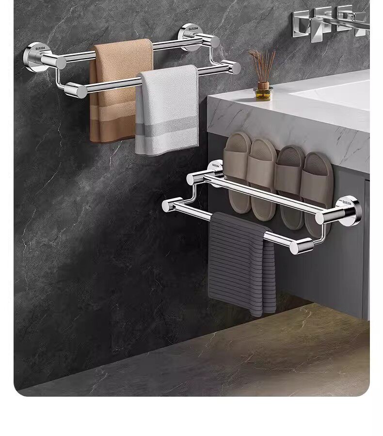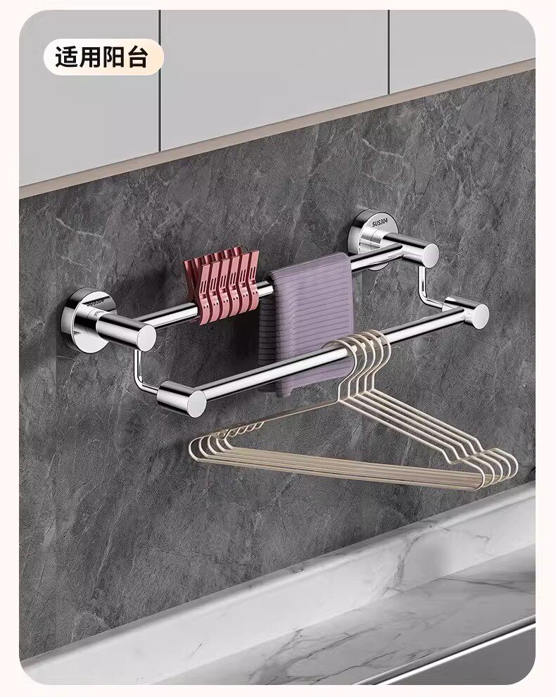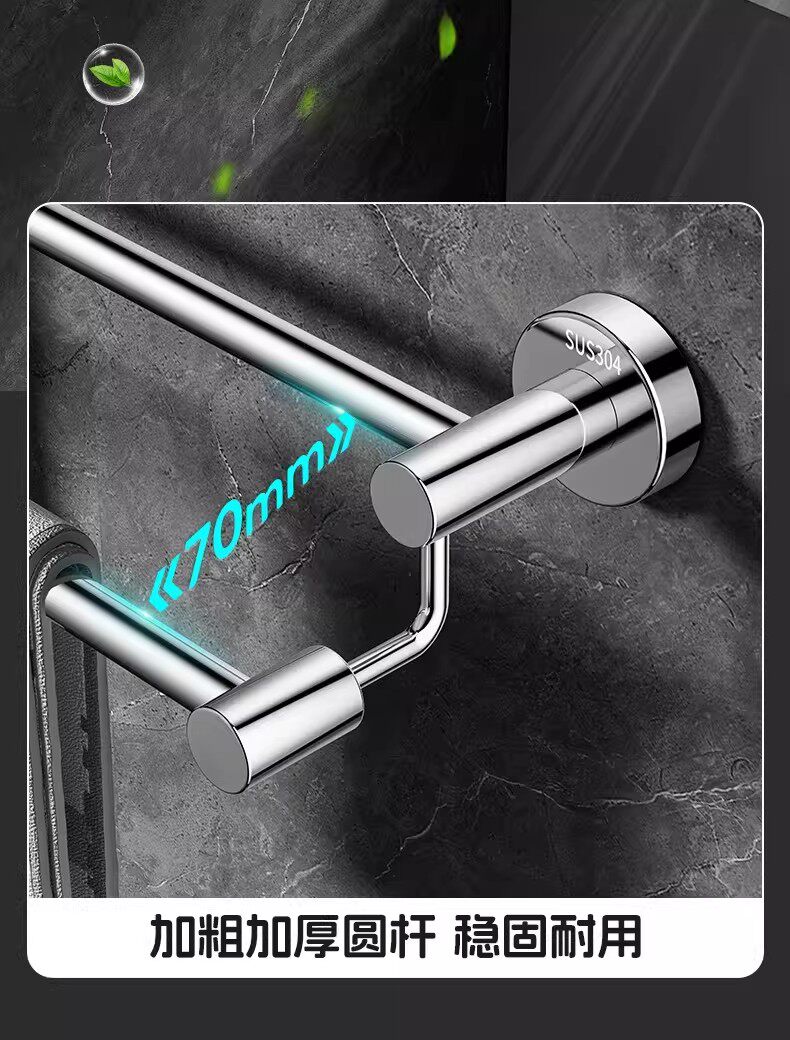 German Seiko 304 stainless steel thickened single-pole bathroom double-pole towel rack without punching towel rail