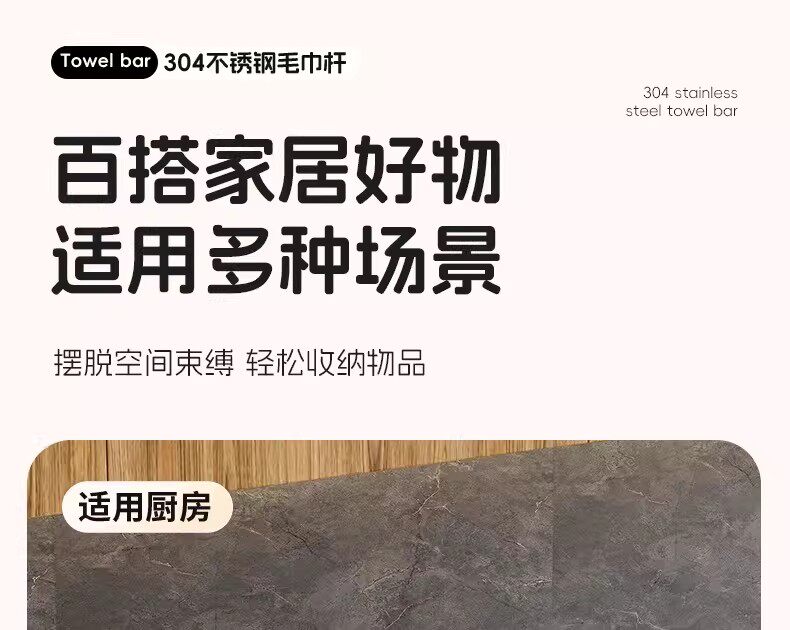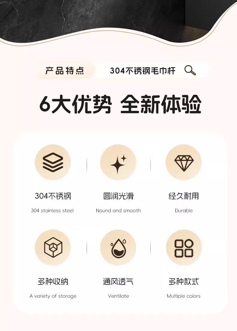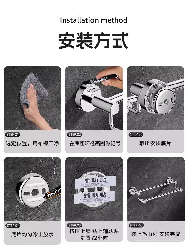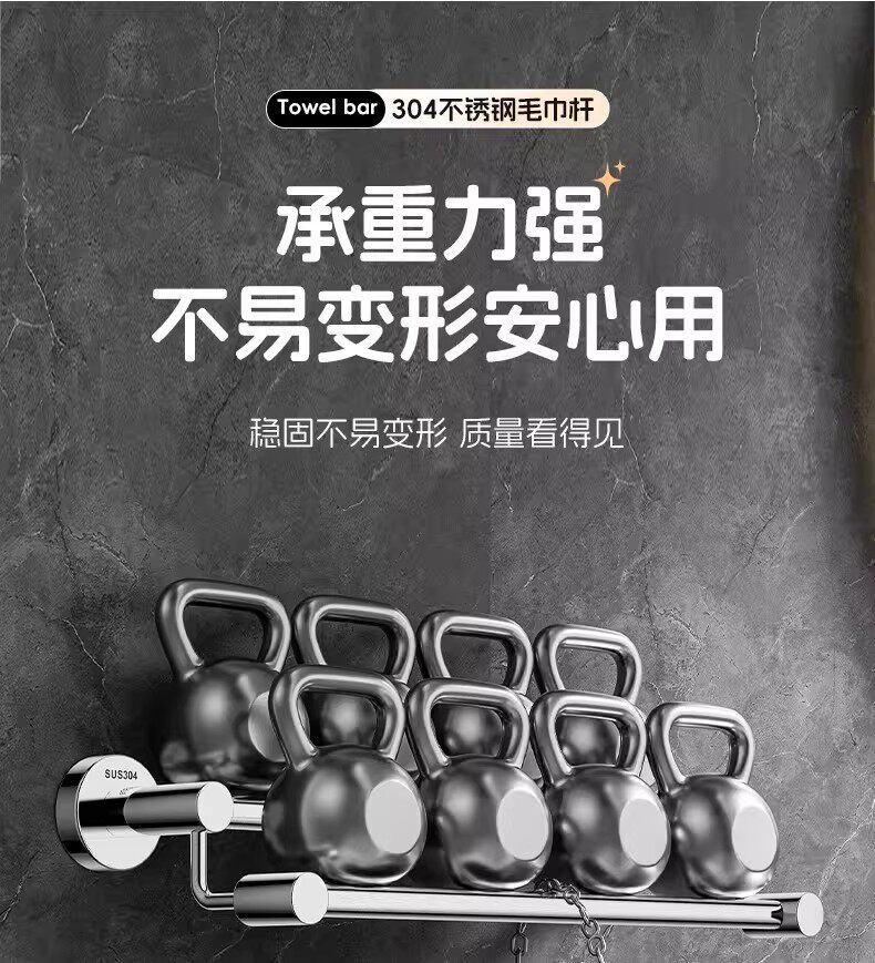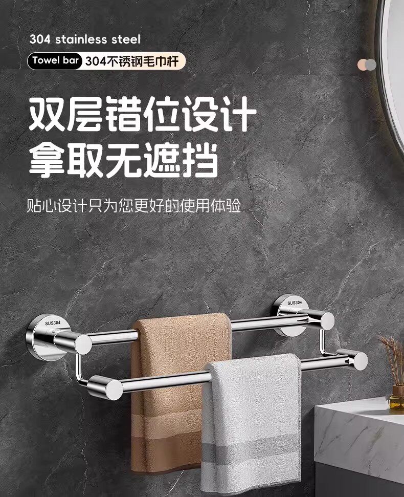 German Seiko 304 stainless steel thickened single-pole bathroom double-pole towel rack without punching towel rail