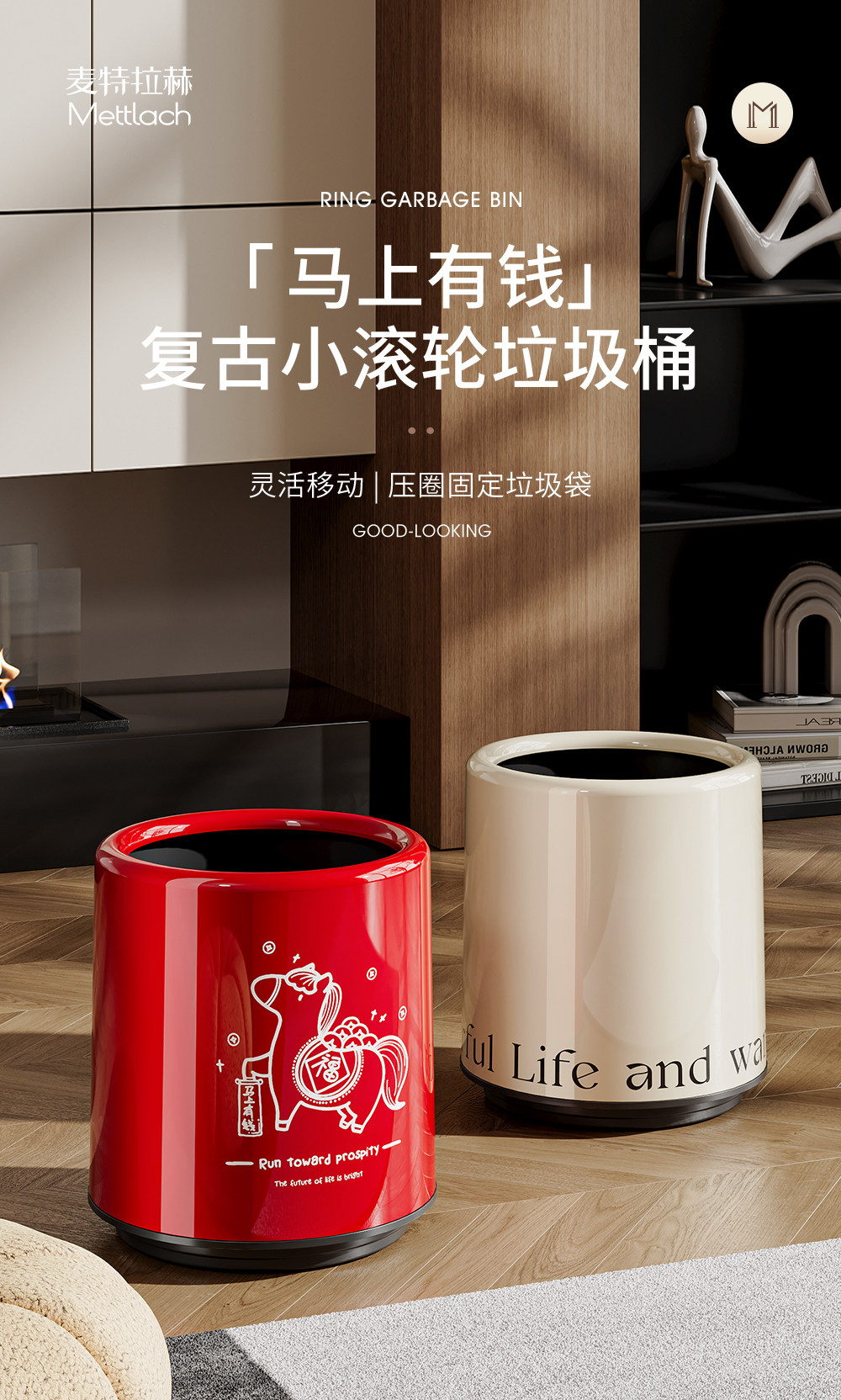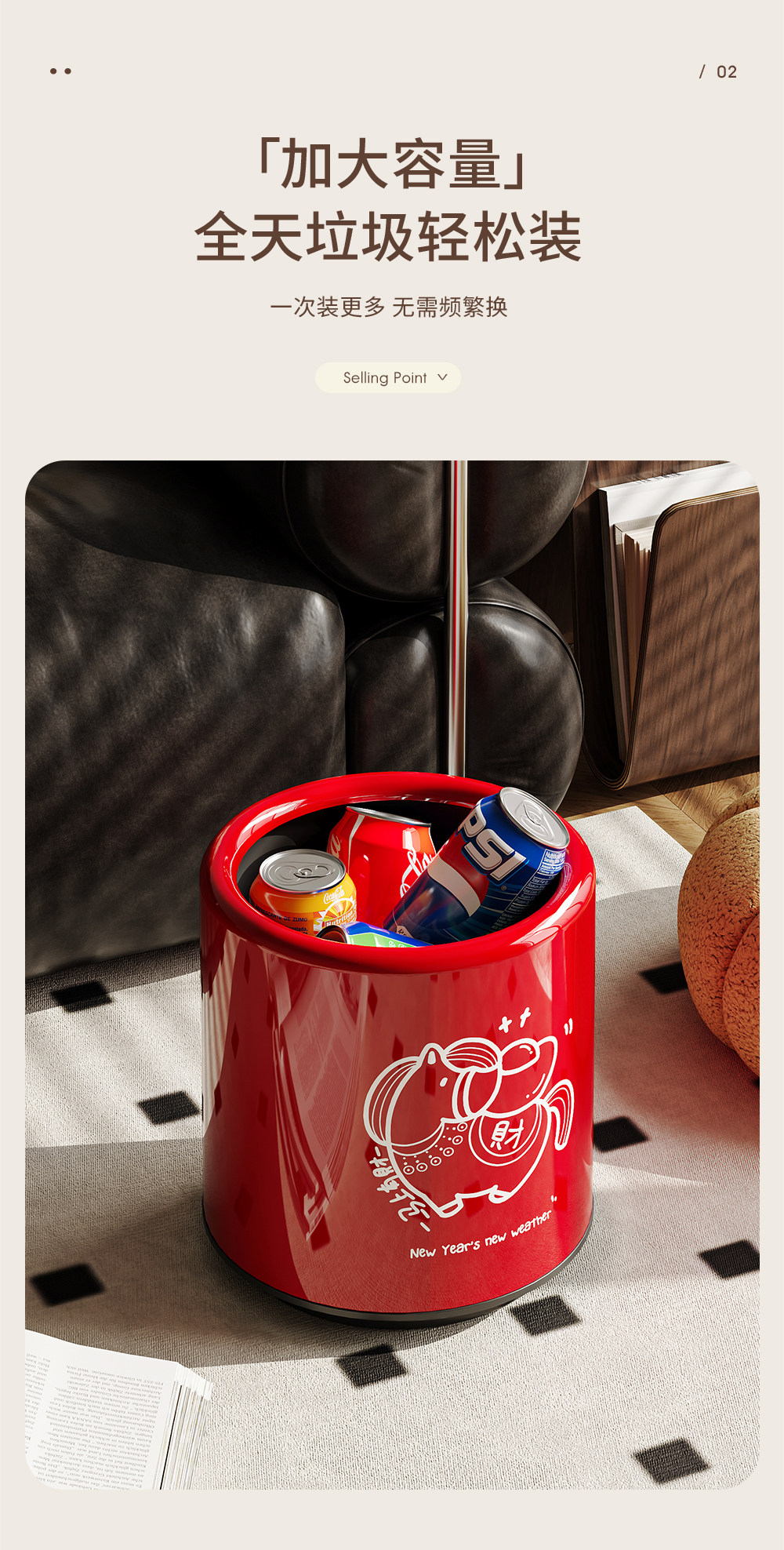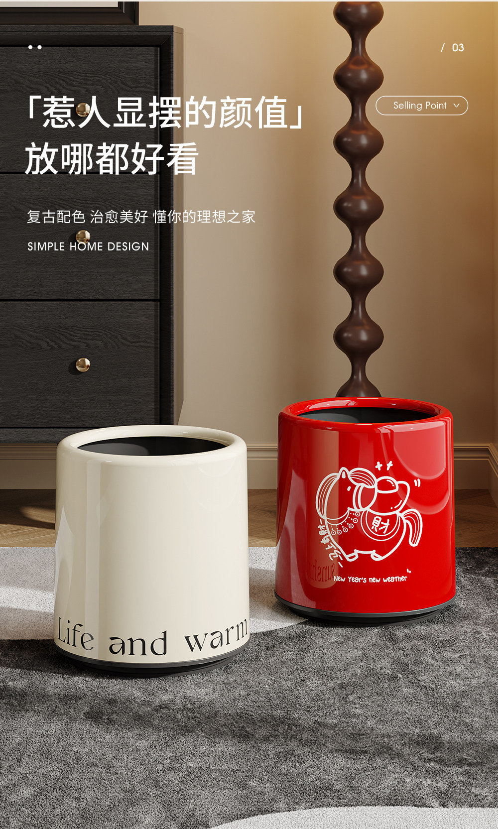Trash Can for Home Use in Living Room, Luxury and High-End Design, Stylish Appearance, Suitable for Bedroom, Dormitory, Bathroom, Kitchen, Toilet, Office, Paper Basket