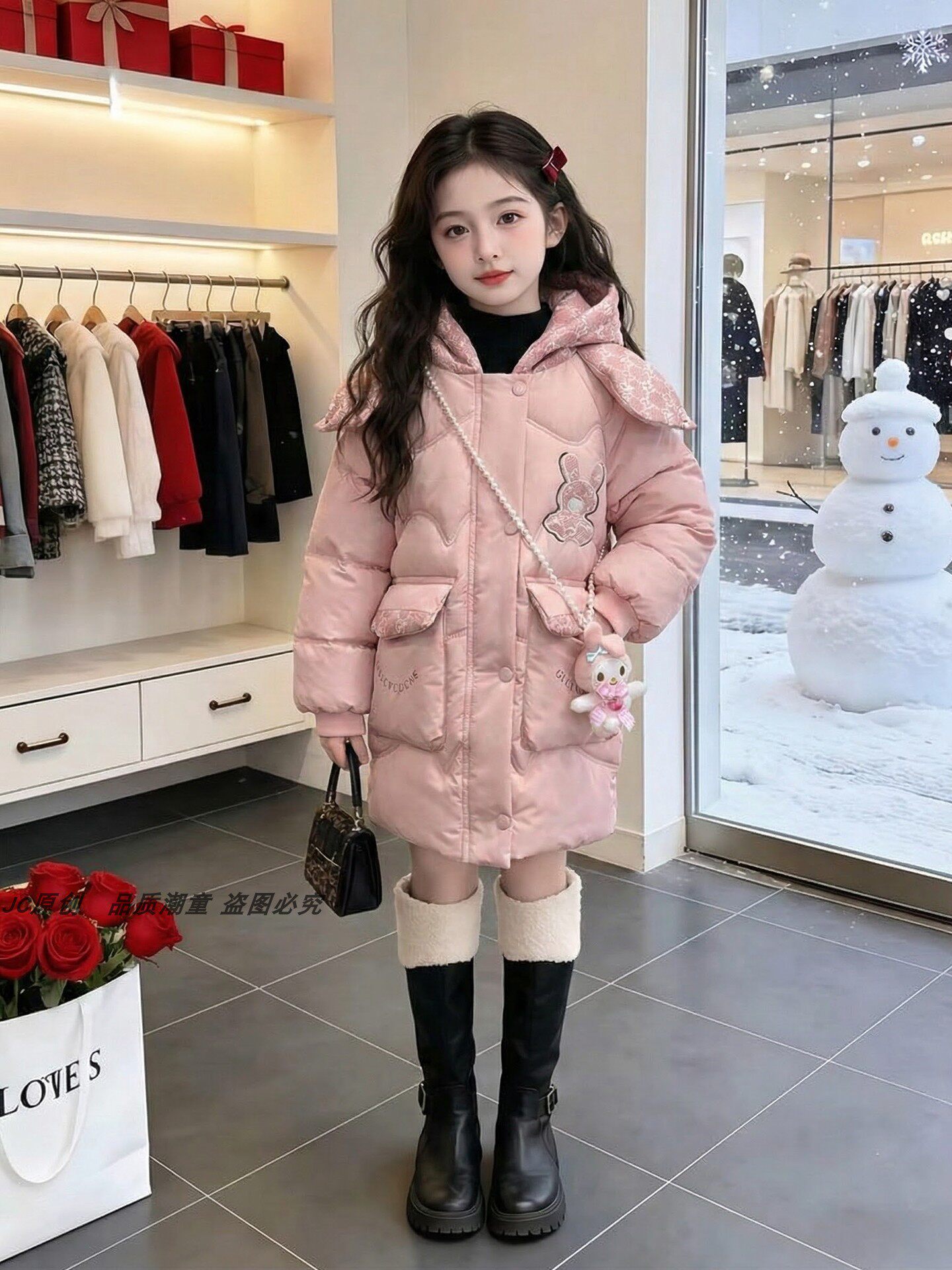 Girls' cotton-padded winter clothing 2026 new style girl's pink coat children's mid-length super nice winter cotton-padded jacket