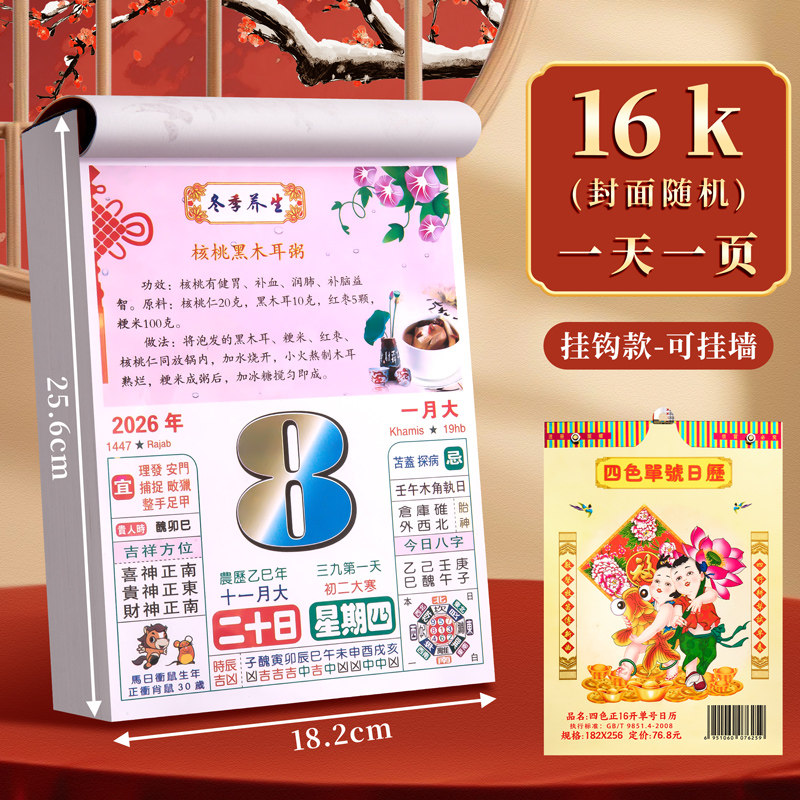 Colorful Wellness Calendar 2026 Year of the Horse Colorful Wellness and Food Knowledge Calendar Tear-Off Wall Calendar Wedding Large-Sized Almanac Lunar Calendar Traditional Calendar