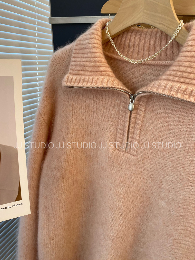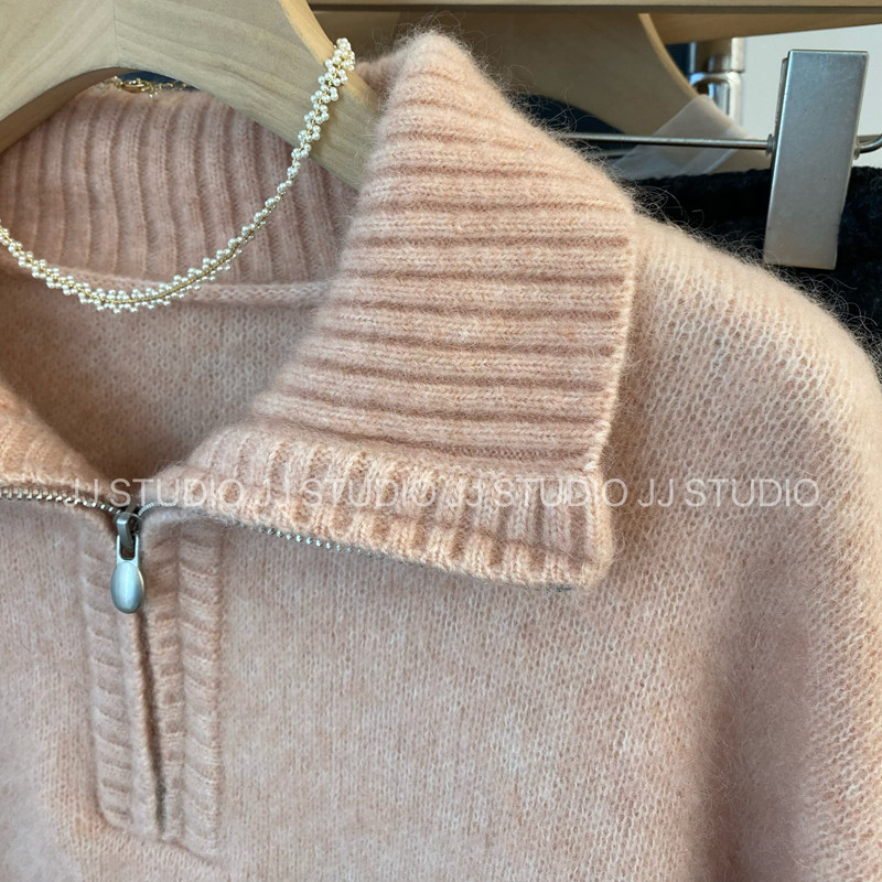 Half zipper! Korean Dongdaemun temperament warm thickened wool mohair pullover sweater for women