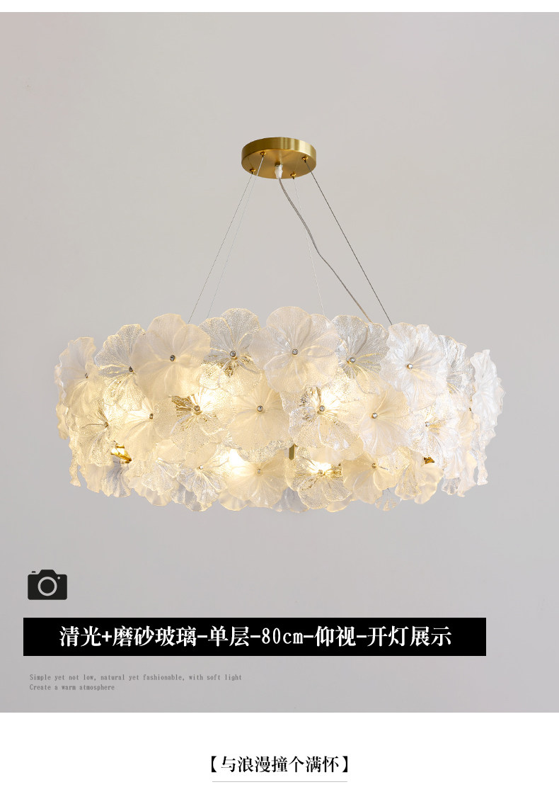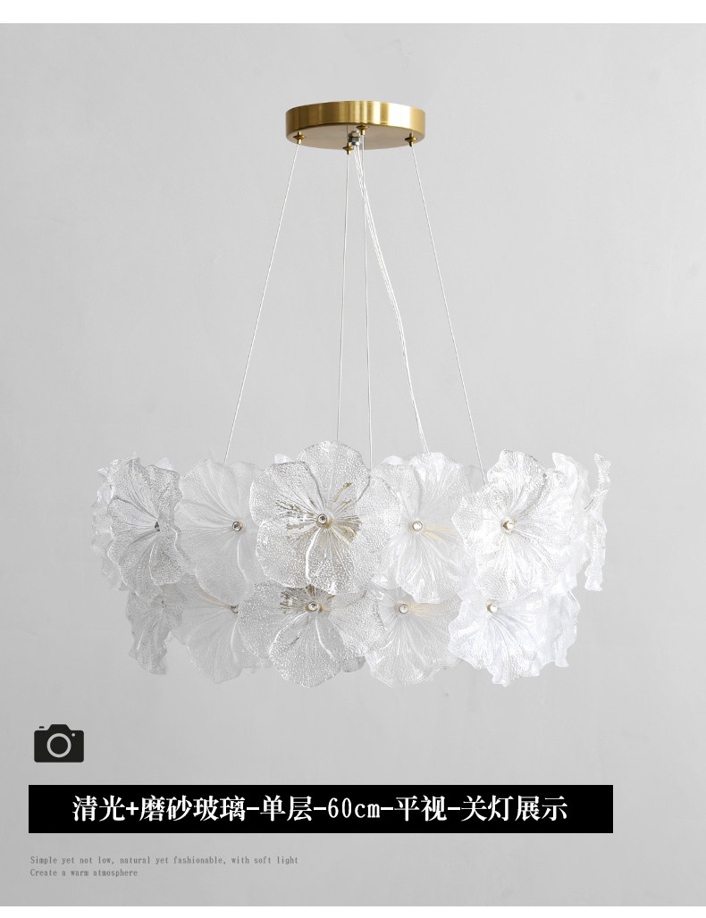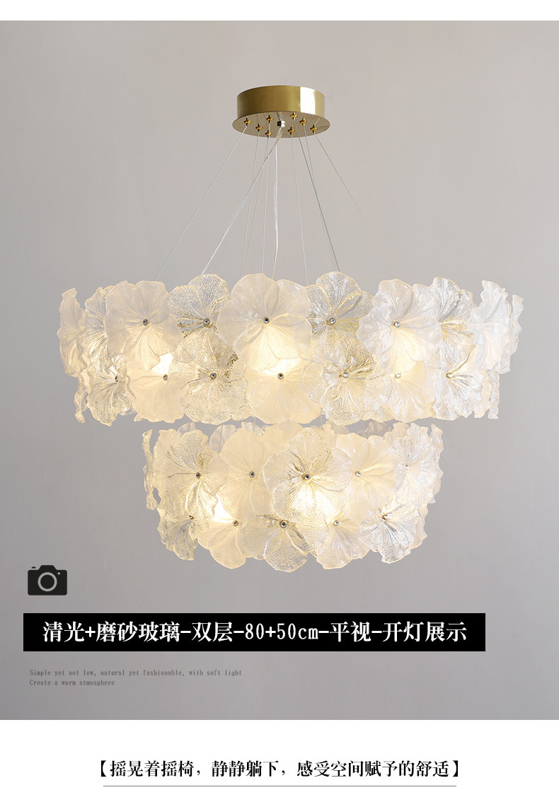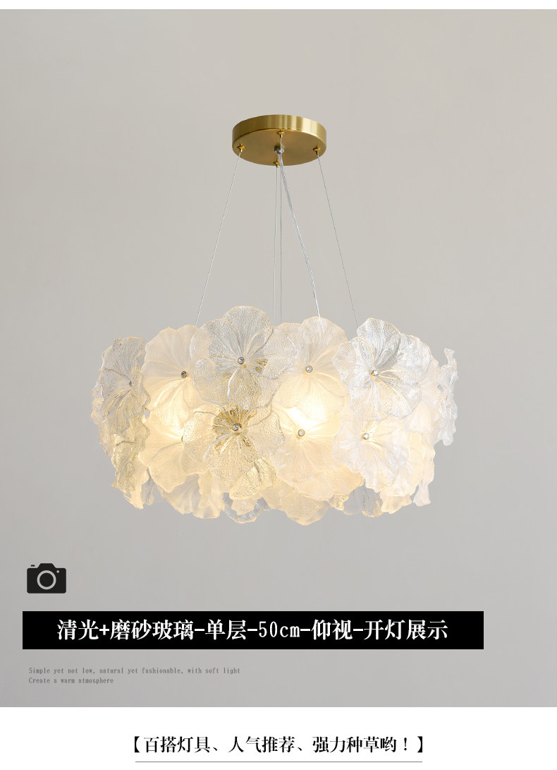 2026 New French Light Luxury Chandelier Living Room Lamp Restaurant Flower Shape Glass Creative Warm Bedroom Study Lamp