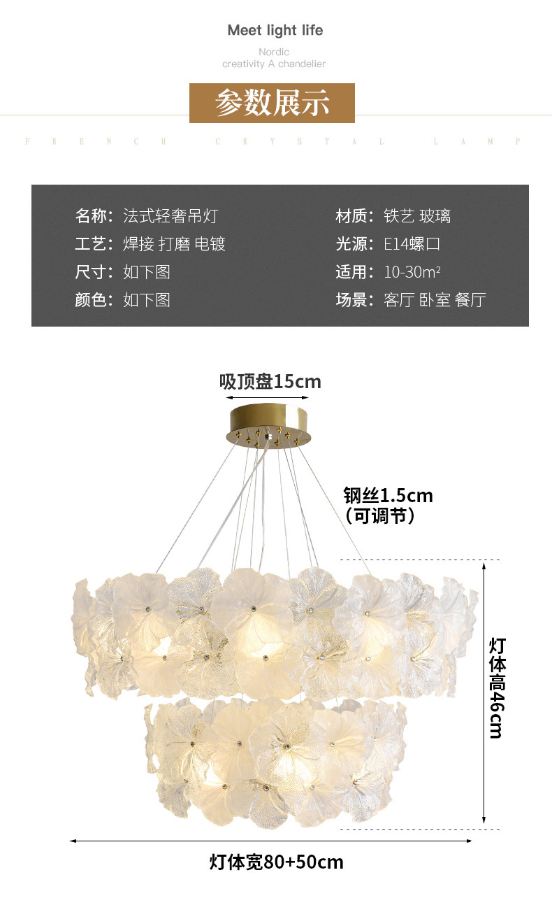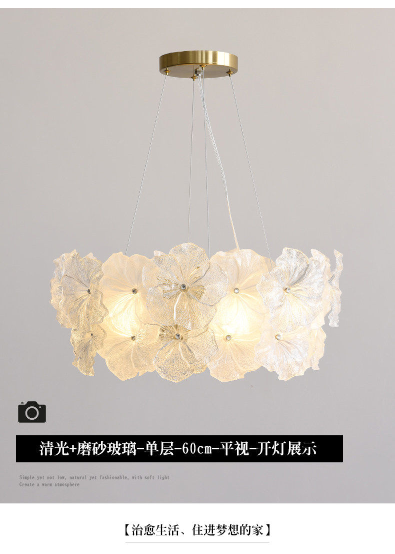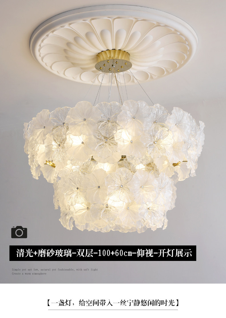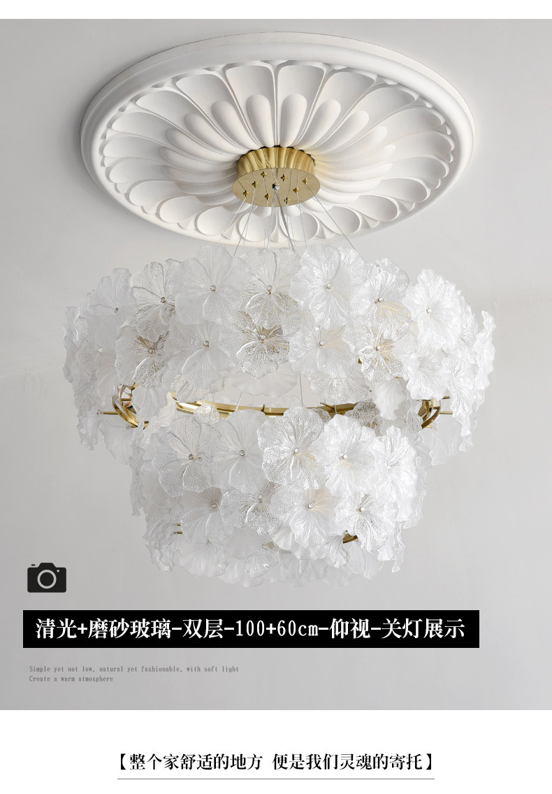 2026 New French Light Luxury Chandelier Living Room Lamp Restaurant Flower Shape Glass Creative Warm Bedroom Study Lamp