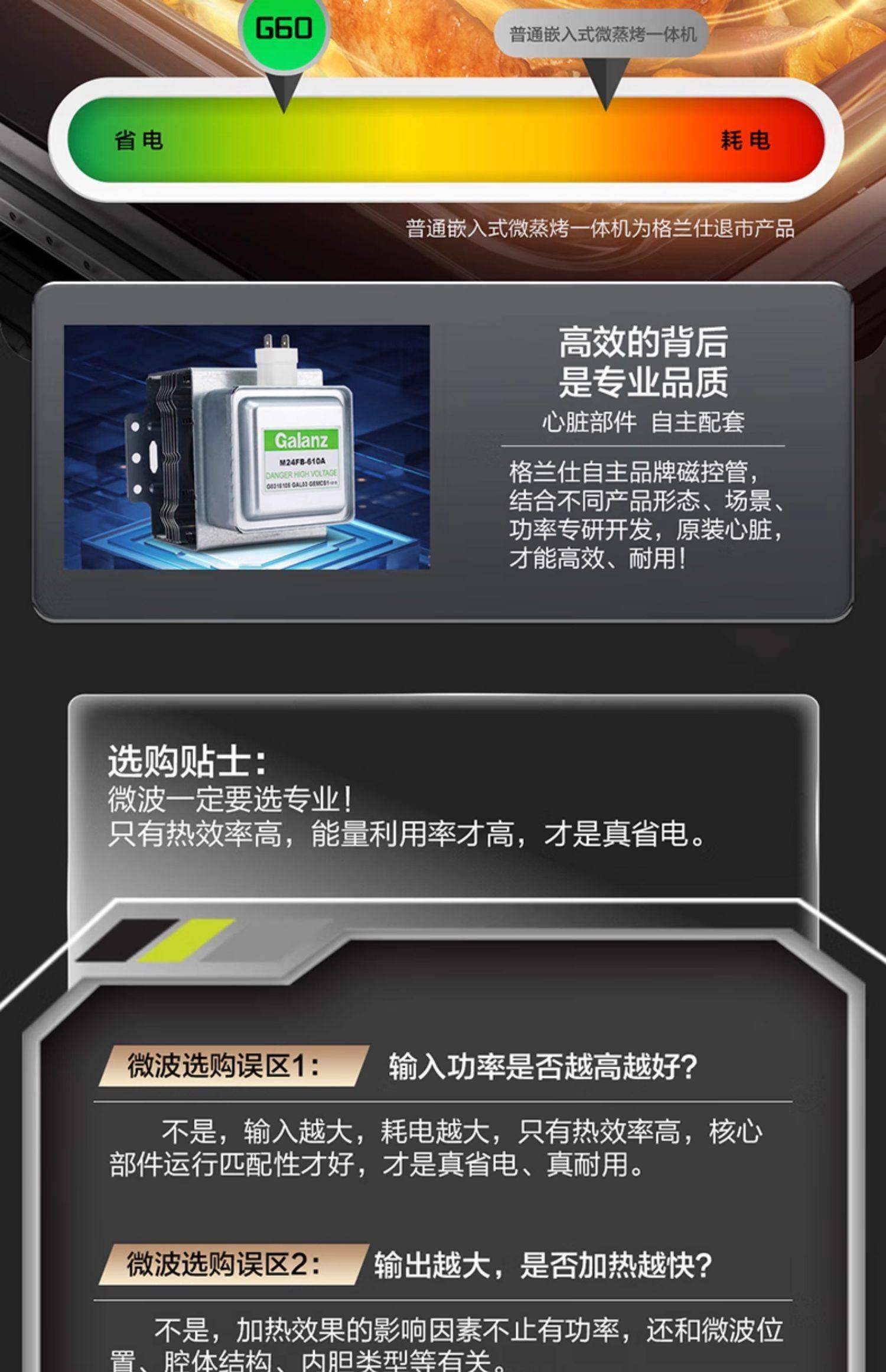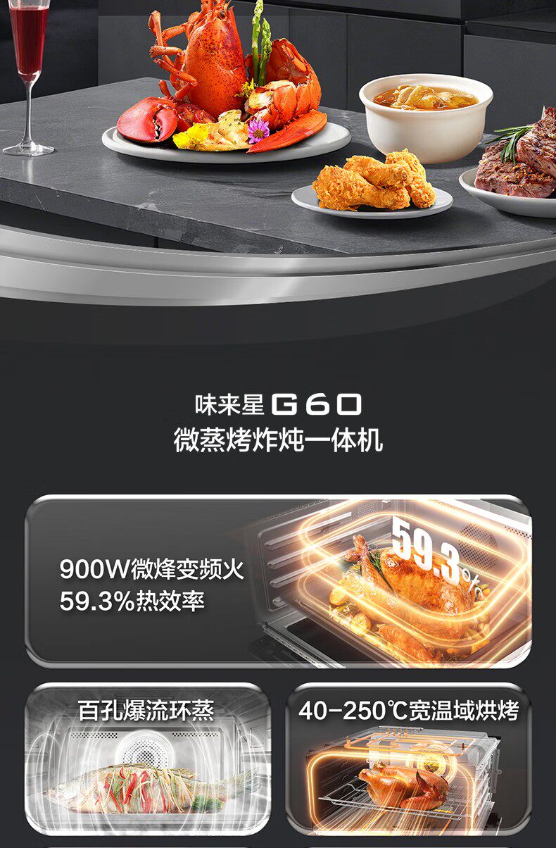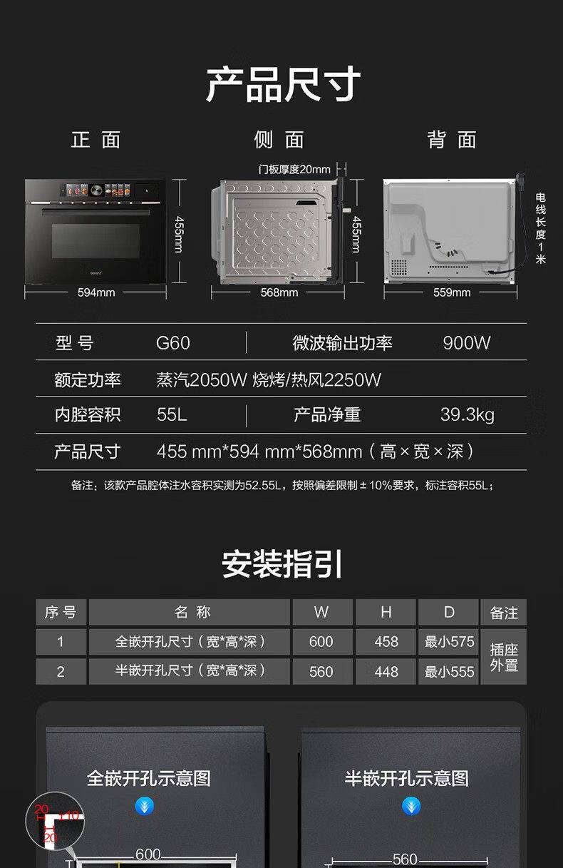 Galanz embedded micro steaming, roasting, fried and stewing five-in-one machine 55L large capacity multi-function color screen knob control