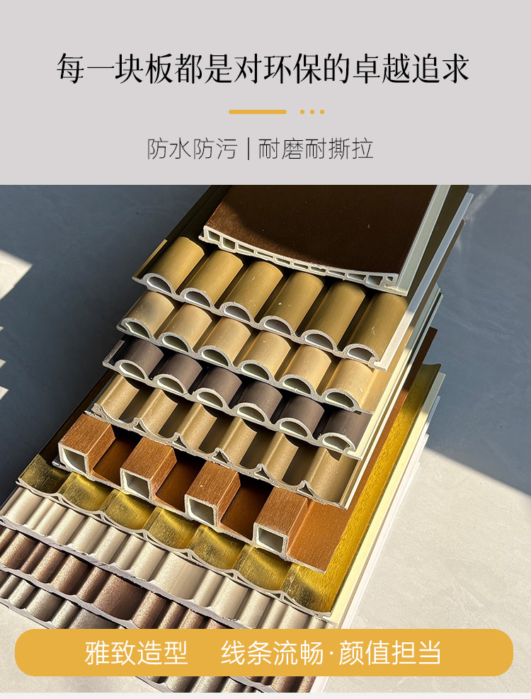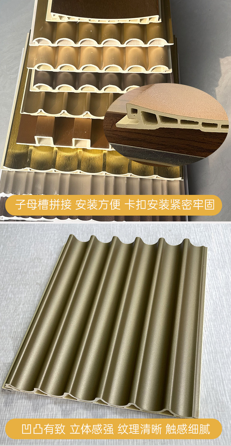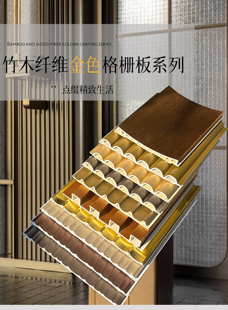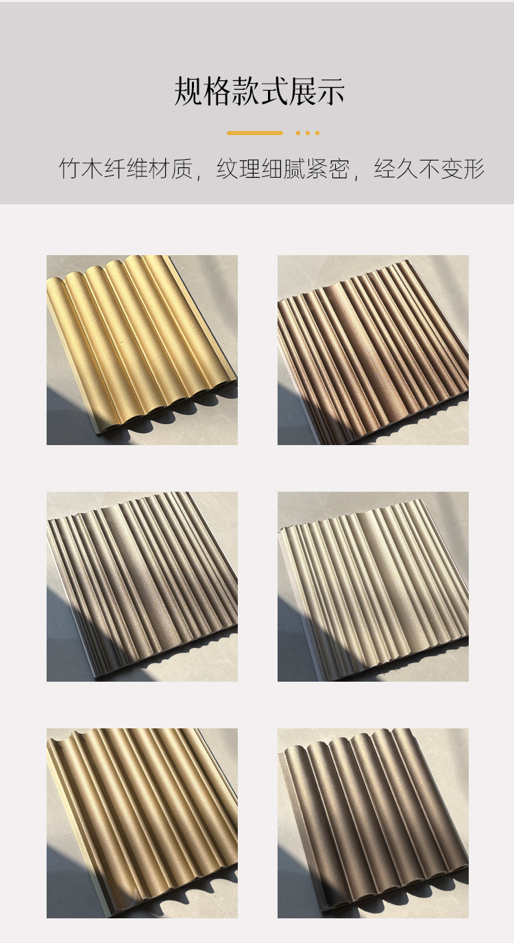 Golden Eco-Friendly Wood Grille Great Wall Panel Bamboo Wood Fiber Semi-Circular Arc Metallic Color Concave-Convex Background Decorative Wall Wave Pattern
