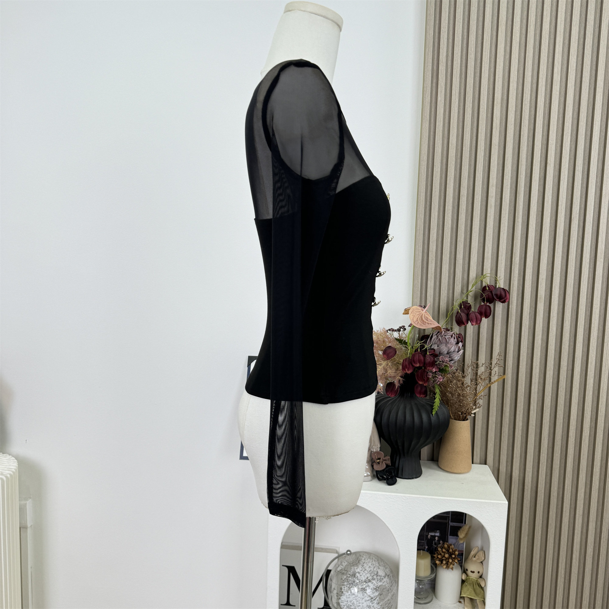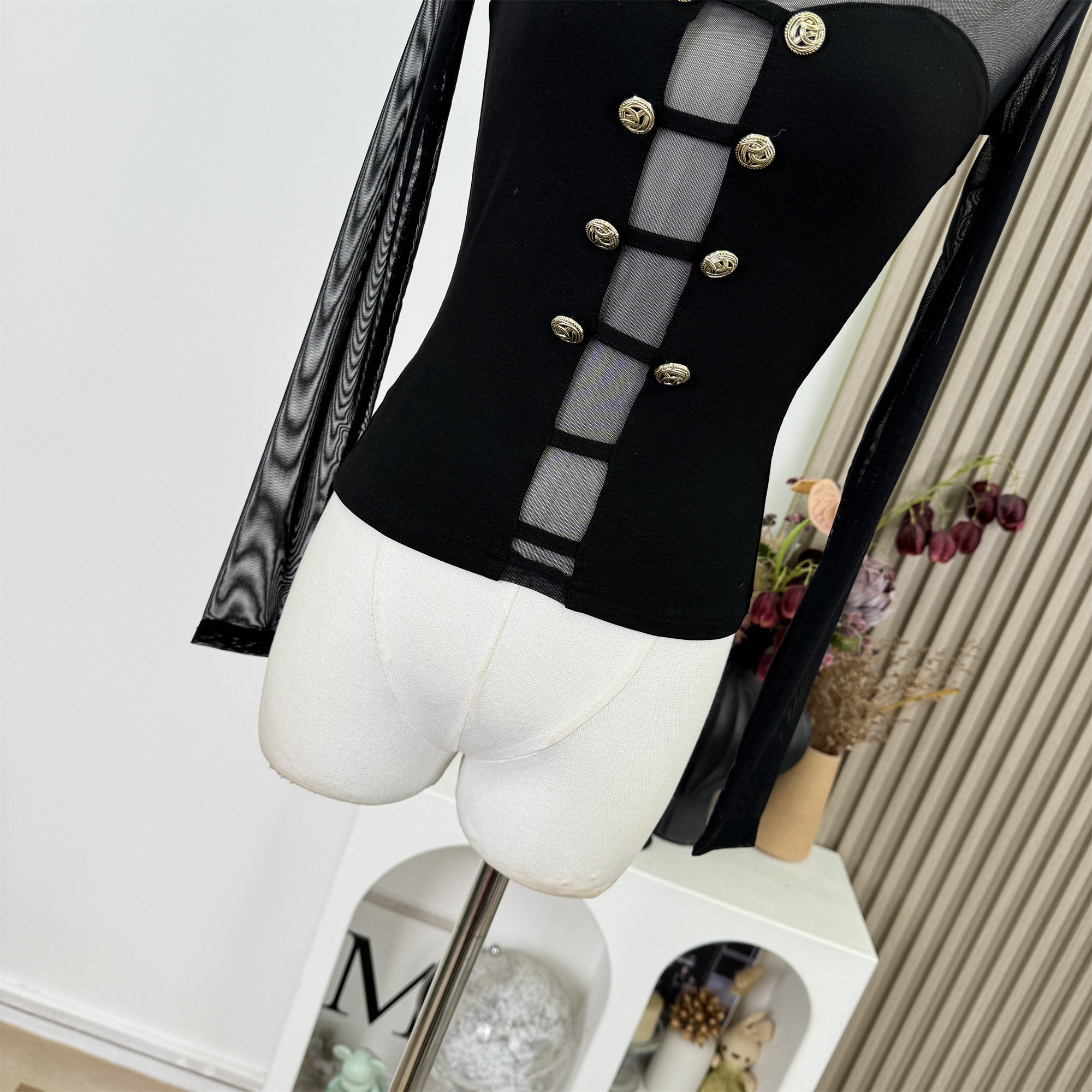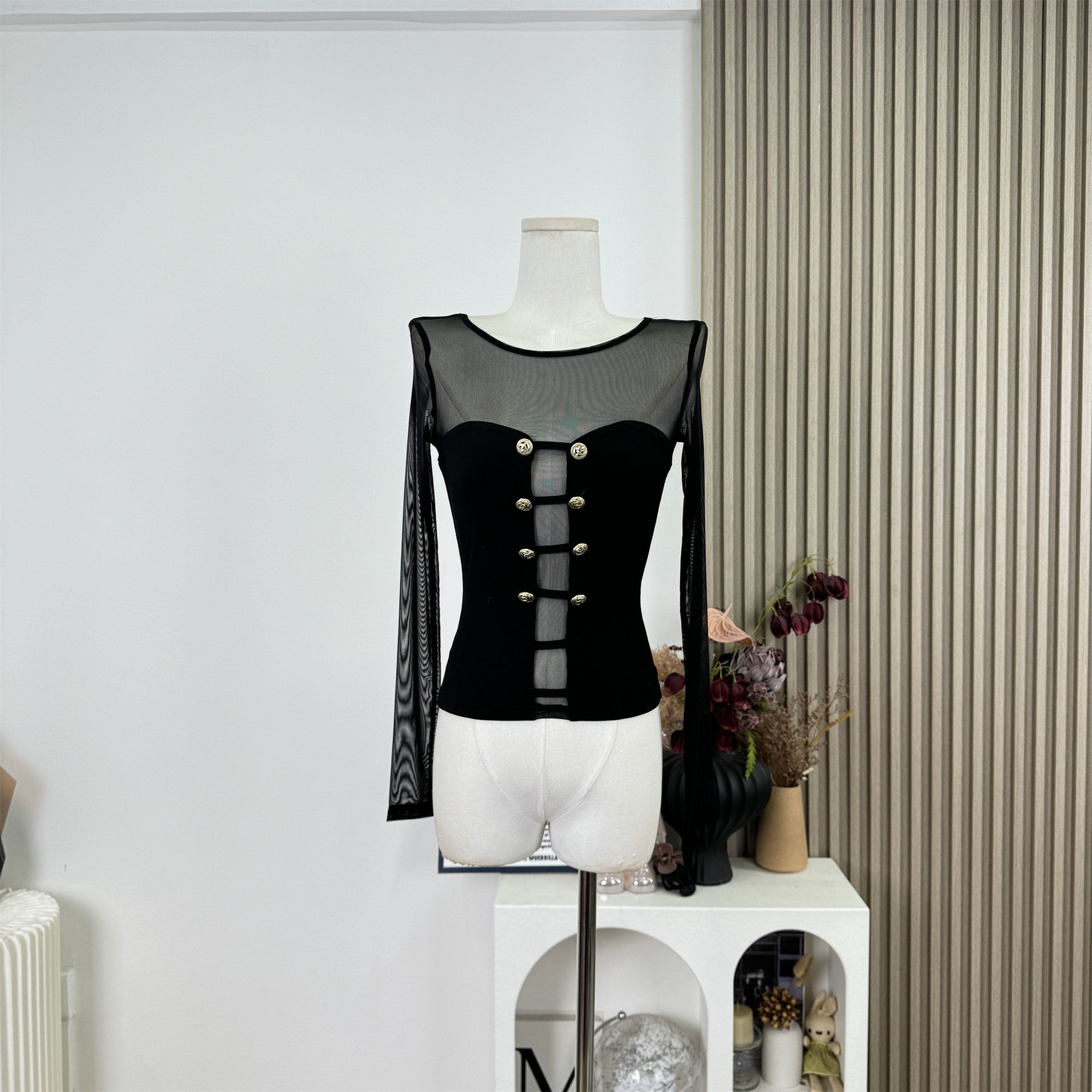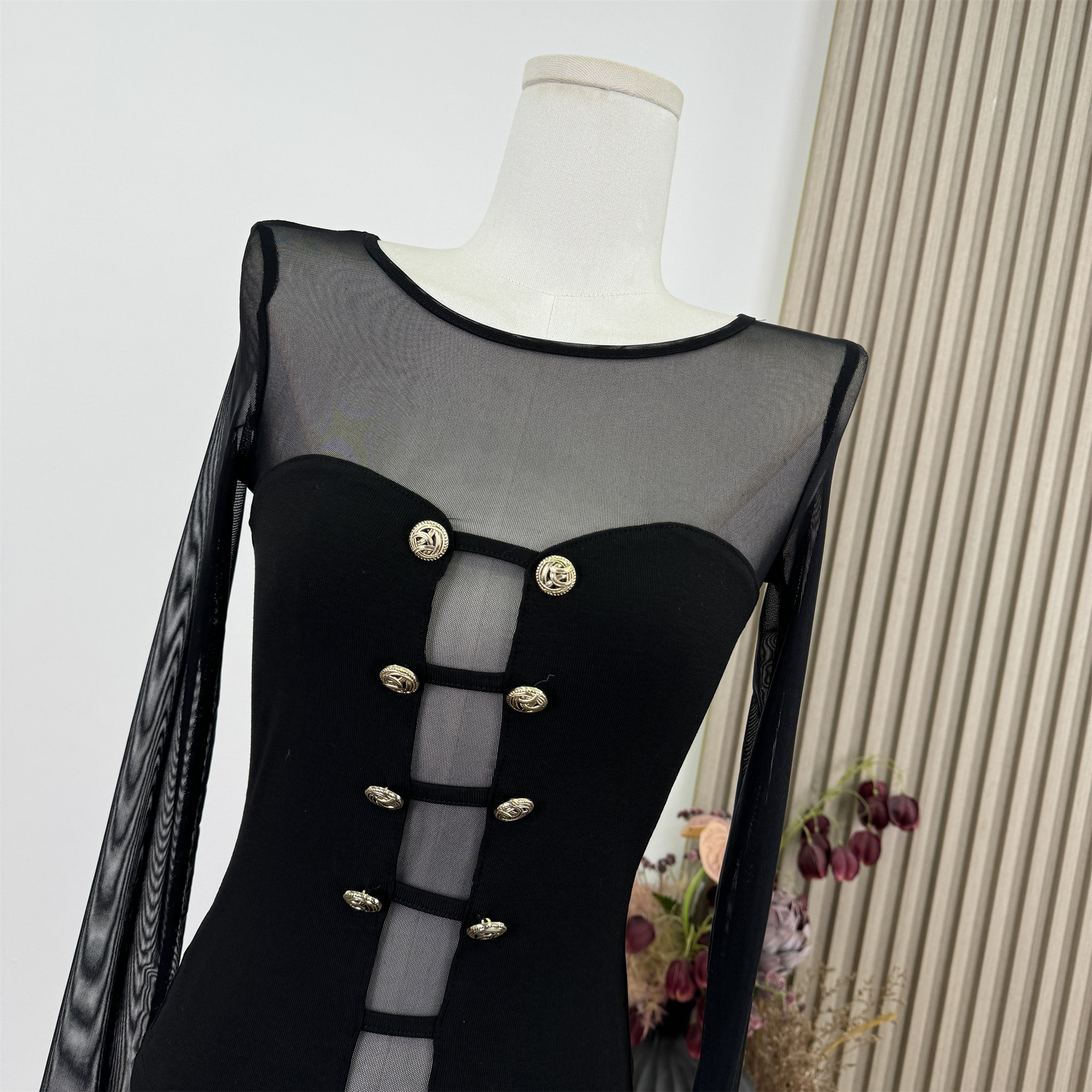 Popw New Design Sheer Mesh Patchwork Slim Fit Pure Desire Knitted Sweater Top