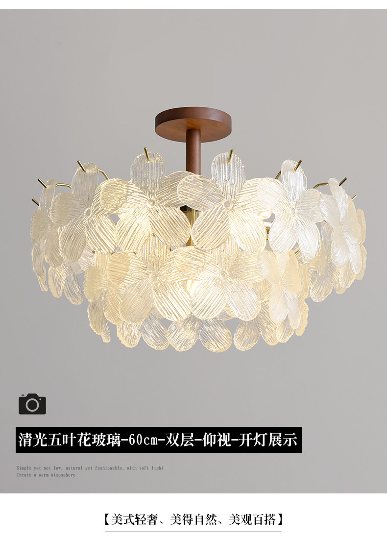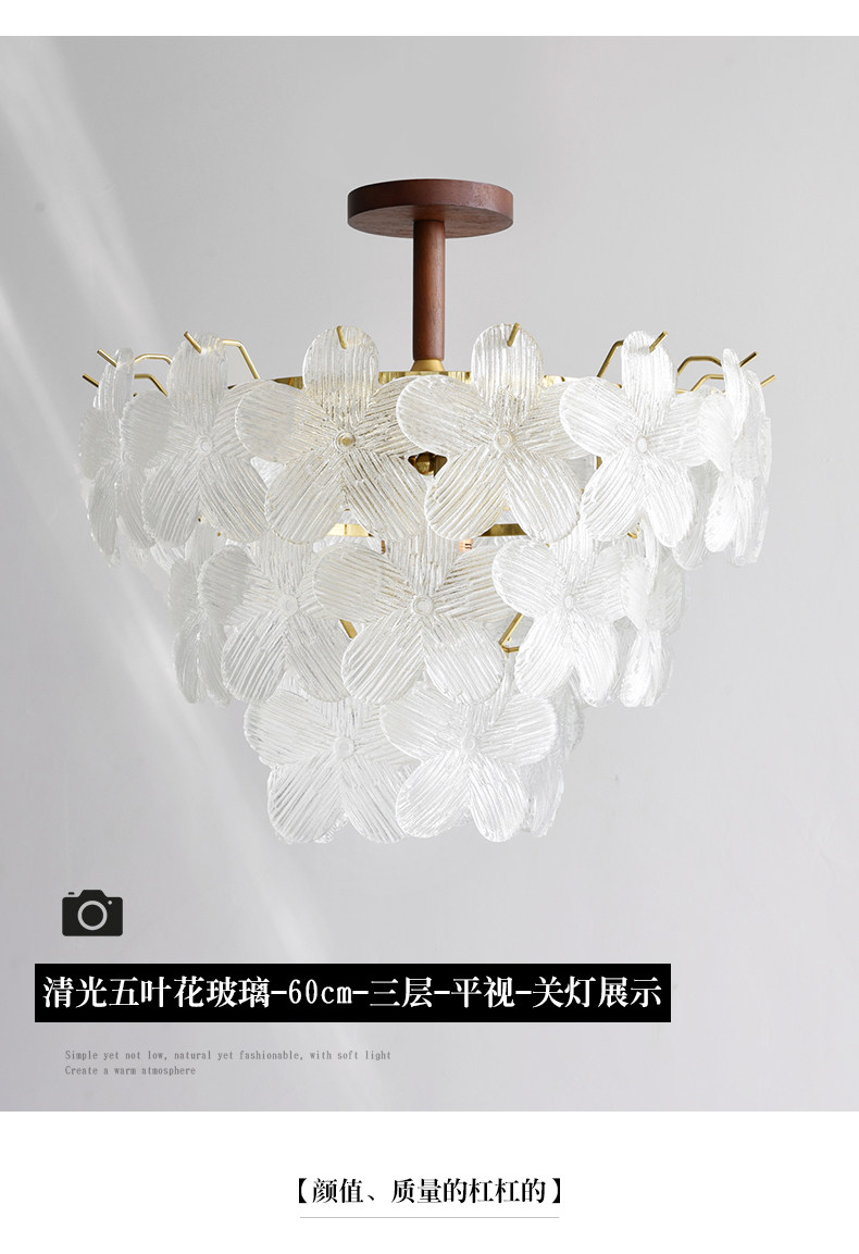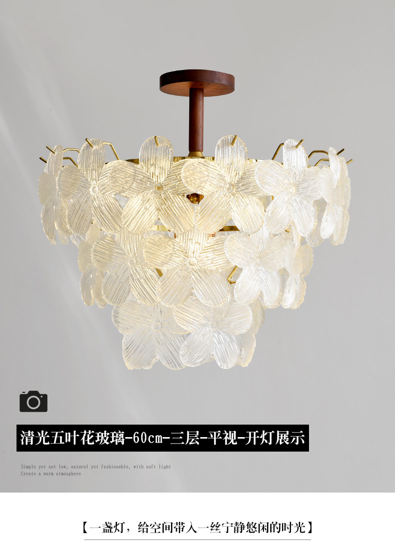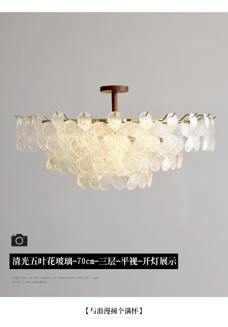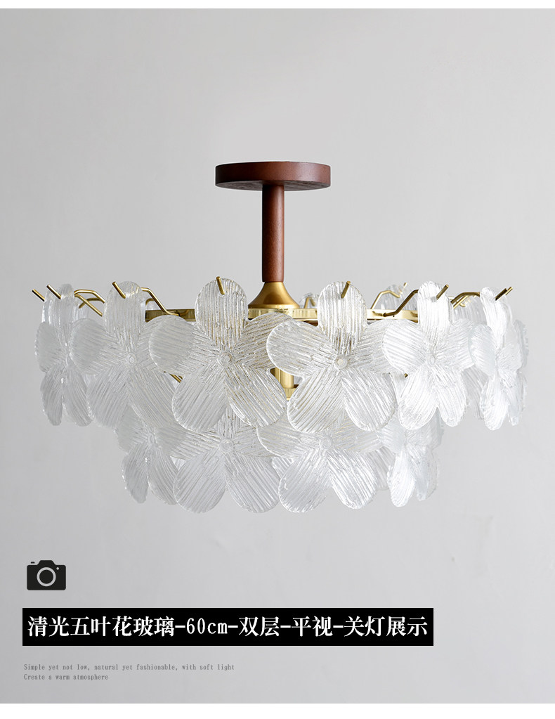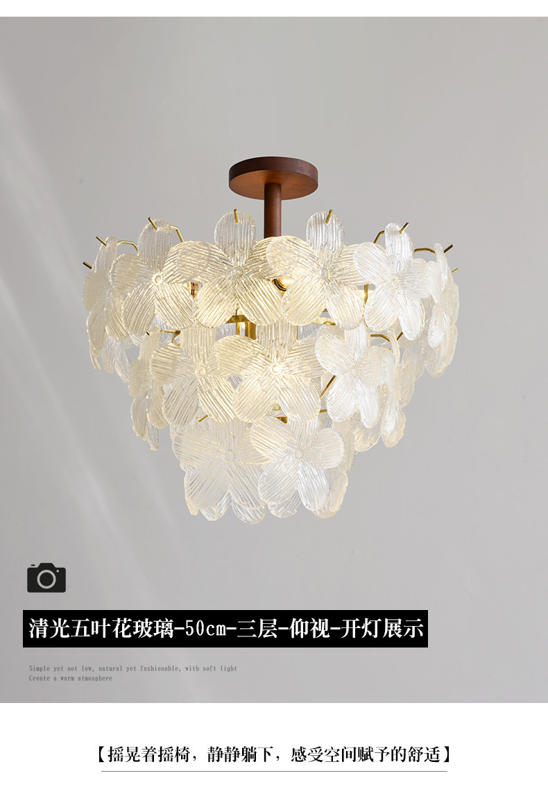 French-Style Vintage Chandelier, Retro Five-Leaf Flower Glass Living Room Lamp, Light Luxury and Warm Ambiance, 2026 New Model Bedroom Lighting