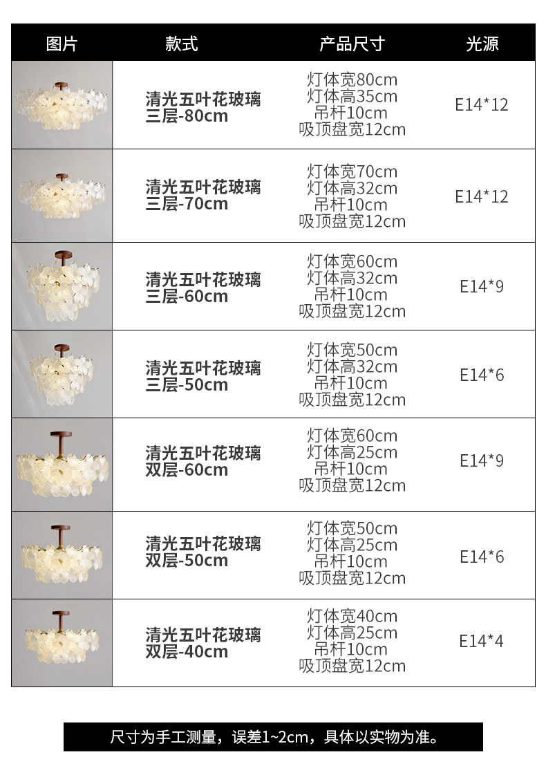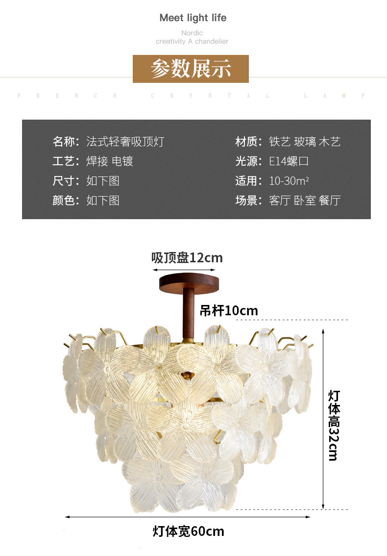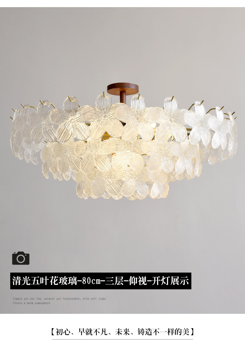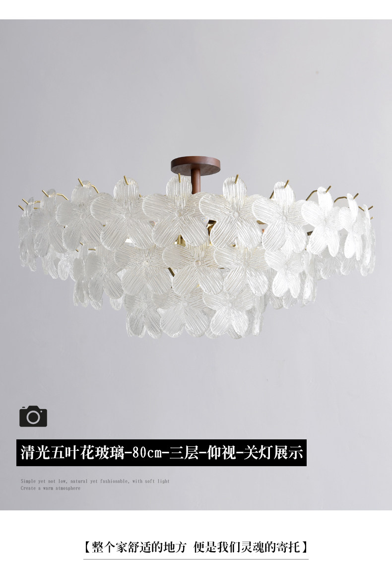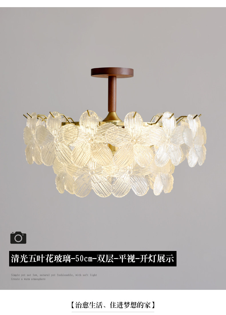 French-Style Vintage Chandelier, Retro Five-Leaf Flower Glass Living Room Lamp, Light Luxury and Warm Ambiance, 2026 New Model Bedroom Lighting