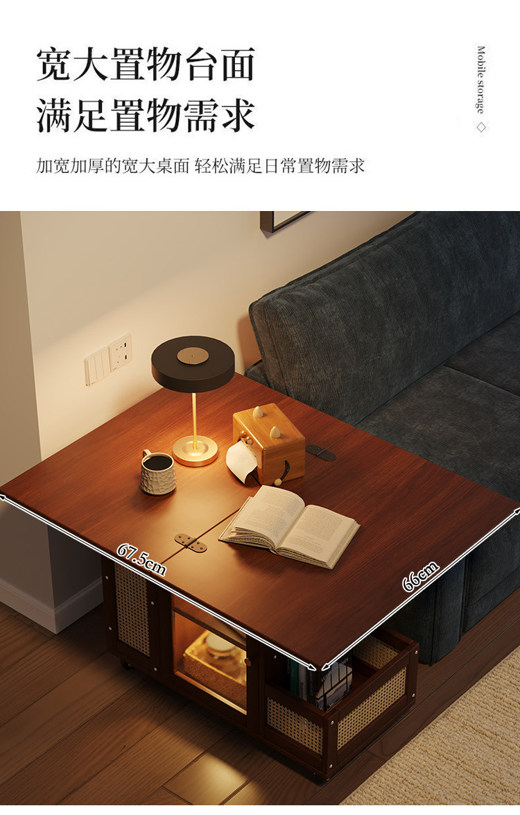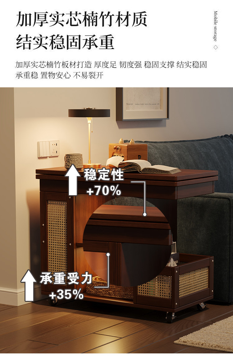 Lightly Elegant Style Bamboo Folding Table, Living Room Sofa Side Table with Storage Compartment, Multifunctional Small Coffee Table, Movable Sofa Table