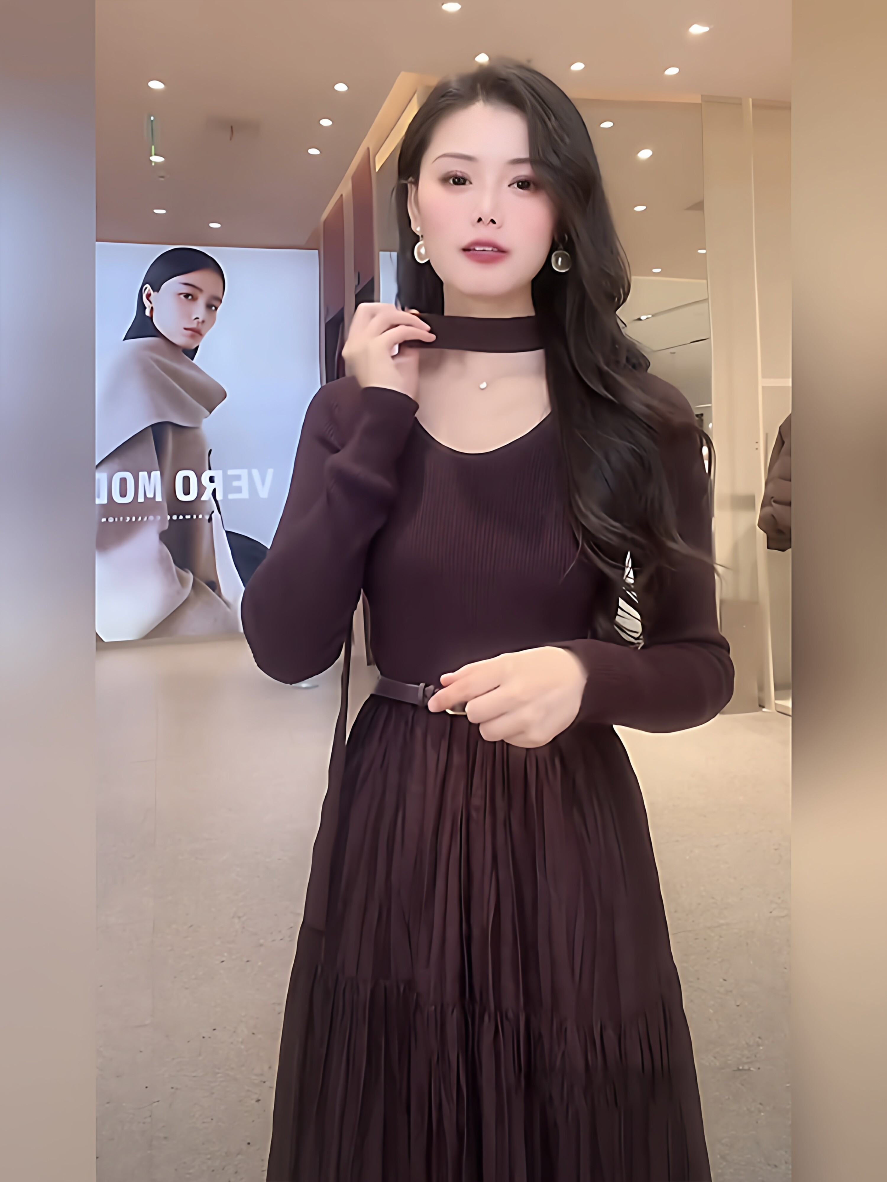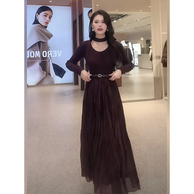 Mijie 2025 new winter style light luxury style long-sleeved dress women's waist slimming elegant high-end long dress for ladies