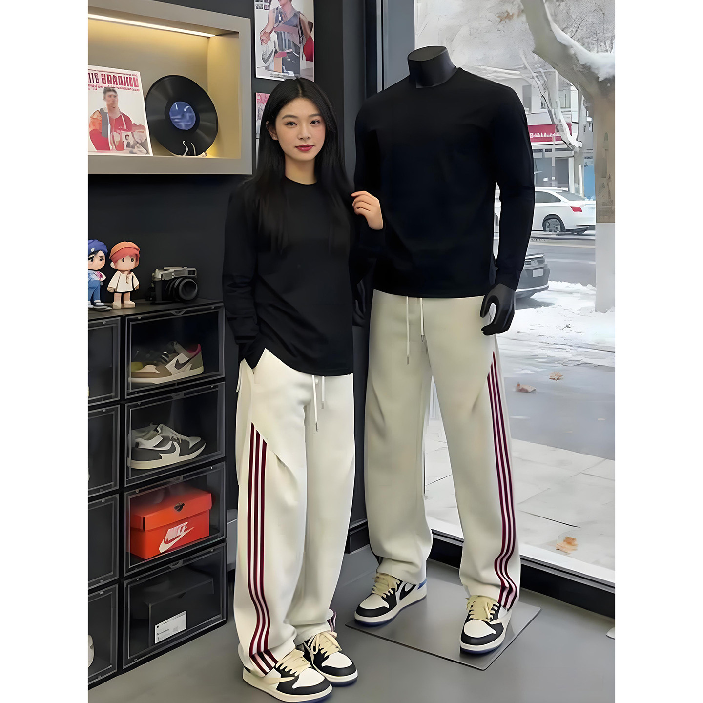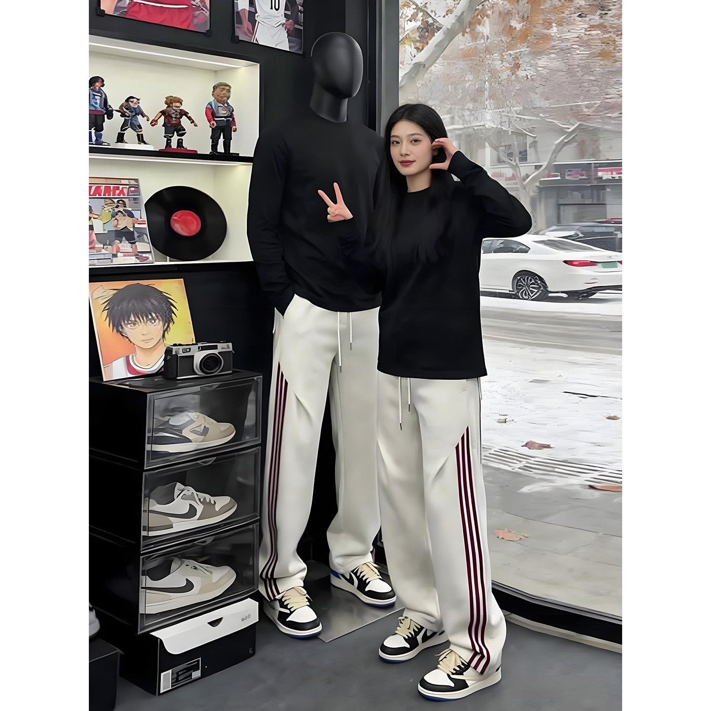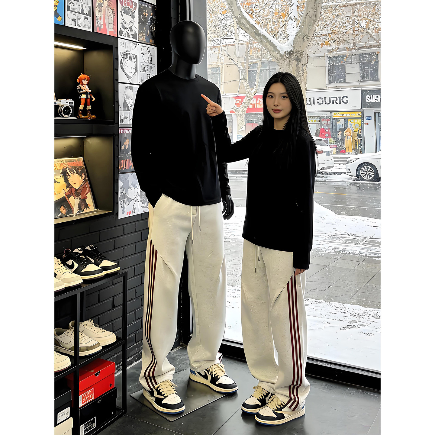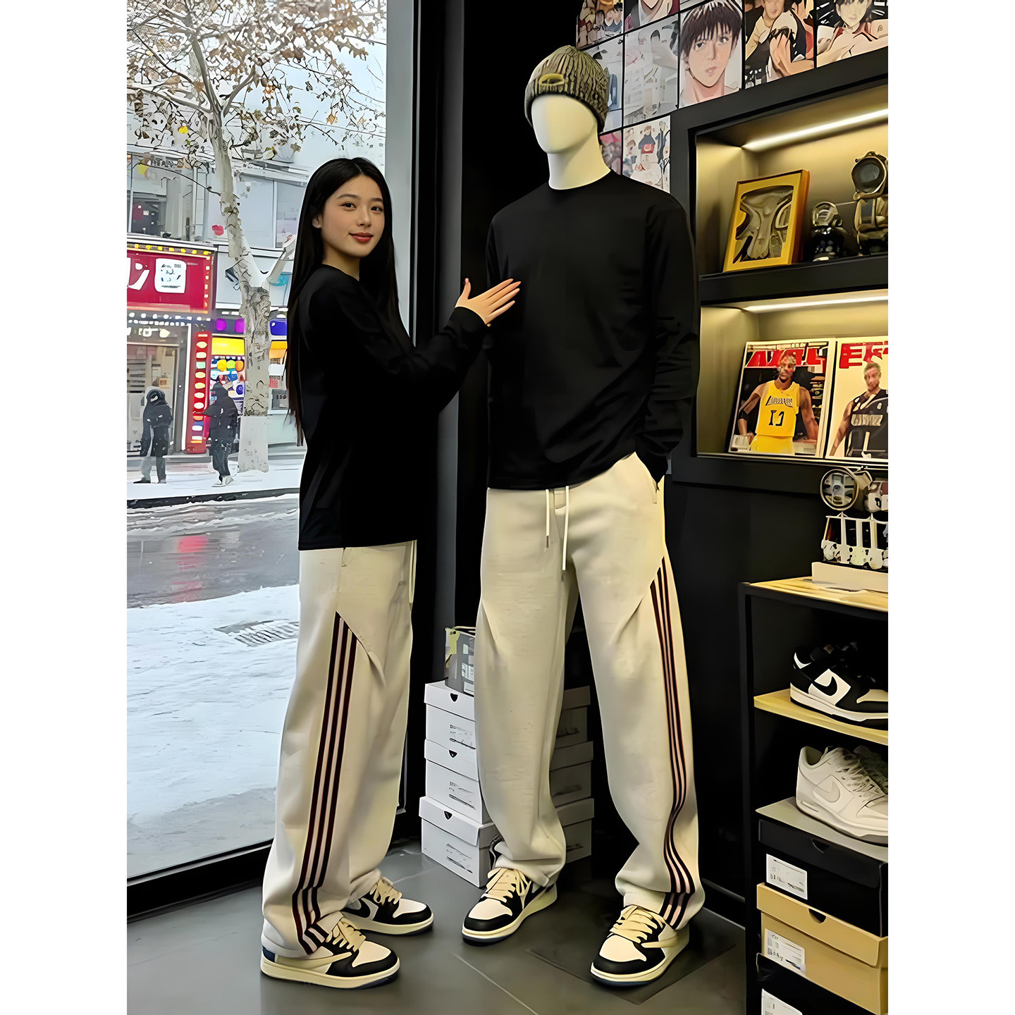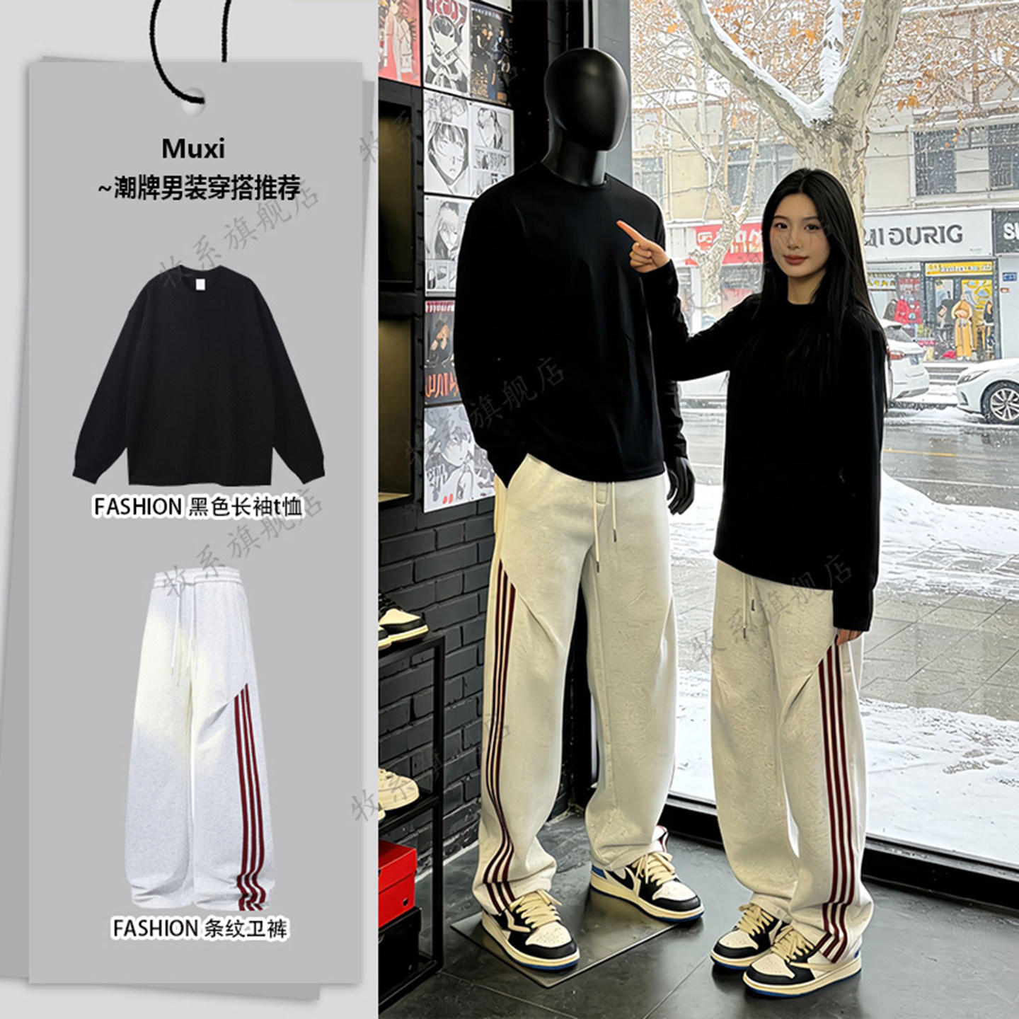 Floral gray sports bootcut two-piece set, high-end pure cotton long-sleeved T-shirt, men's autumn and winter wear set