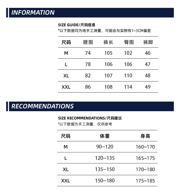 China (cm) 165 / 88-90 170 / 96-98 175 / 108-110 180 / 118-122 185 / 126-130