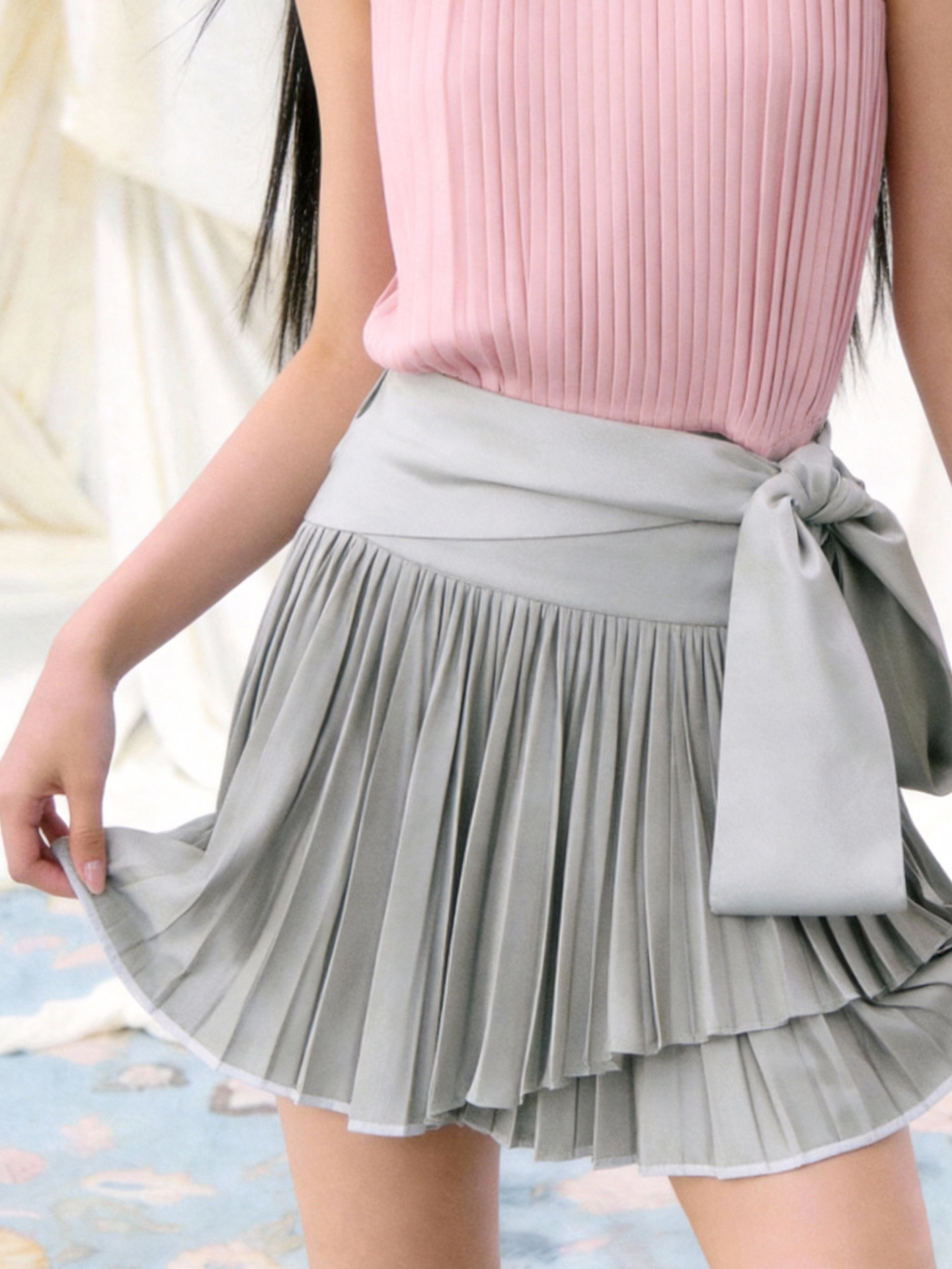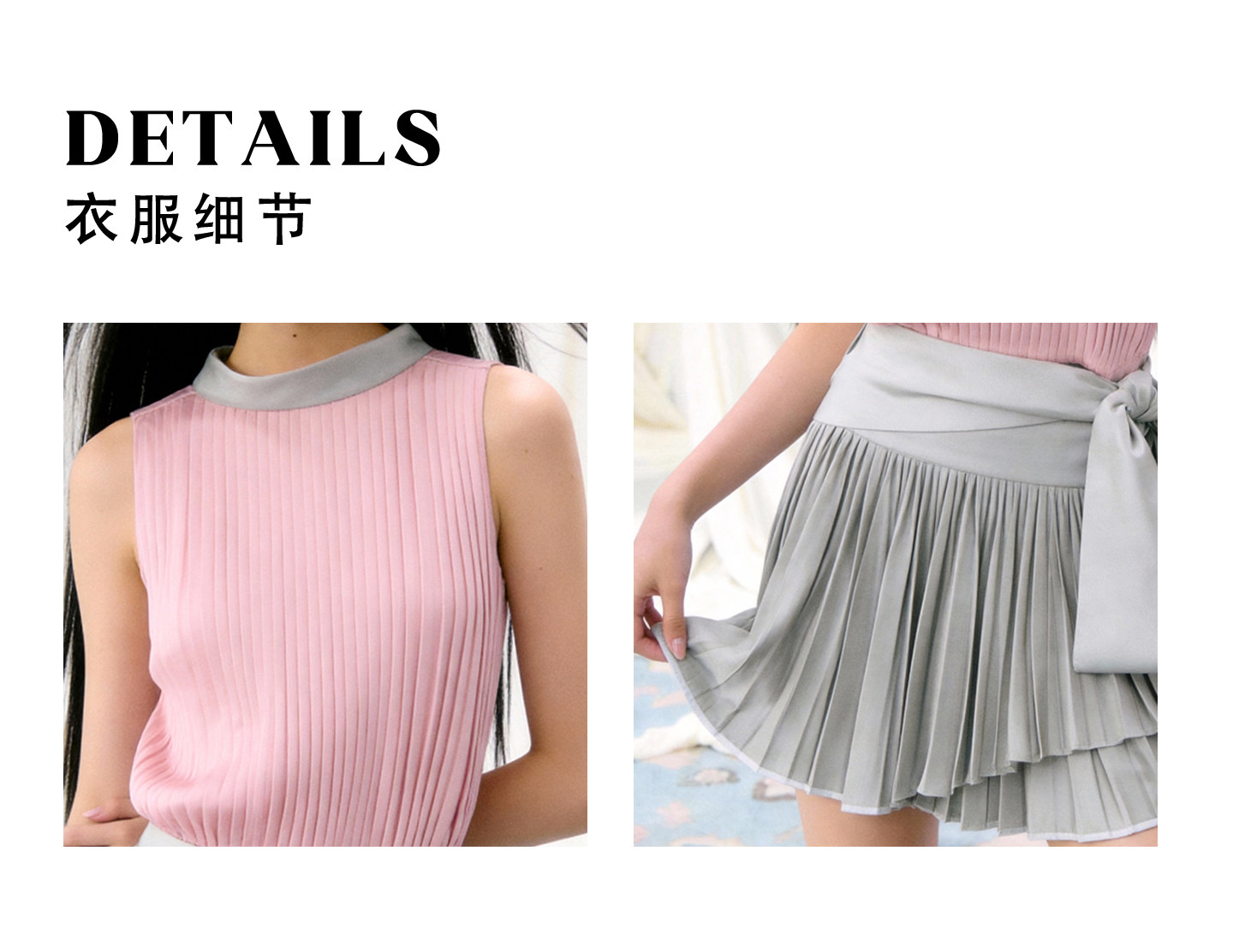 Celebrity-Inspired Pure White Moonlight Outfit Set with Stand Collar, Ribbon, Sleeveless, Gentle Style, Super Trendy 2026 Complete Set
