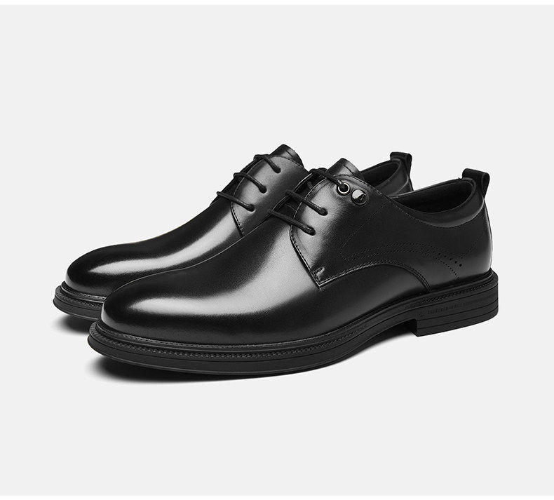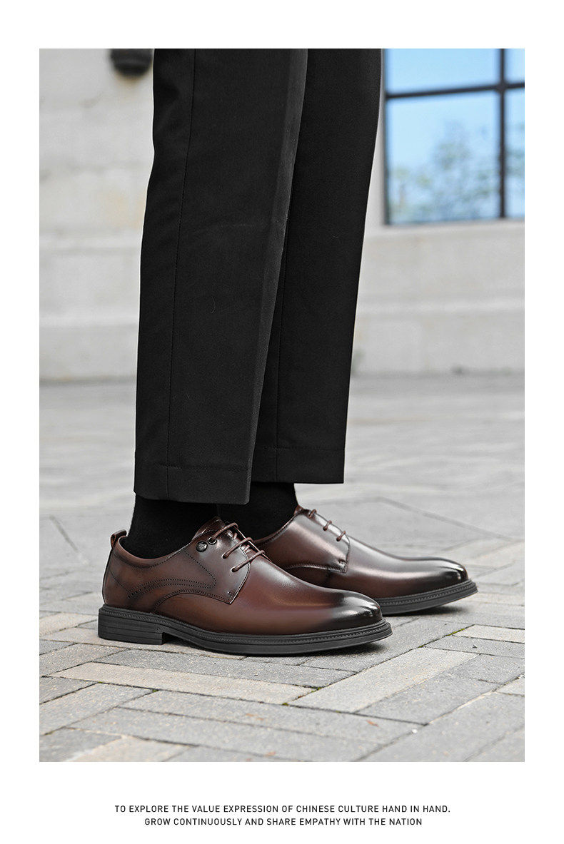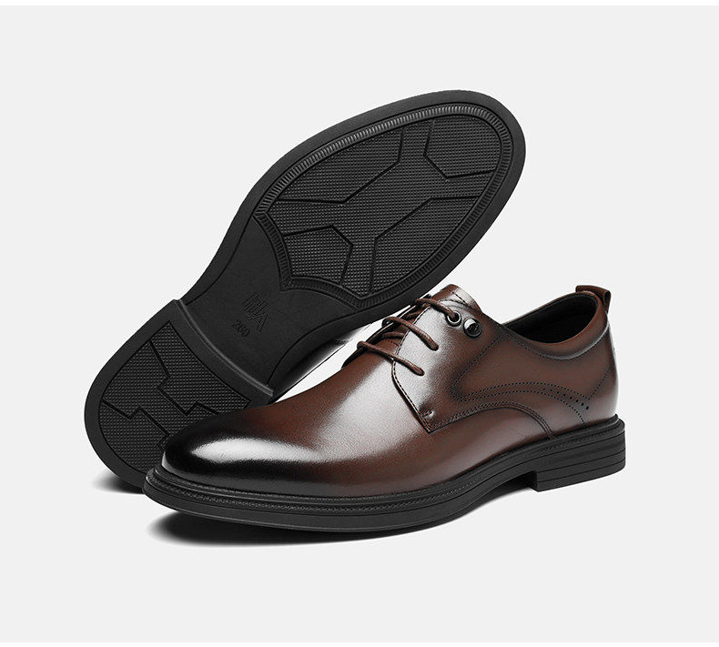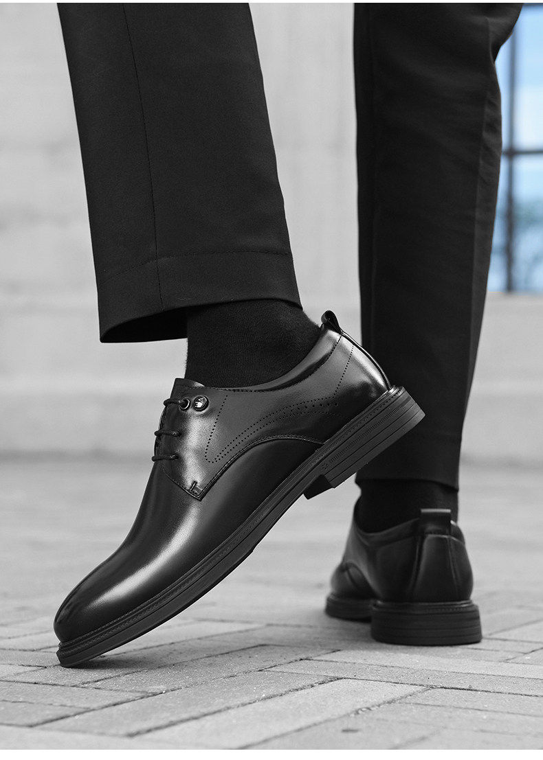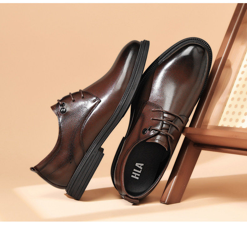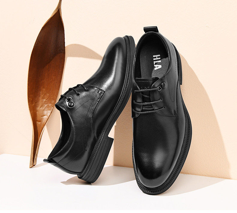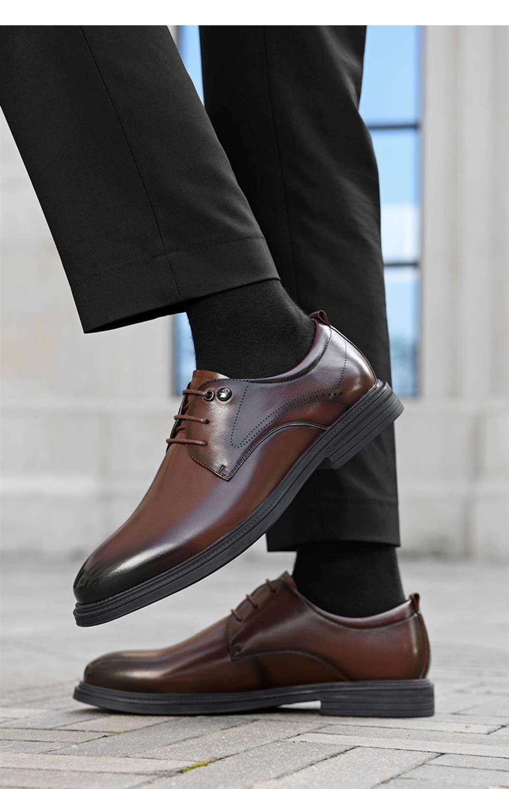 Hailan Home Men's Genuine Leather Versatile Derby Shoes, Men's Business Casual Leather Shoes with Hidden Height Increase, Groom's Wedding Shoes