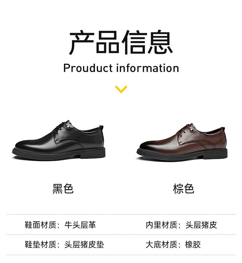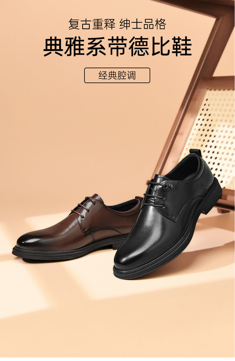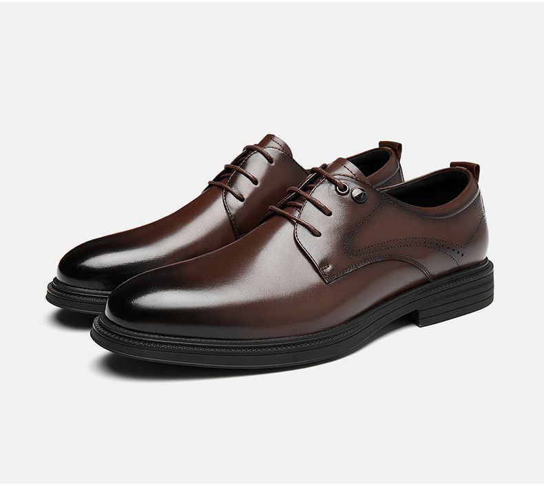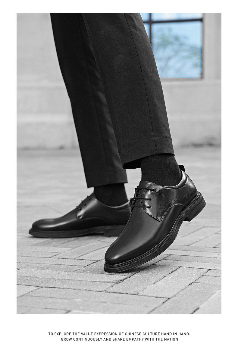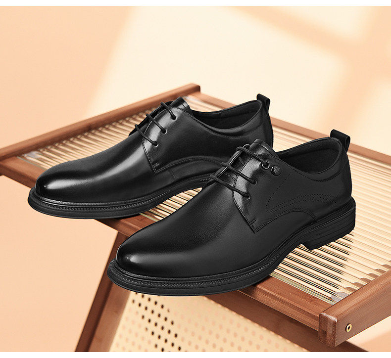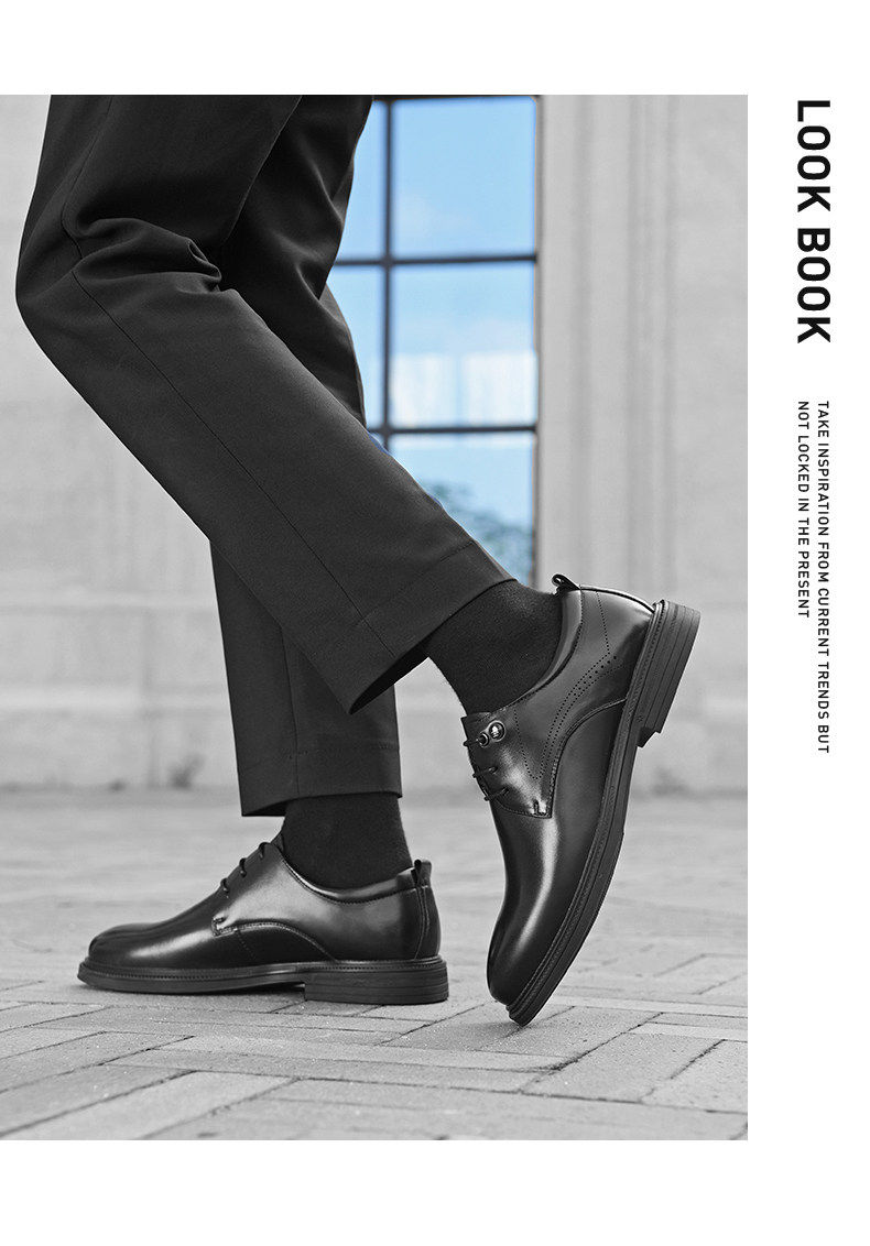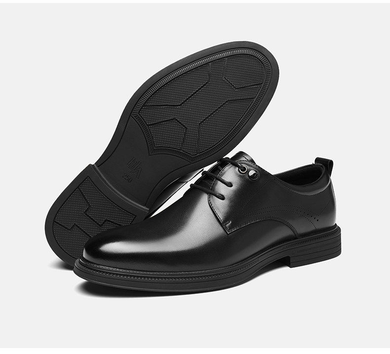 Hailan Home Men's Genuine Leather Versatile Derby Shoes, Men's Business Casual Leather Shoes with Hidden Height Increase, Groom's Wedding Shoes