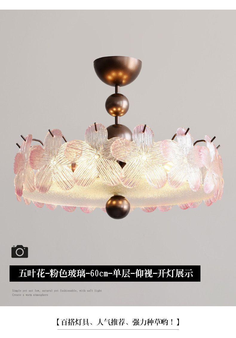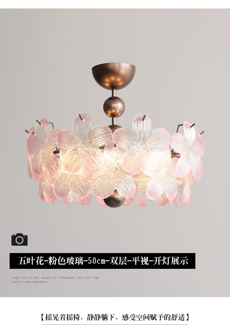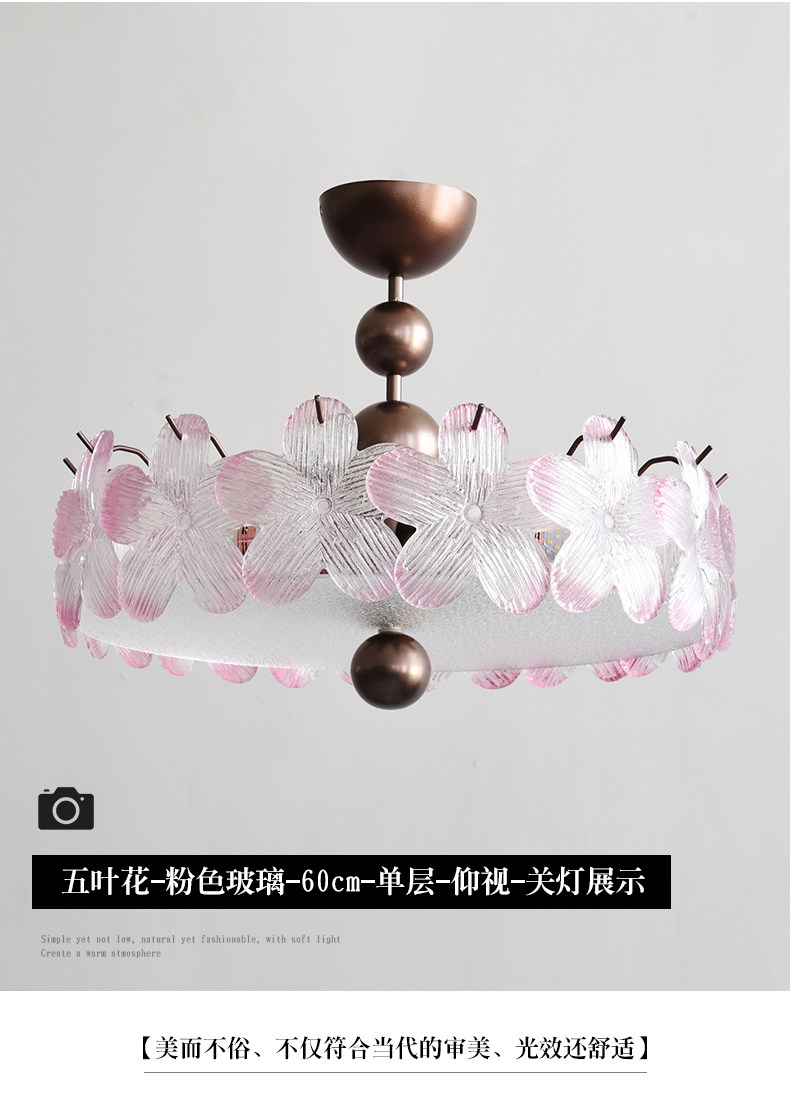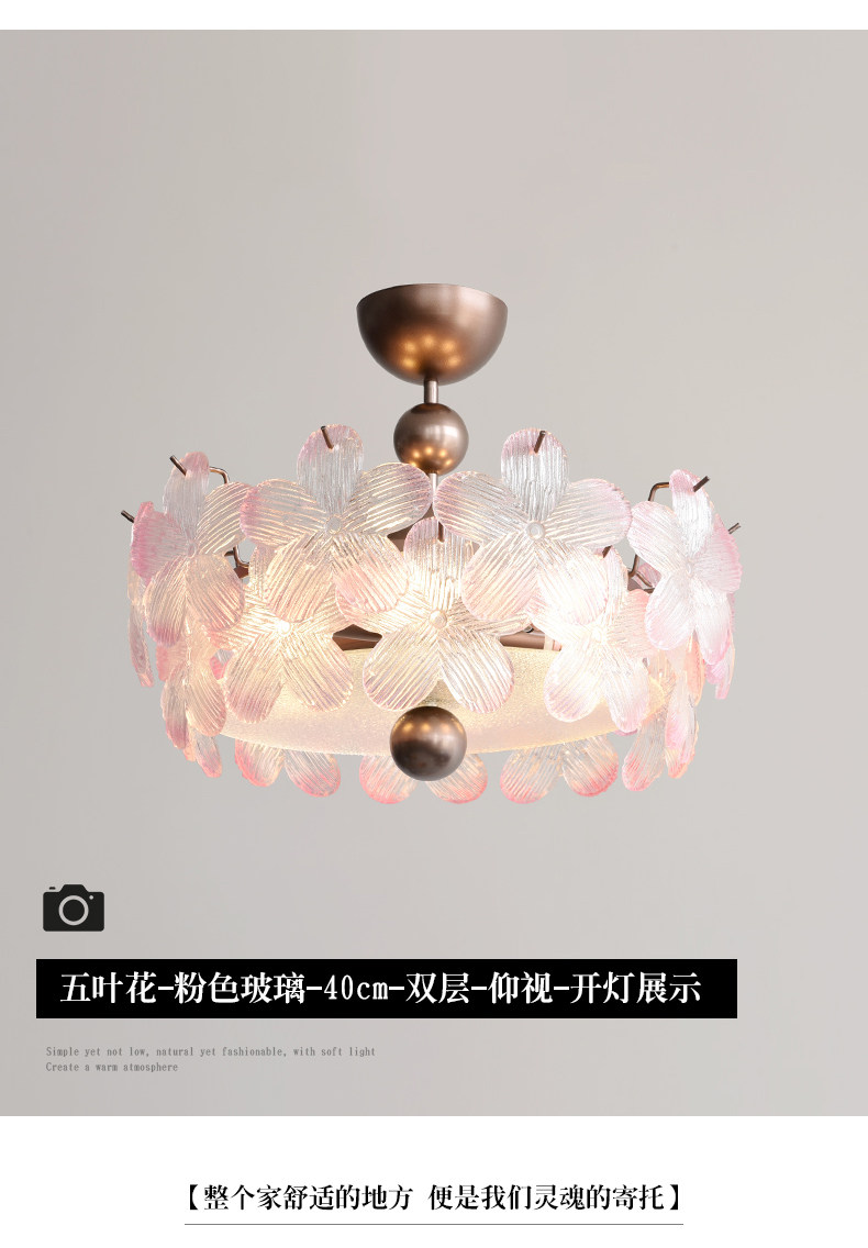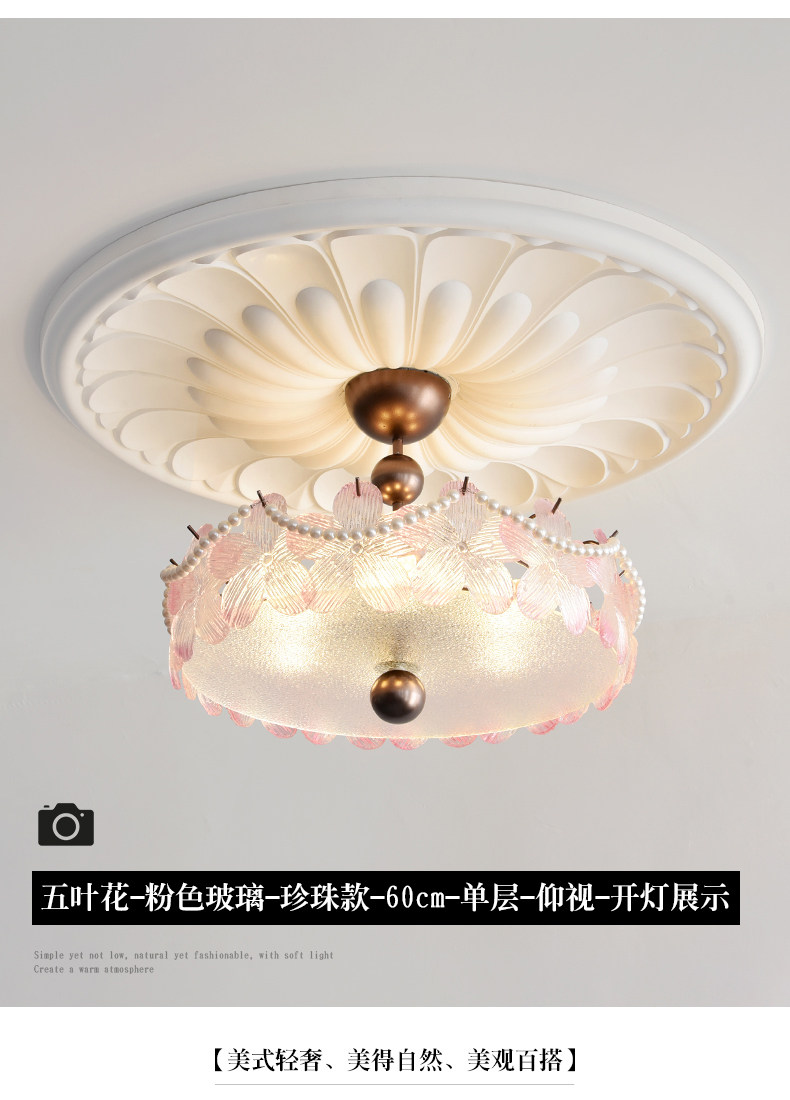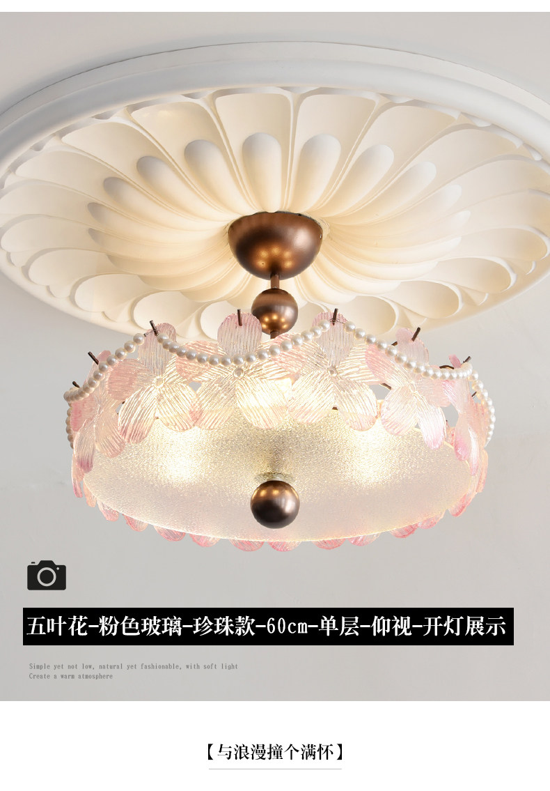French-Style Vintage Ceiling Lamp Bedroom Light Retro Romantic Pink Glass Flower Main Bedroom Warm Cream-Style Lighting Fixtures