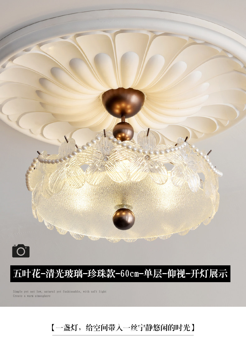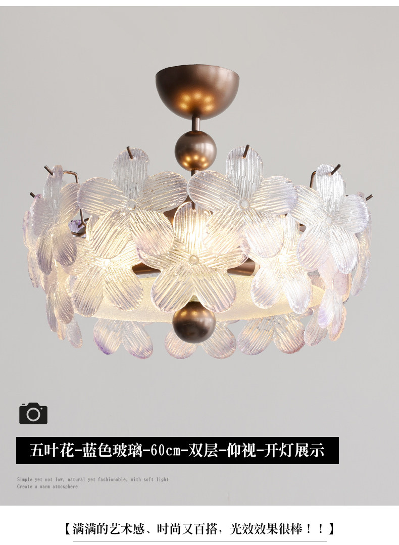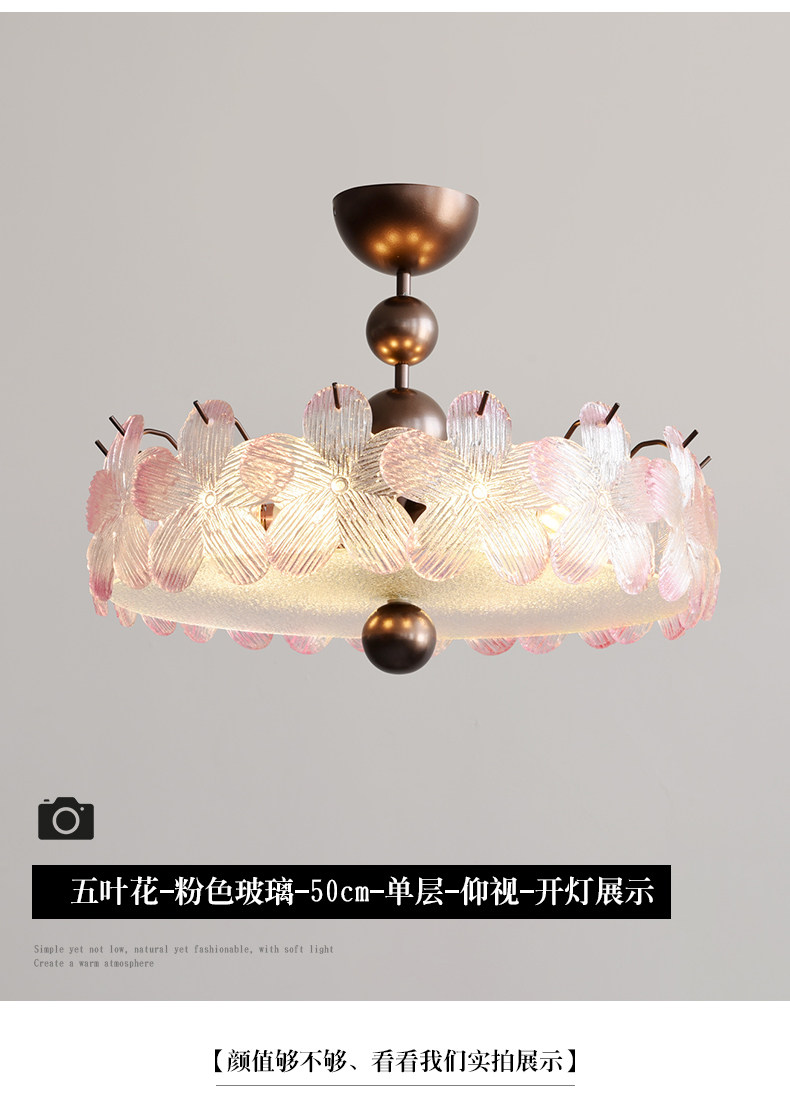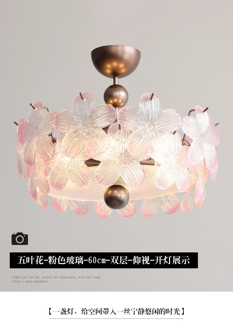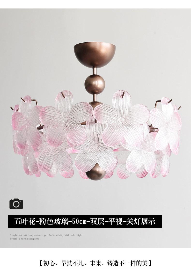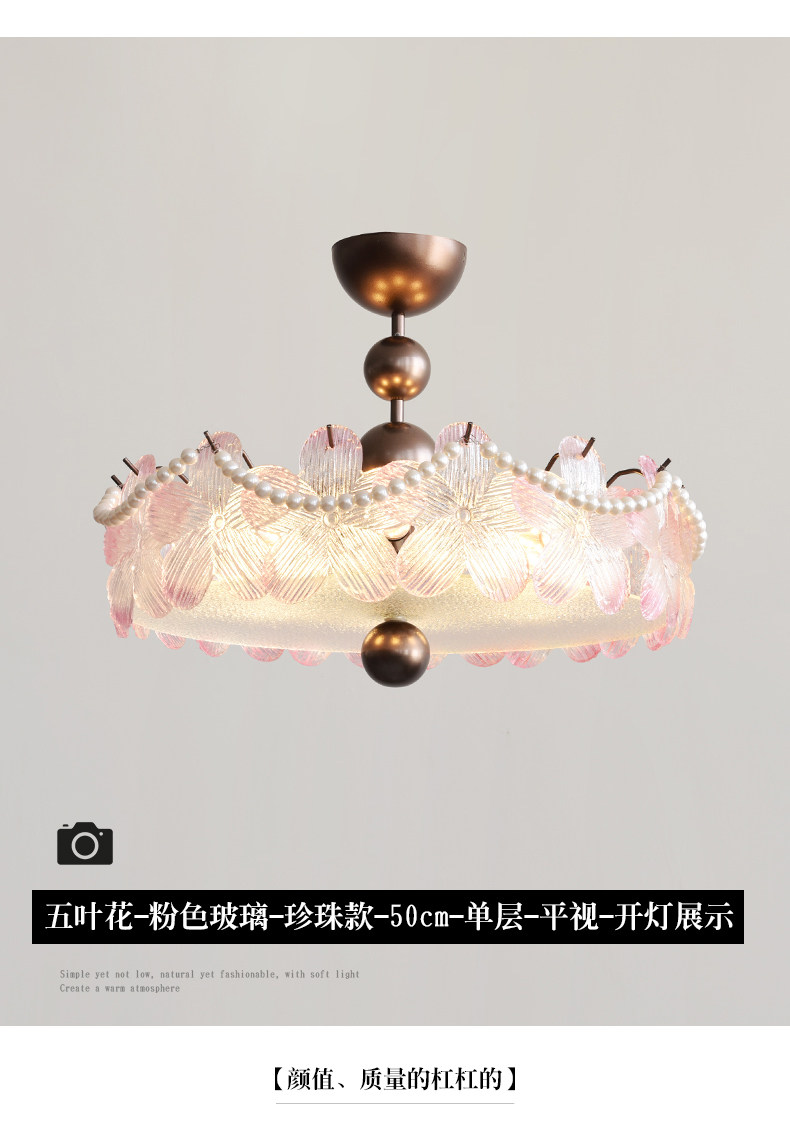 French-Style Vintage Ceiling Lamp Bedroom Light Retro Romantic Pink Glass Flower Main Bedroom Warm Cream-Style Lighting Fixtures