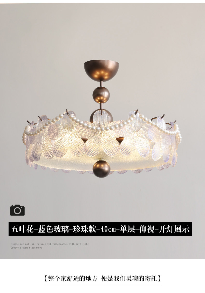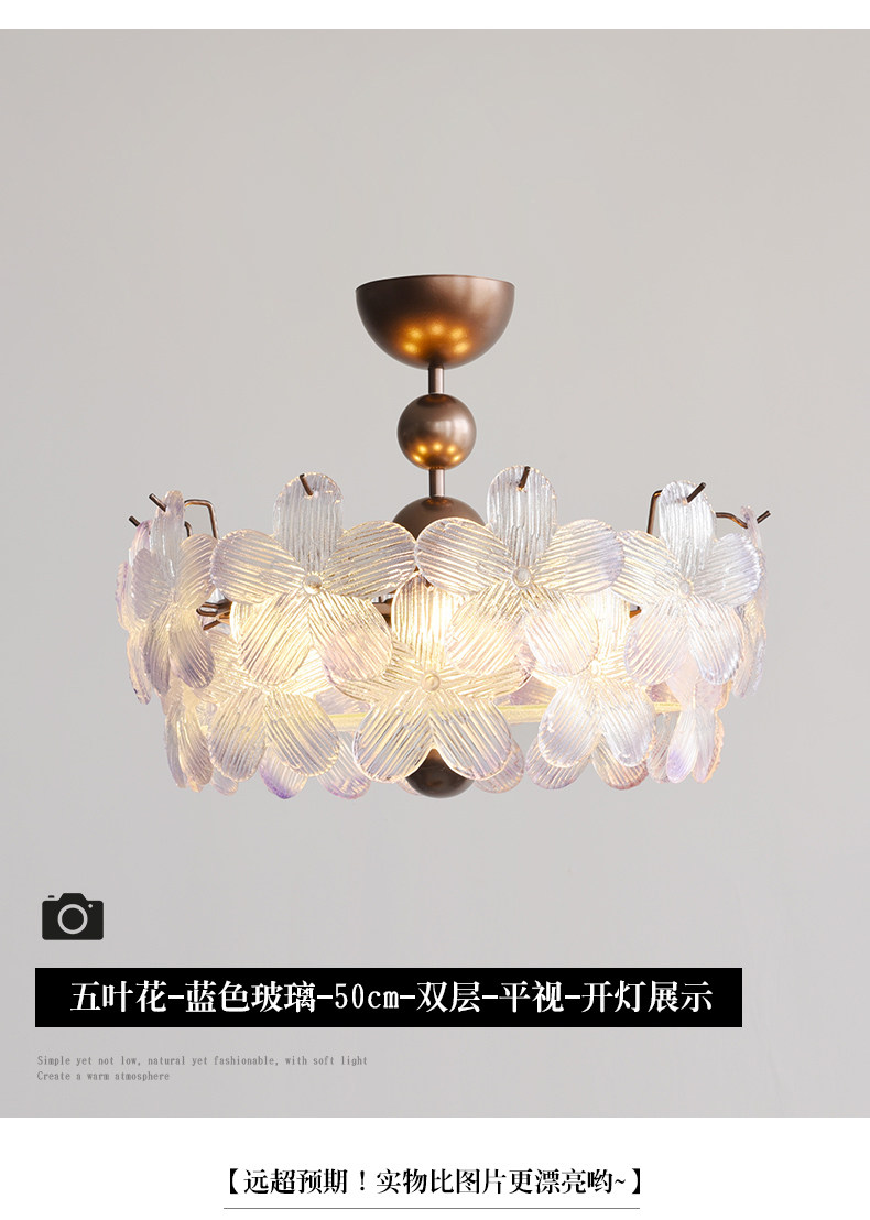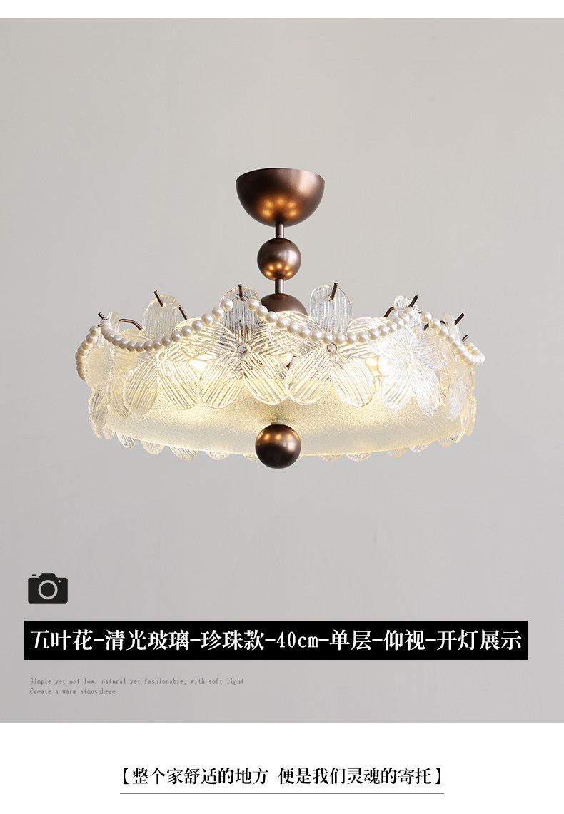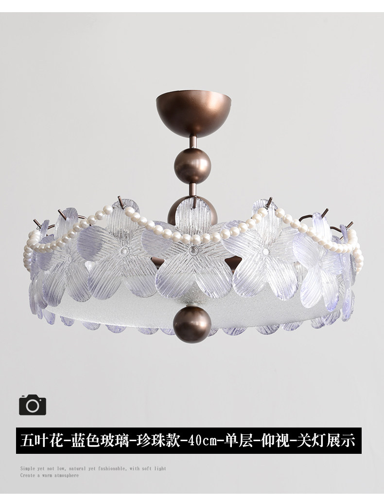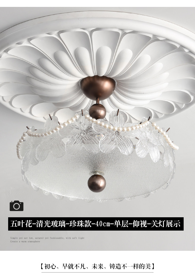 French-Style Vintage Ceiling Lamp Bedroom Light Retro Romantic Pink Glass Flower Main Bedroom Warm Cream-Style Lighting Fixtures