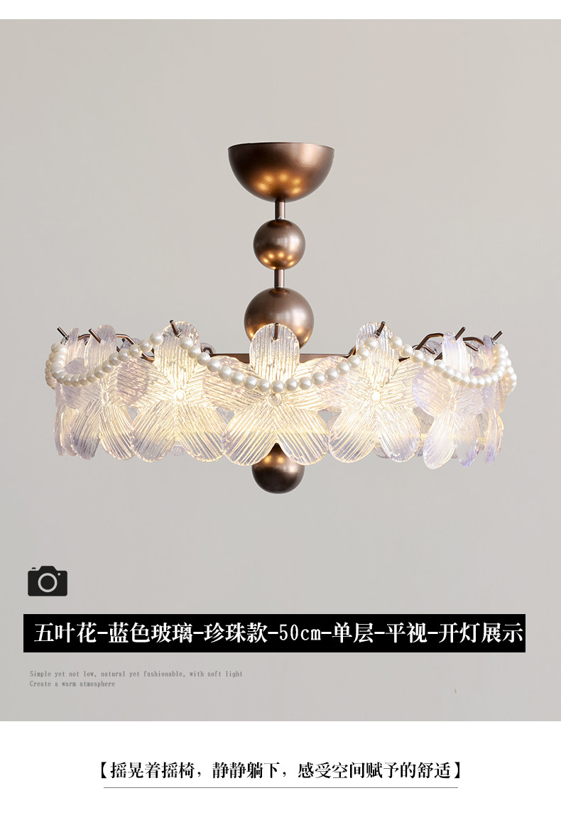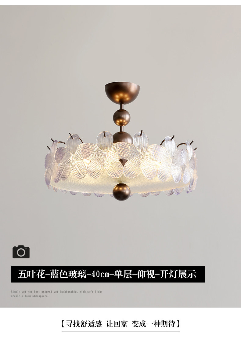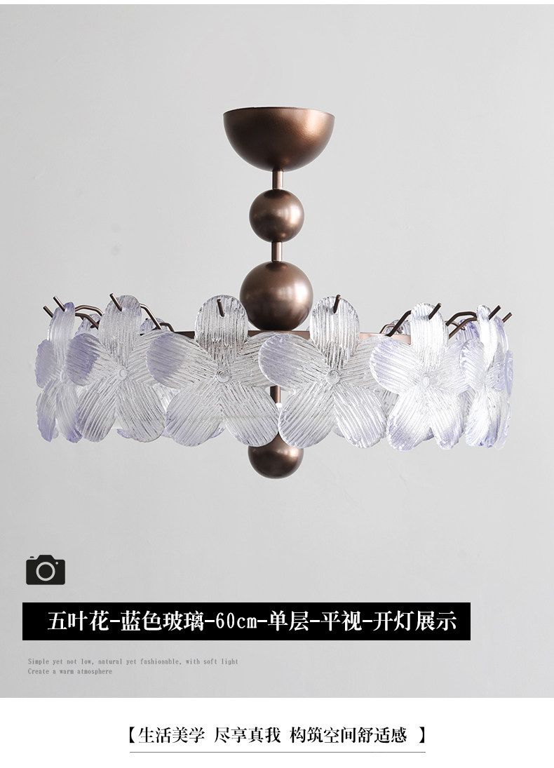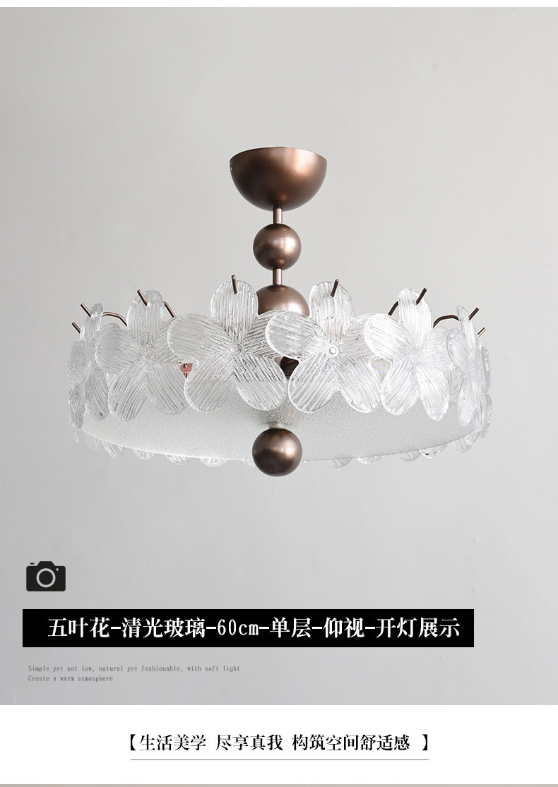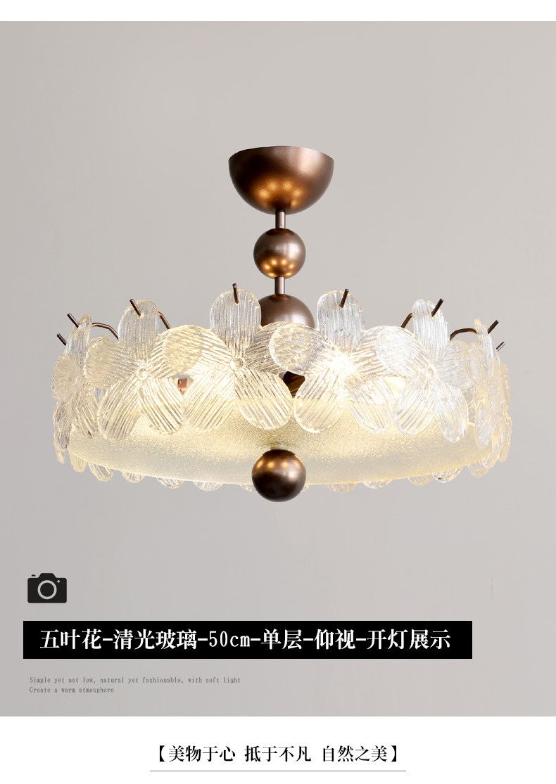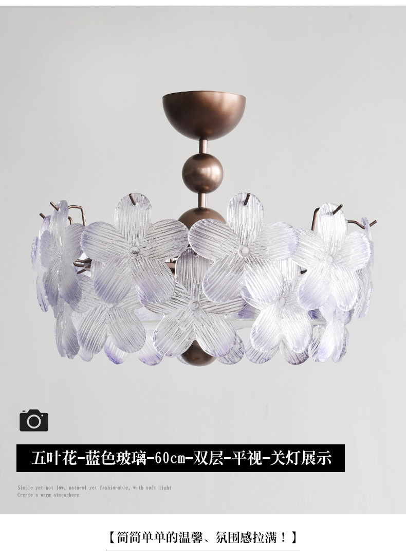 French-Style Vintage Ceiling Lamp Bedroom Light Retro Romantic Pink Glass Flower Main Bedroom Warm Cream-Style Lighting Fixtures