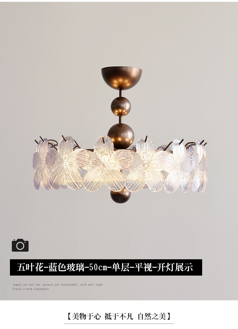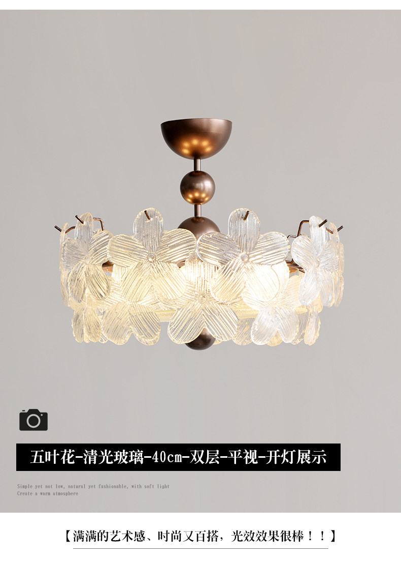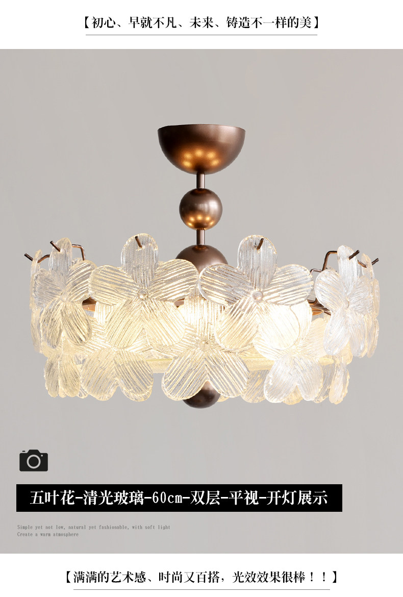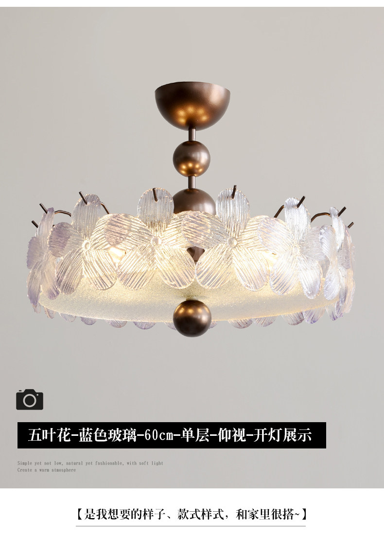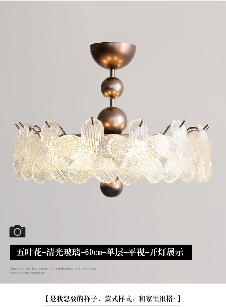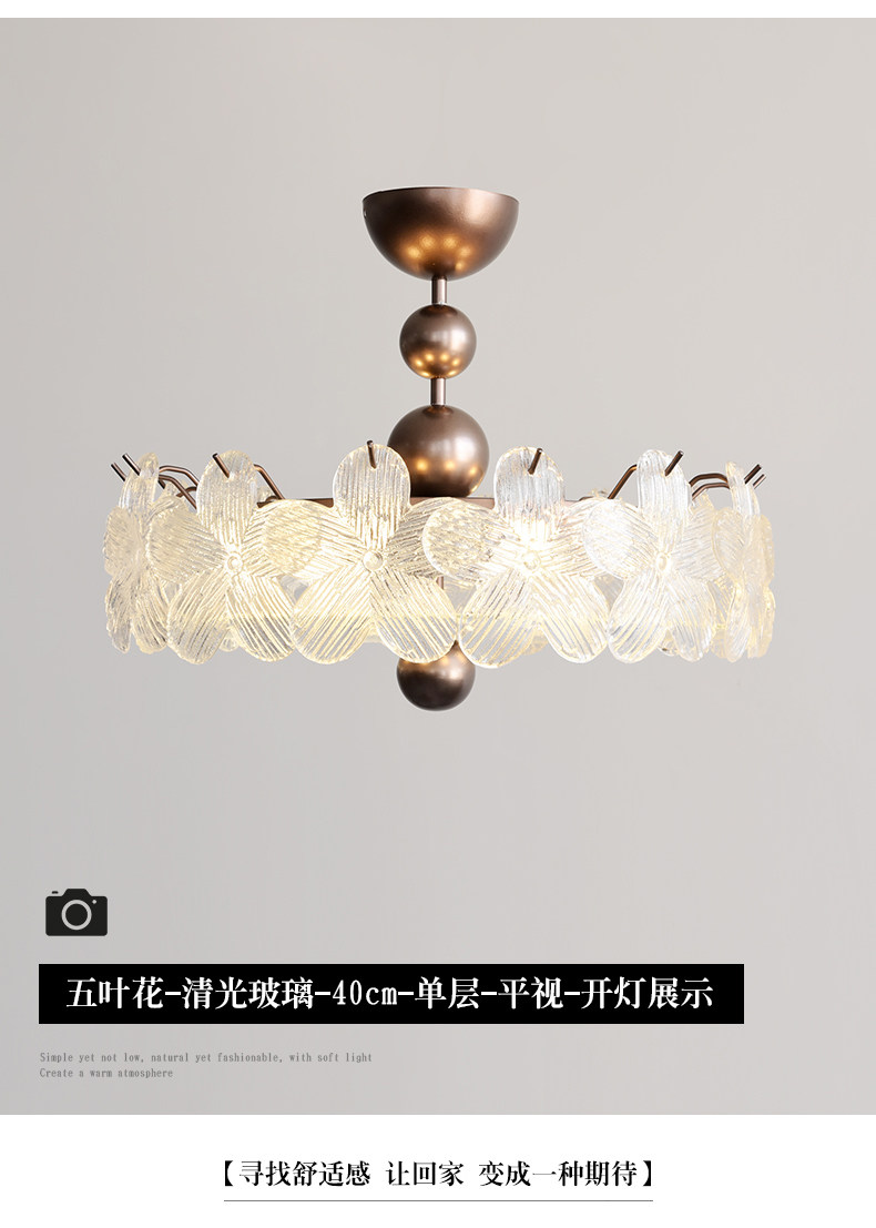 French-Style Vintage Ceiling Lamp Bedroom Light Retro Romantic Pink Glass Flower Main Bedroom Warm Cream-Style Lighting Fixtures