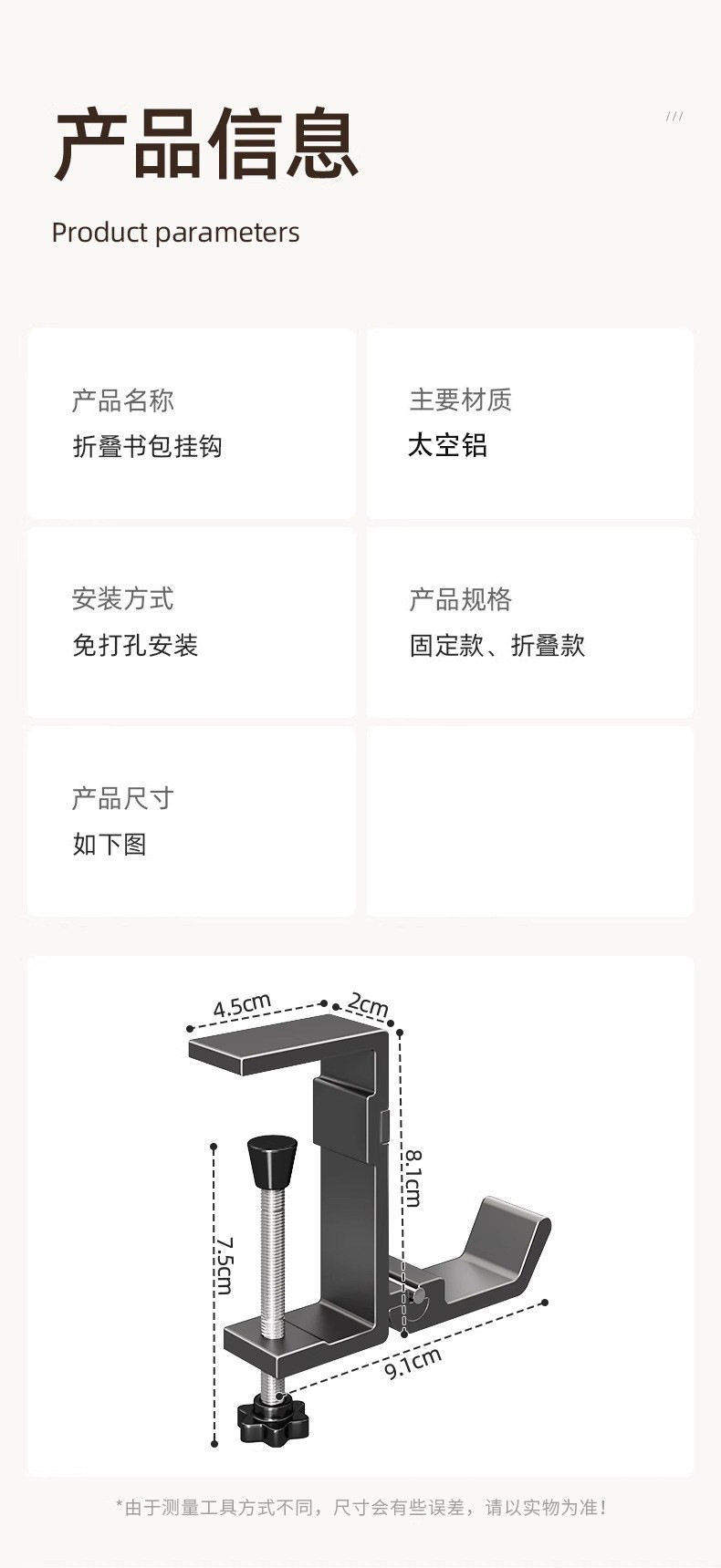 School Bag Hook for Students, Hangs School Bags on the Edge of the Desk, No Need for Drilling, Strong Load-Bearing, Dormitory Office Desk, Traceless Bag Hanging Gadget