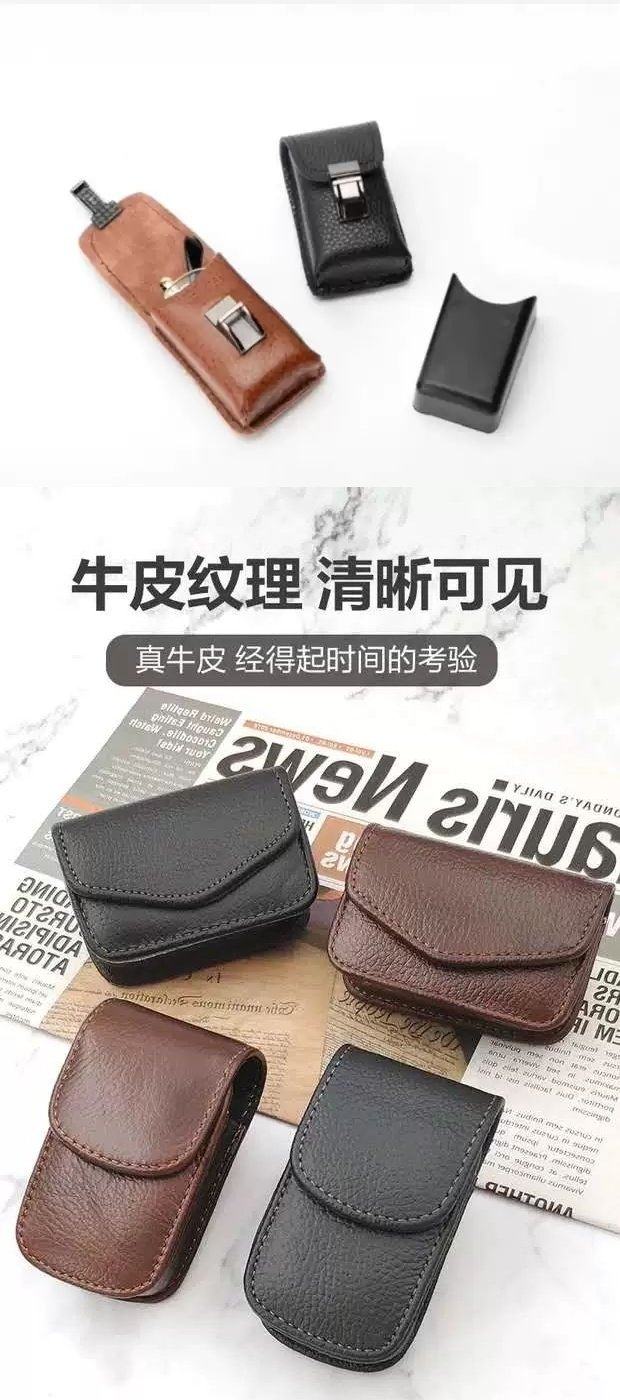 First-Layer Cowhide Leather Folding Reading Glasses Case, Pressure-Resistant, Can Be Worn on a Belt, Can Be Hung on a Waist Bag, Men's Leather Case, Portable