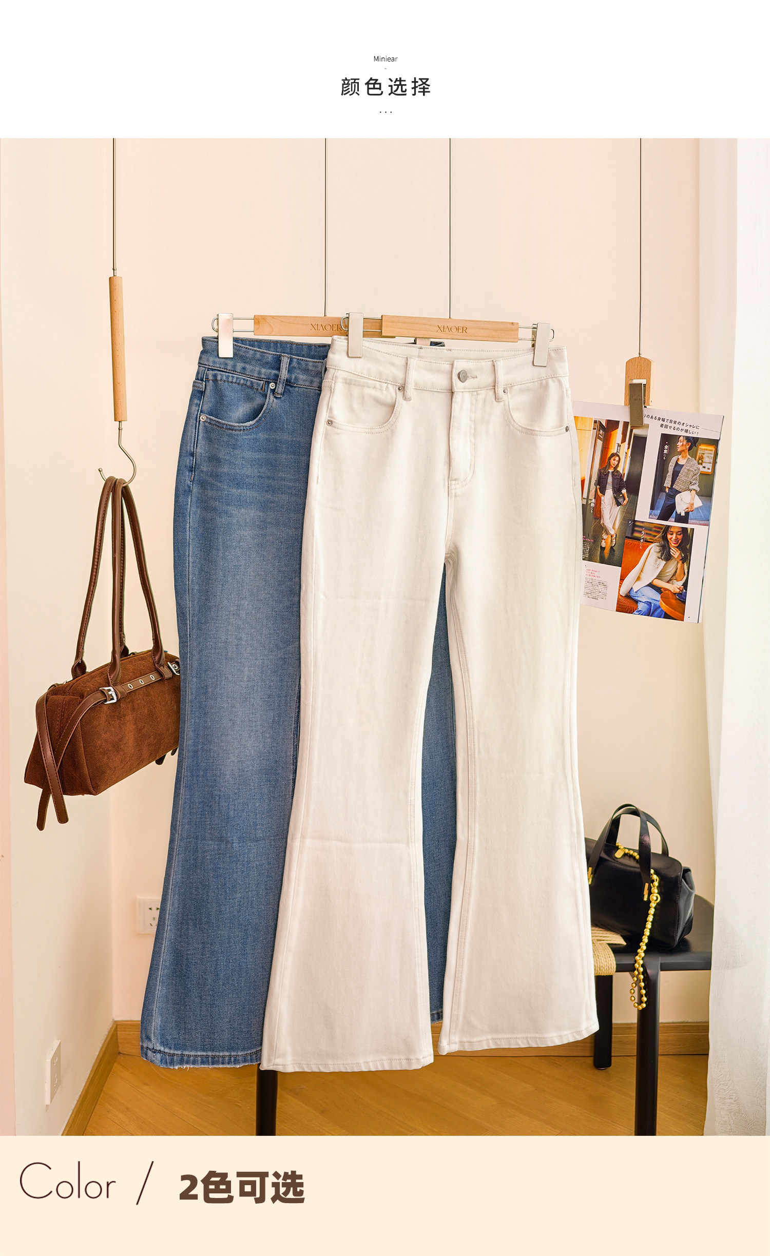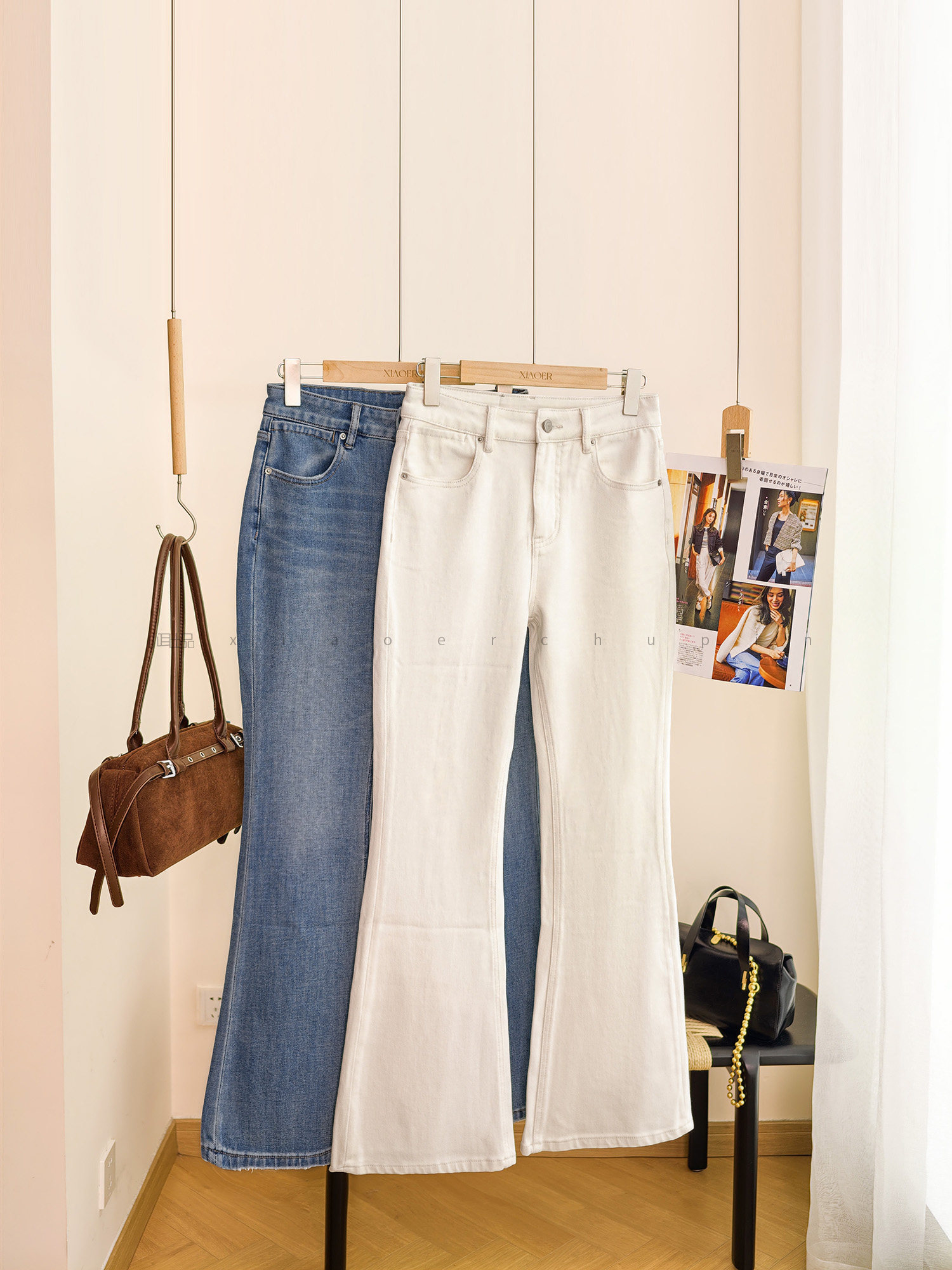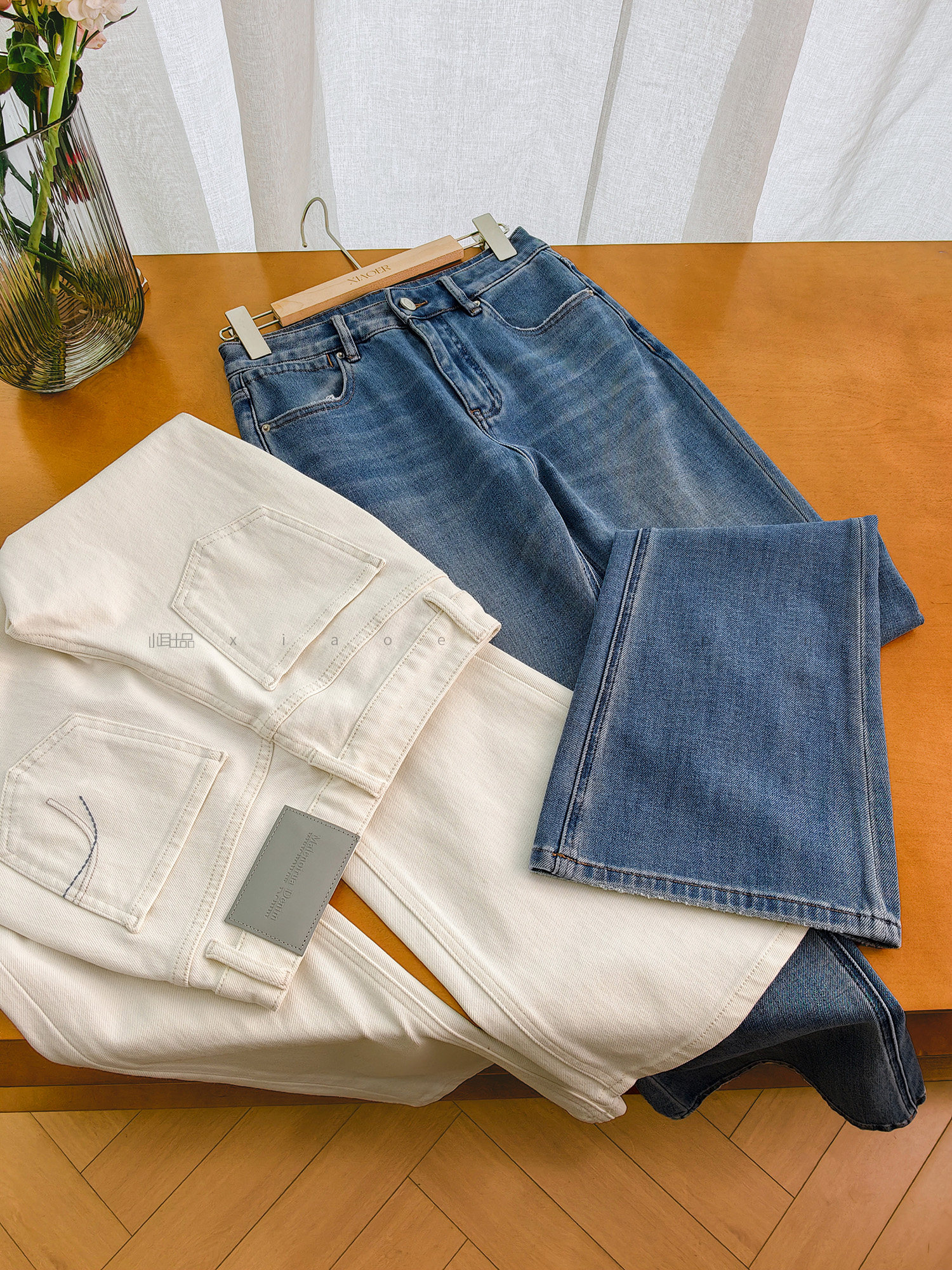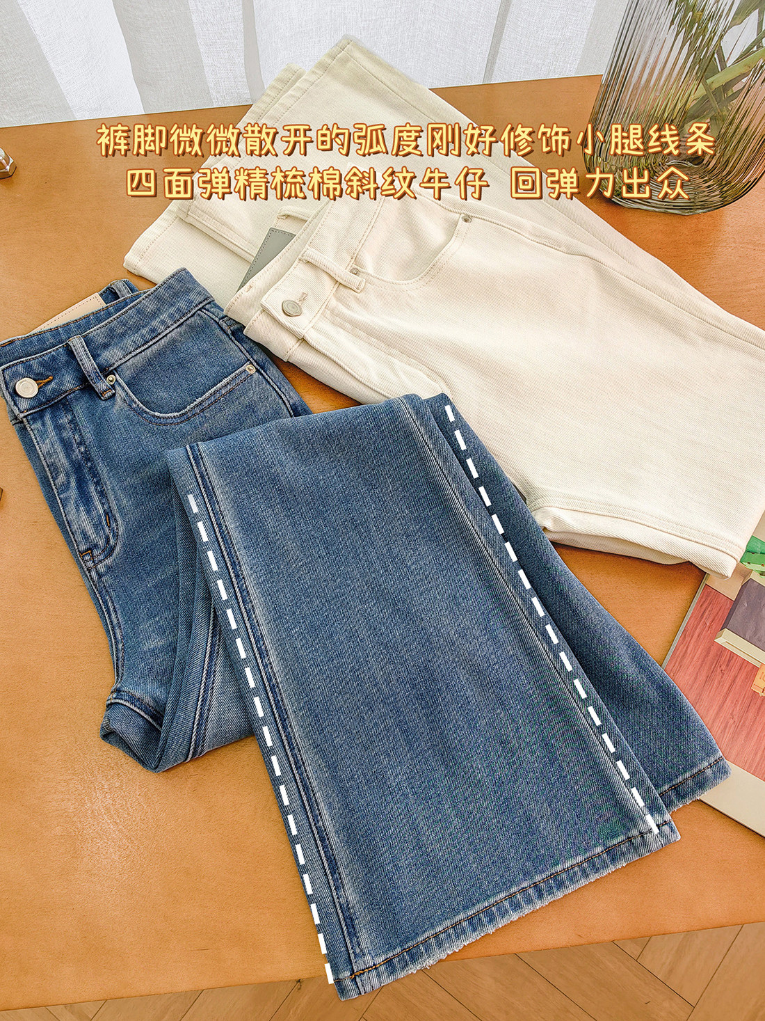 Produced by Xiaoer, four-way stretch! Combed cotton twill denim/cut with slight flare, soft fit jeans and trousers
