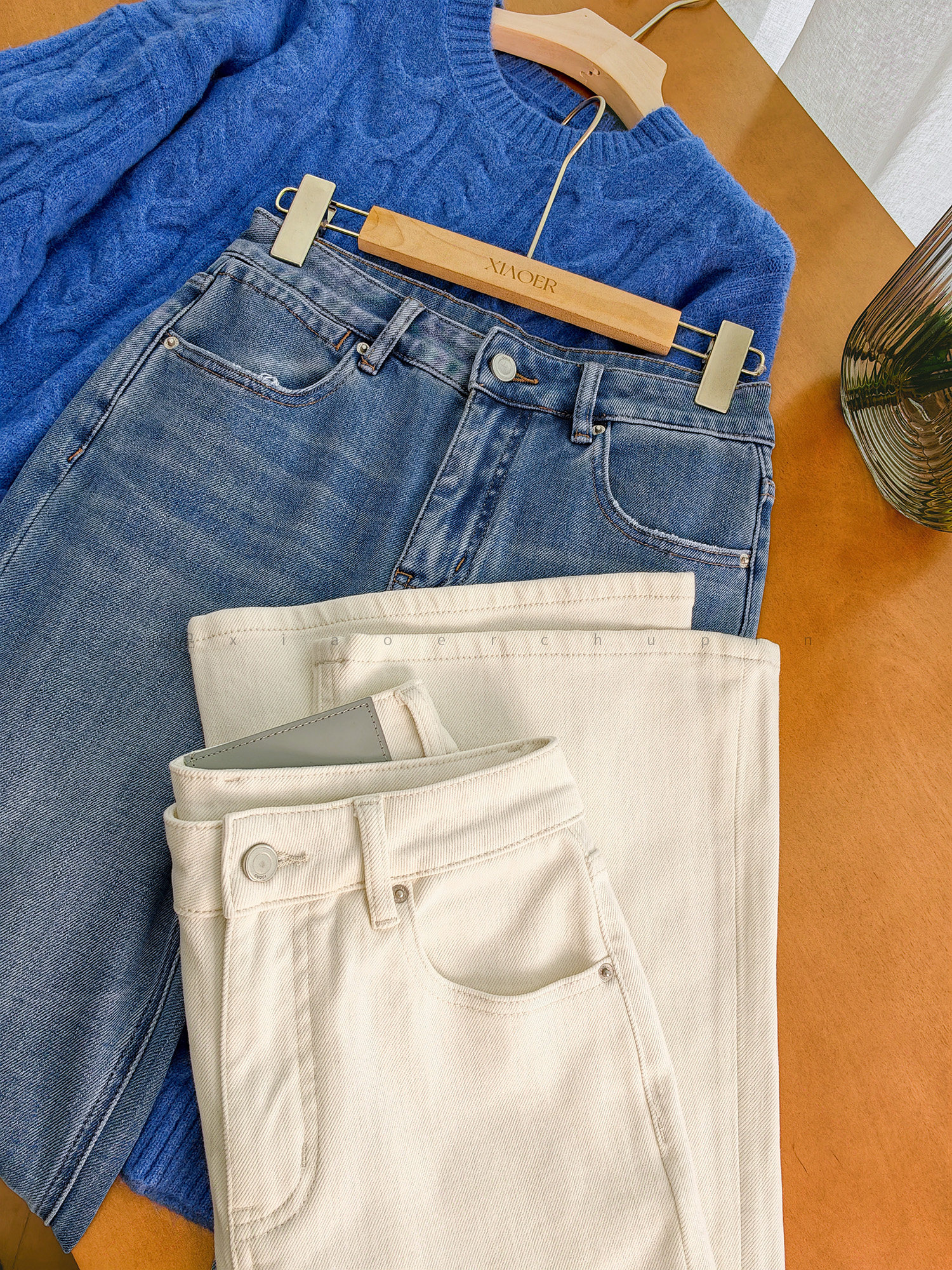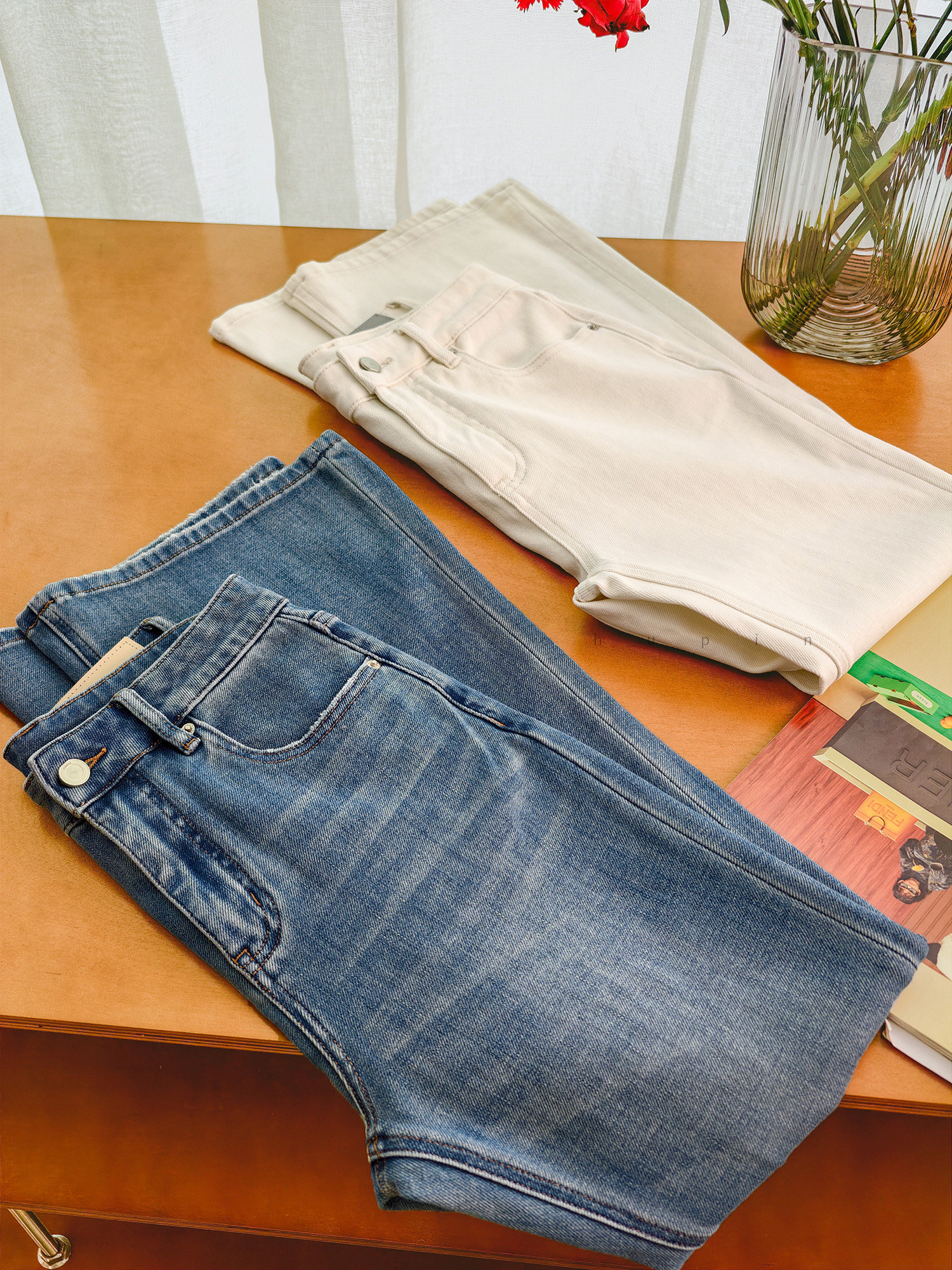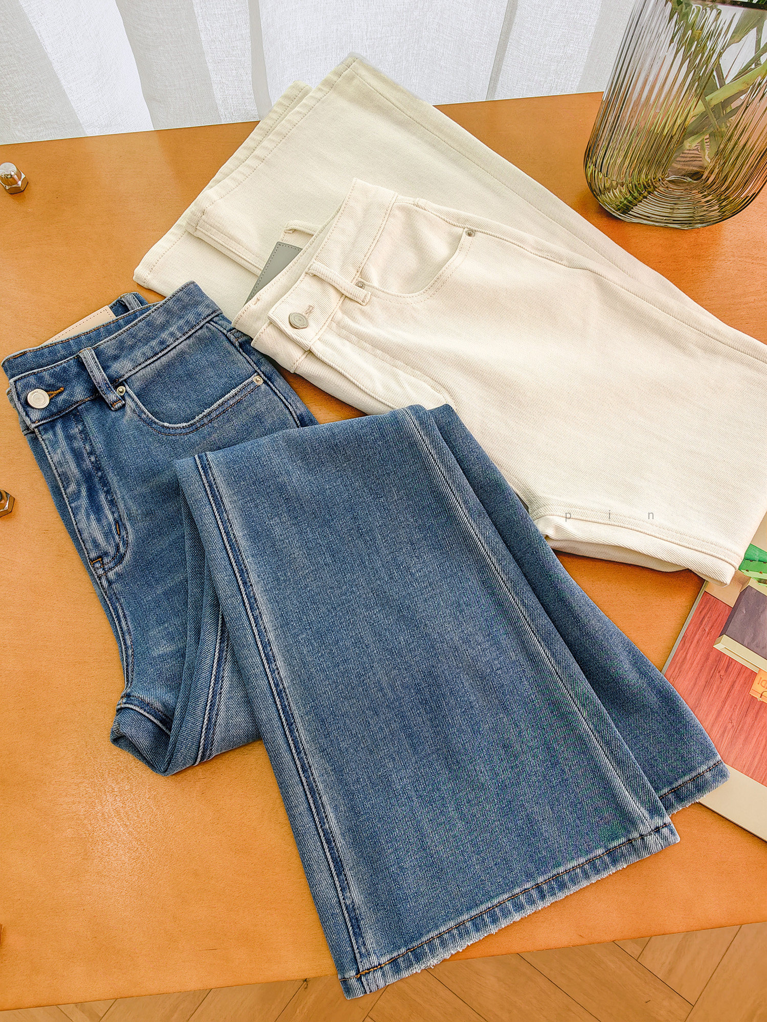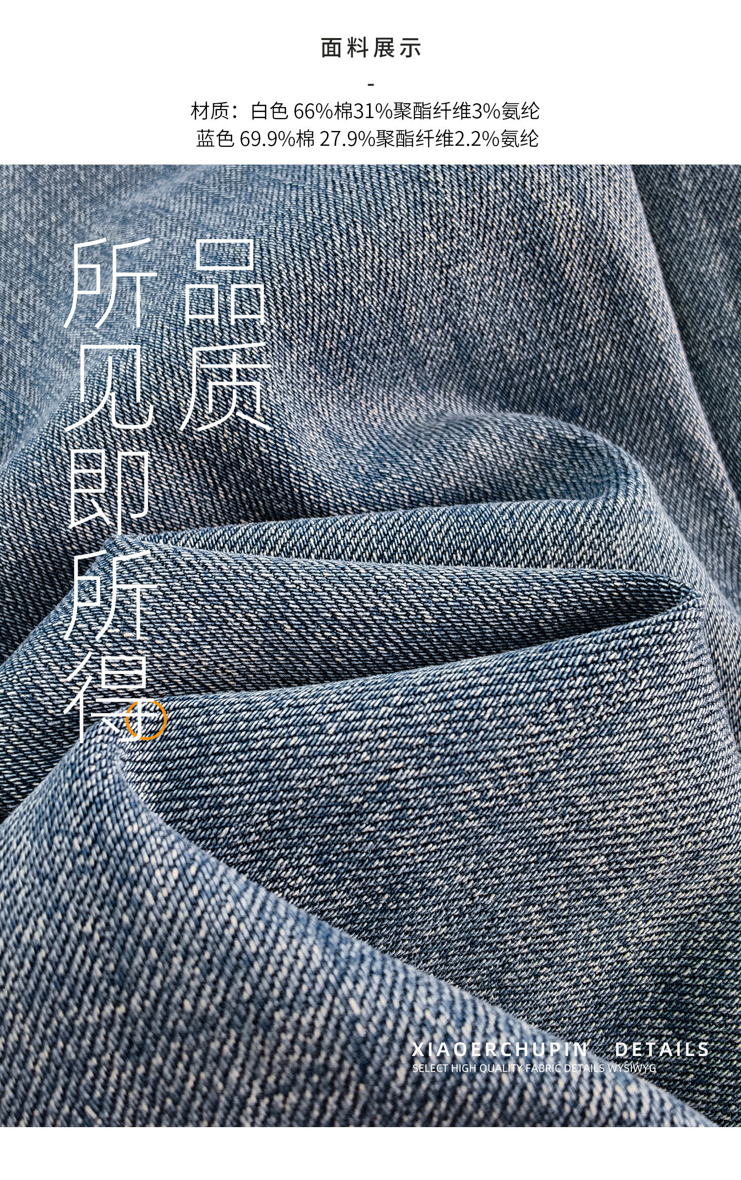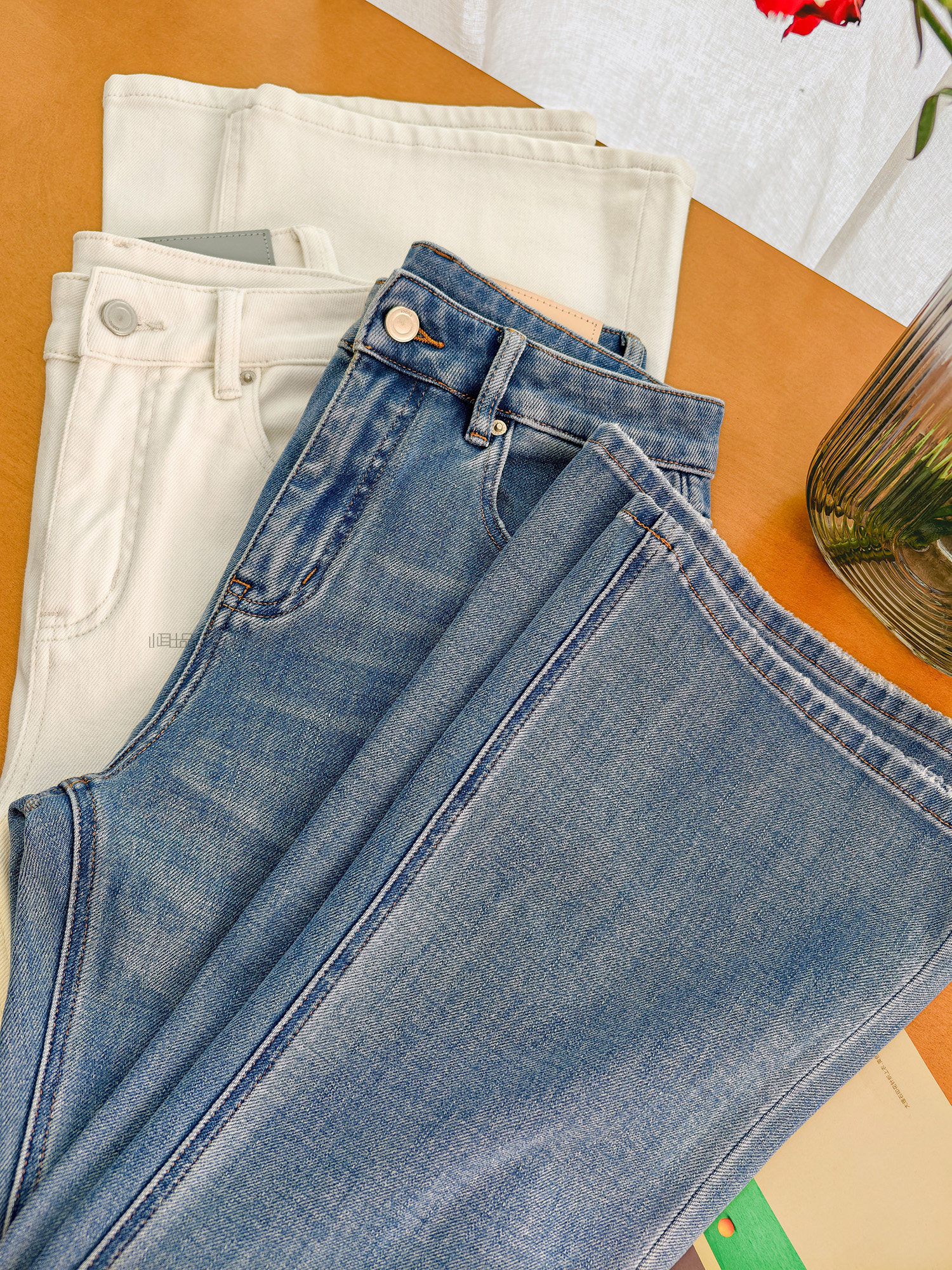 Produced by Xiaoer, four-way stretch! Combed cotton twill denim/cut with slight flare, soft fit jeans and trousers