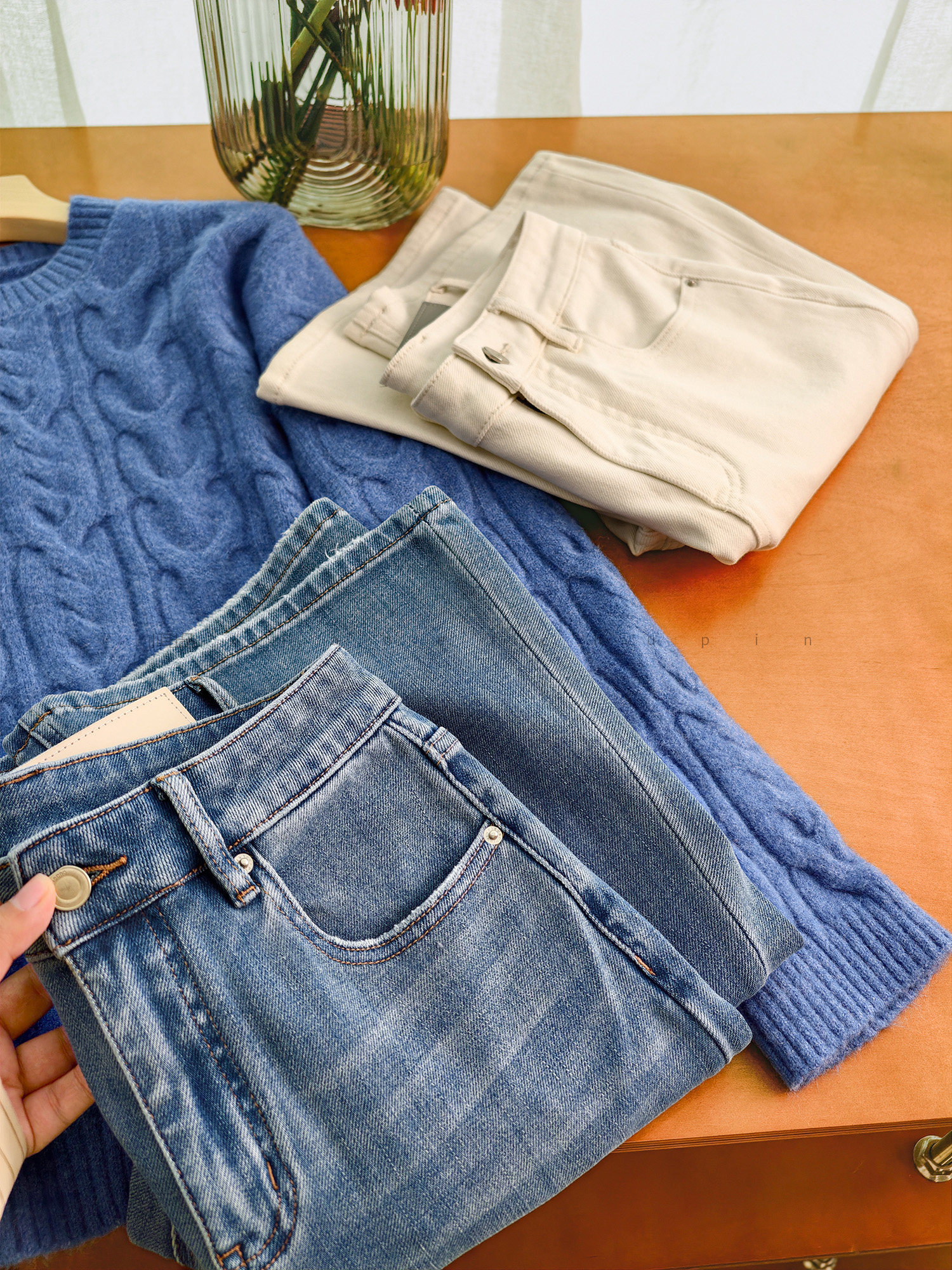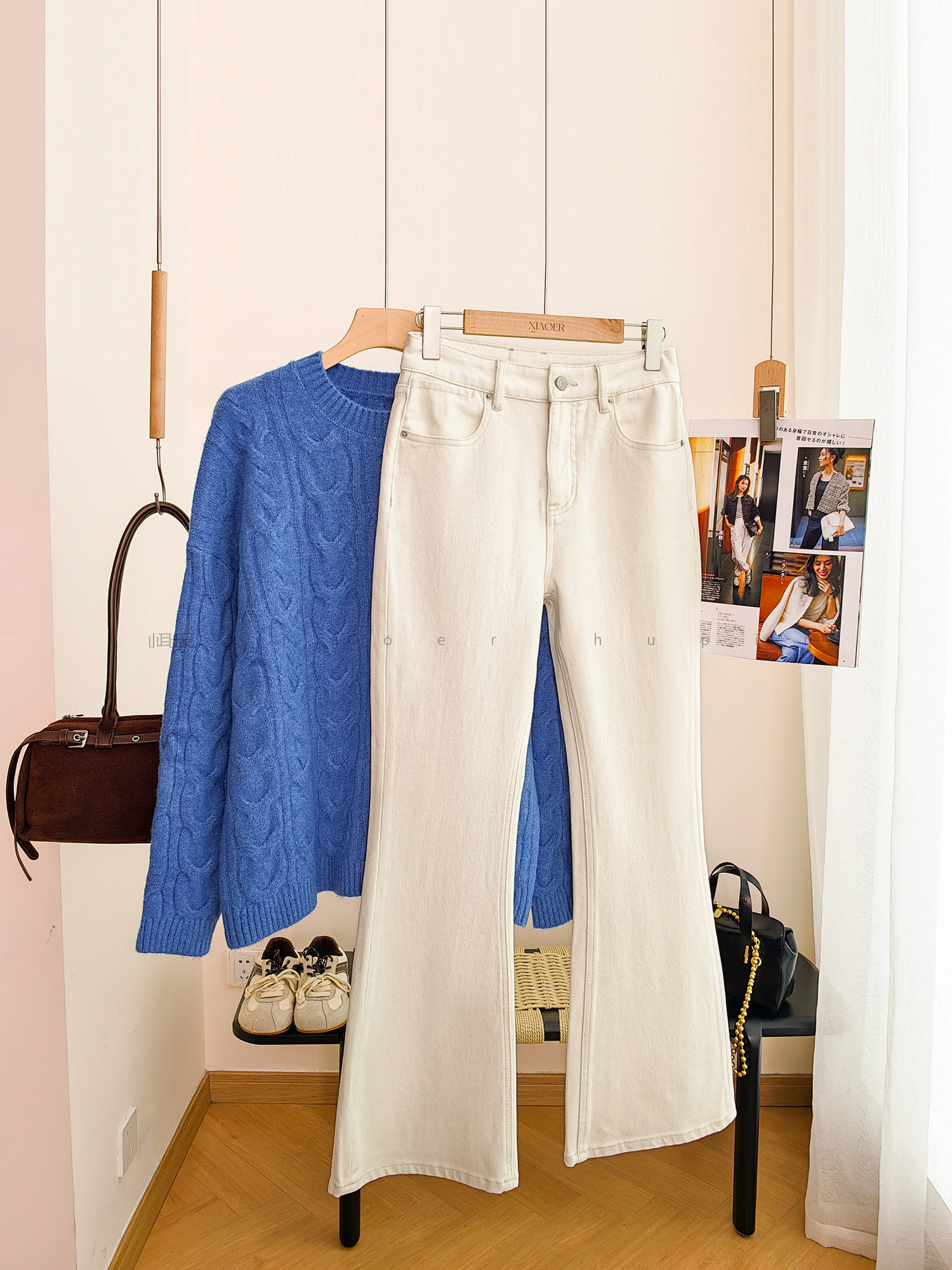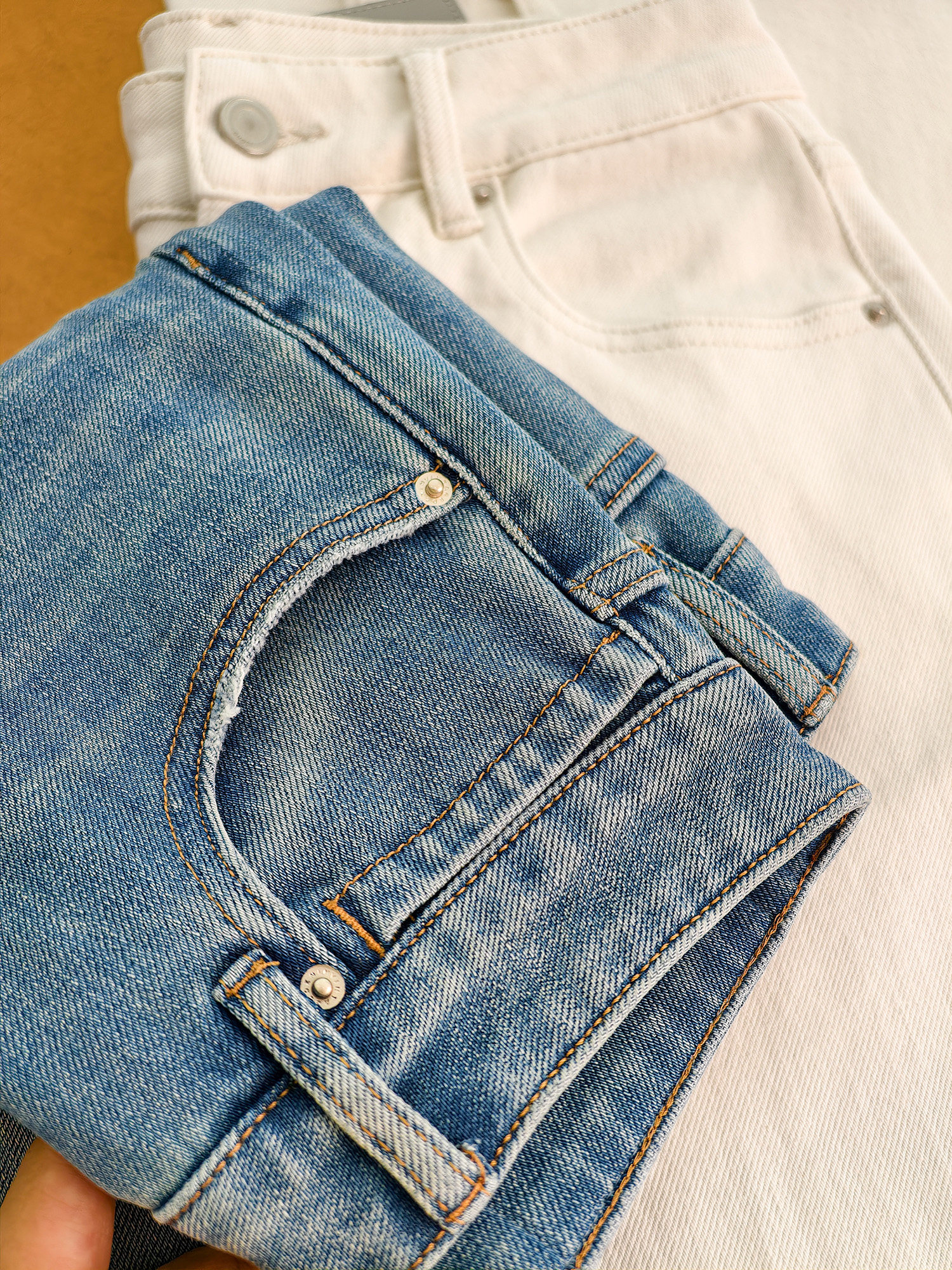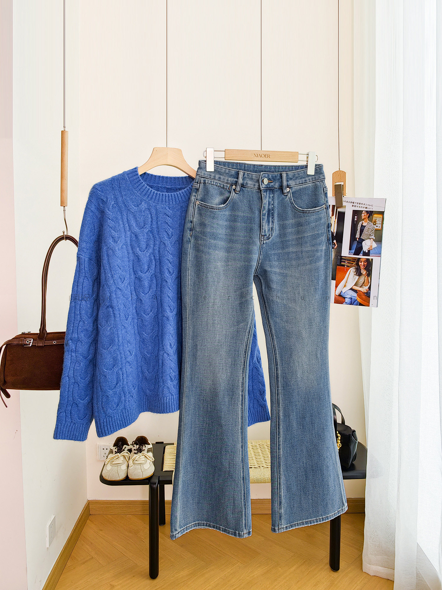 Produced by Xiaoer, four-way stretch! Combed cotton twill denim/cut with slight flare, soft fit jeans and trousers