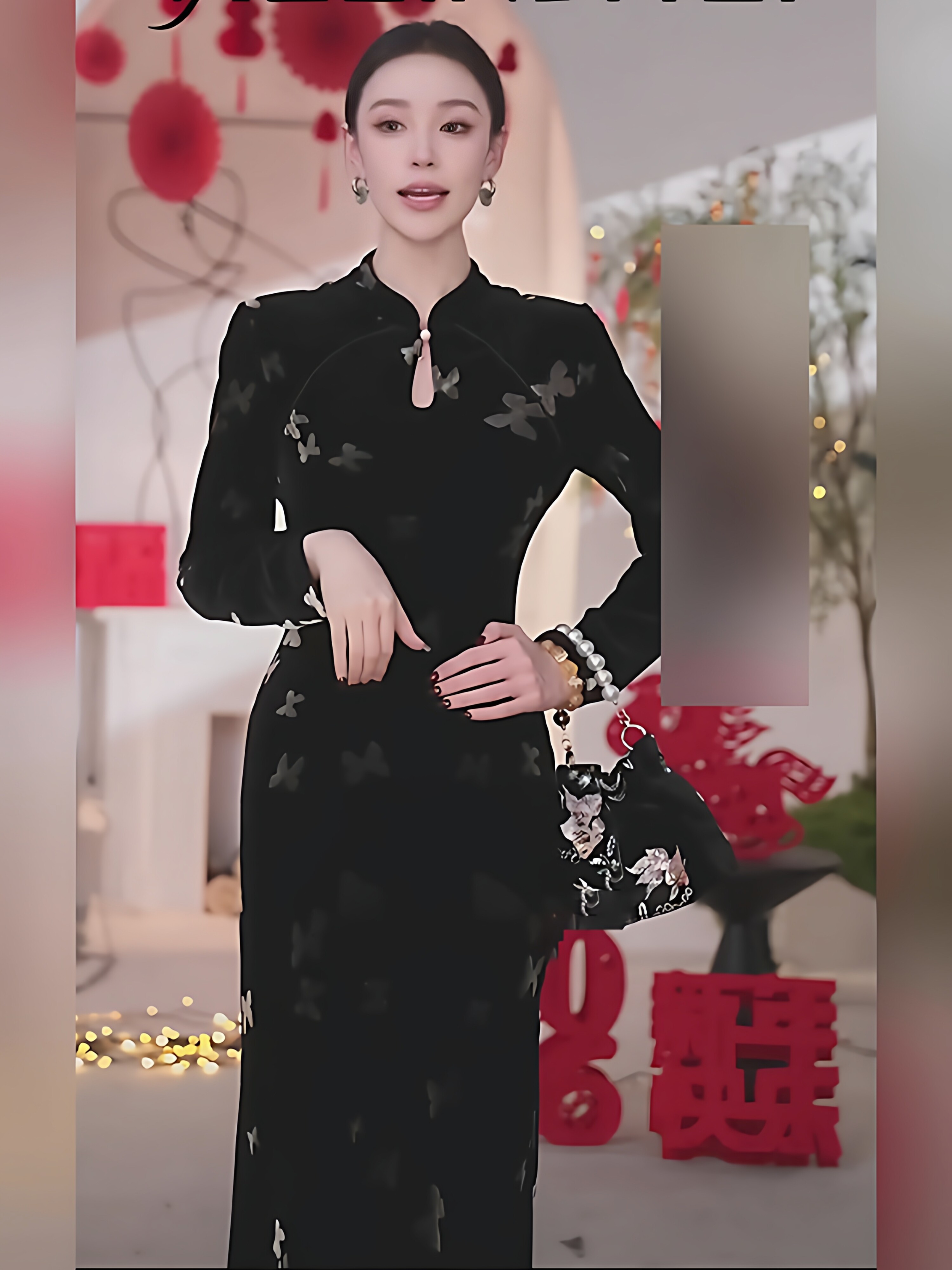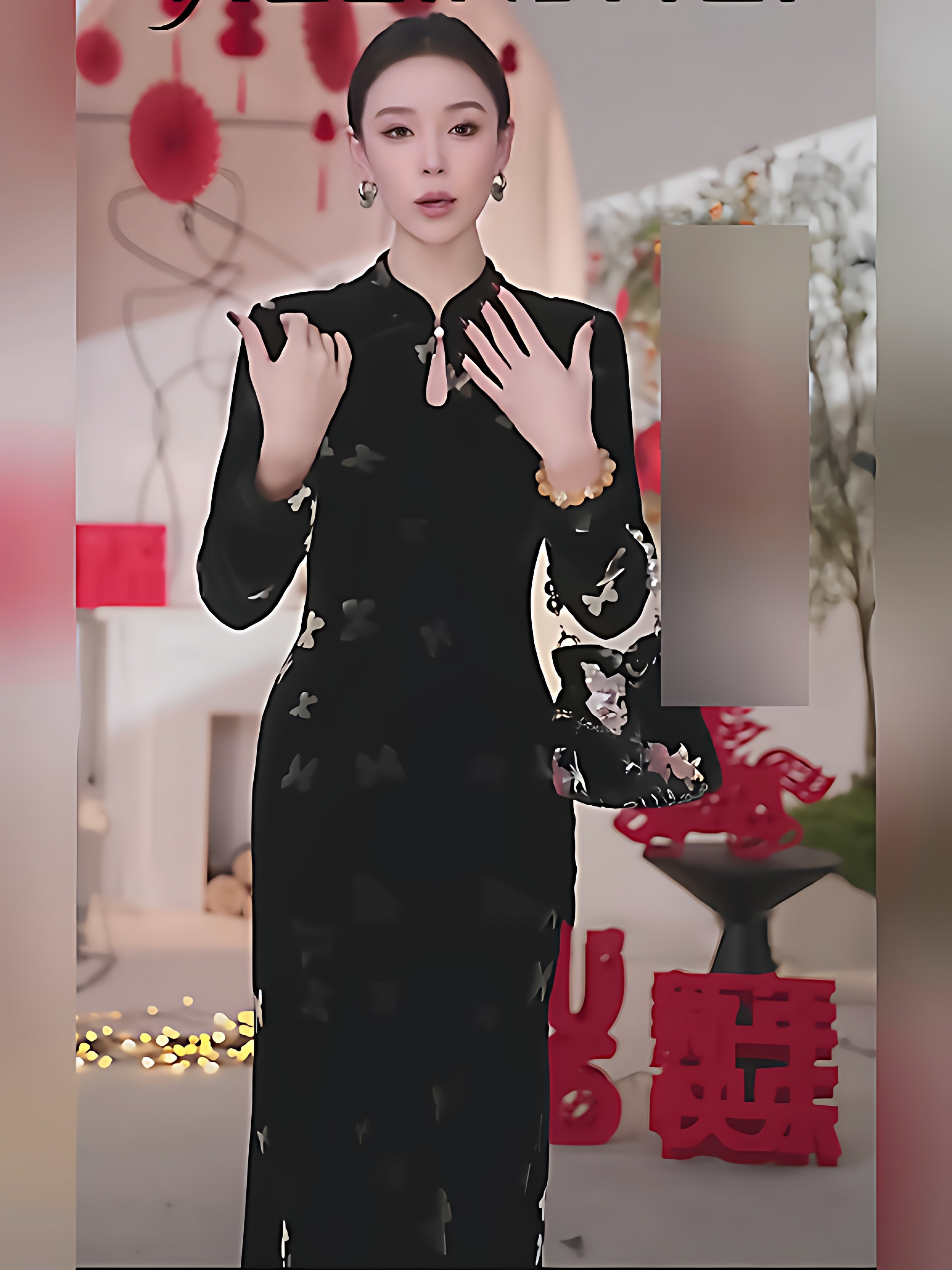 Mijie 2026 Spring New Chinese Style Black Dress for Women, Long Sleeve Stand Collar, Buttoned Velvet Printed Qipao Dress, Elegant