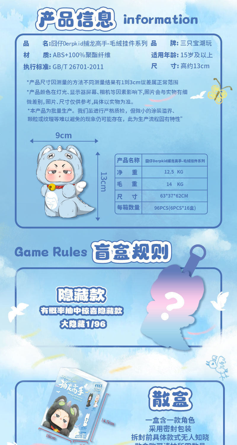 Derpkid Dragon Catcher Plush Pendant Blind Box Doll for Three-Year-Olds Boys New Year Gift
