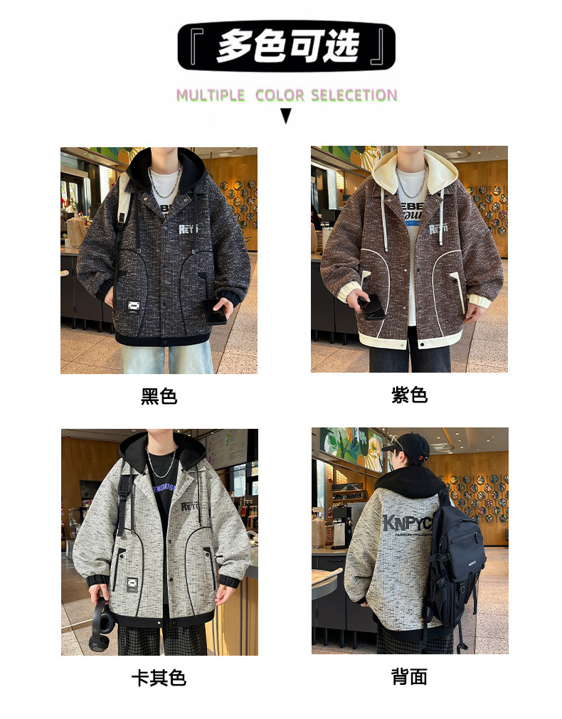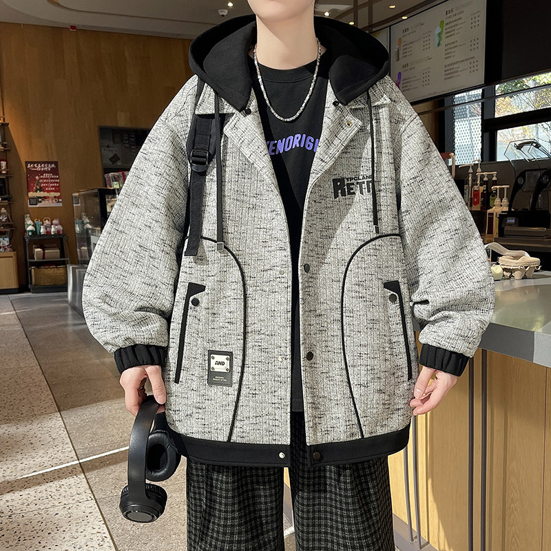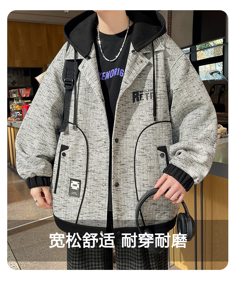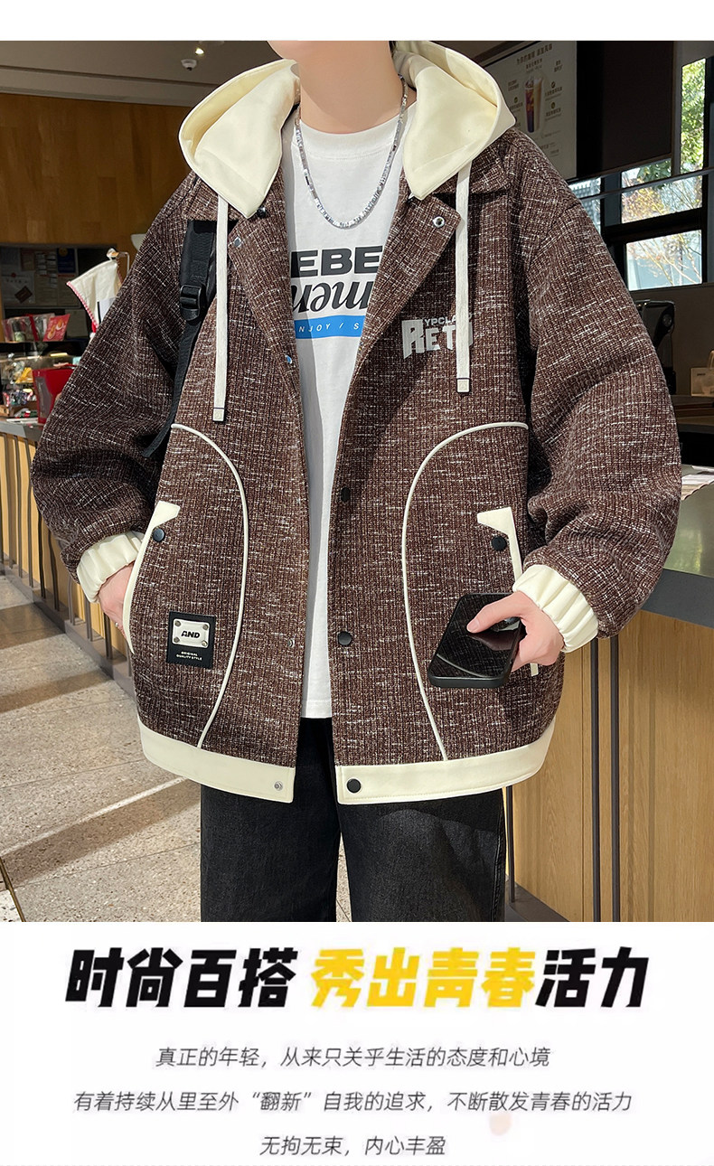 Teenagers' Detachable Hooded Jacket Men's Spring Fashion Trendy Loose Casual Outerwear Student American-Style Stylish Top