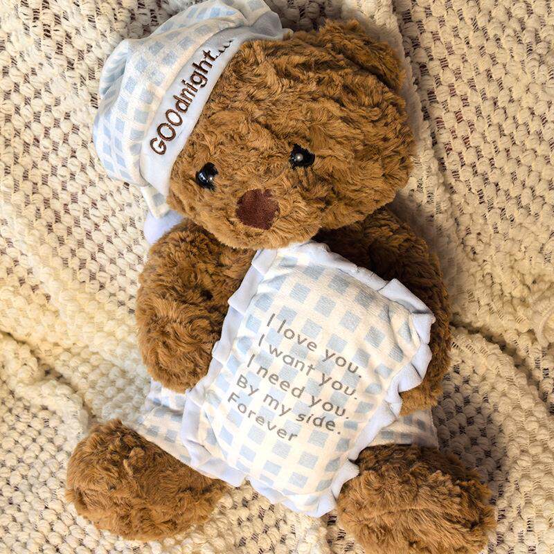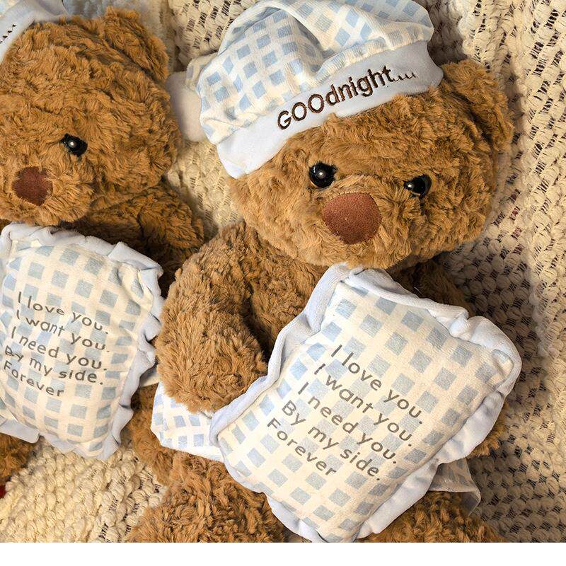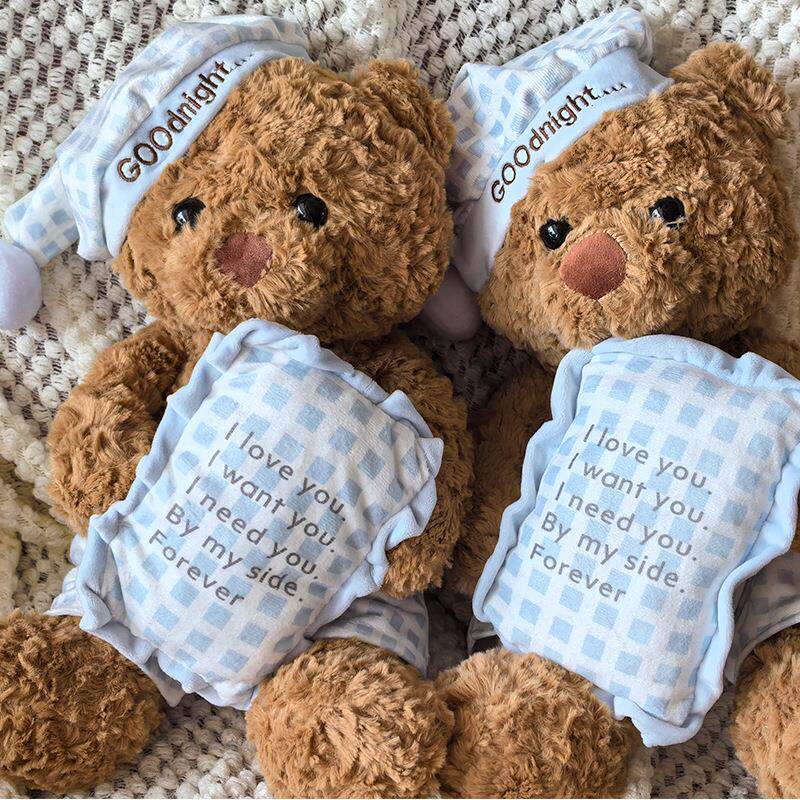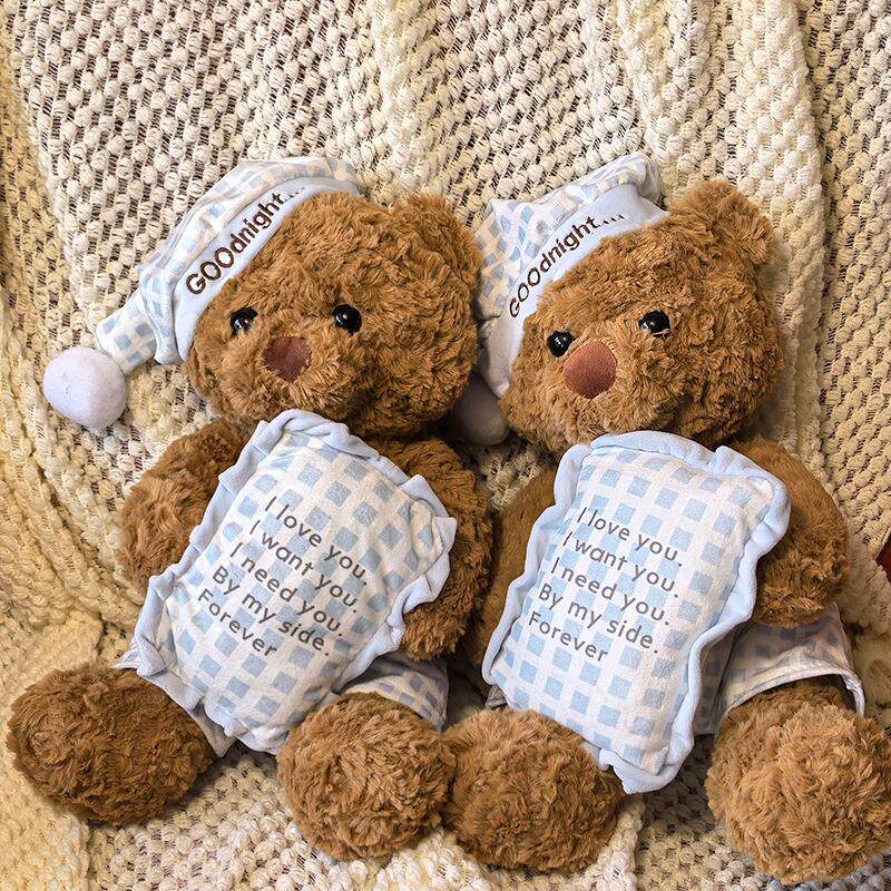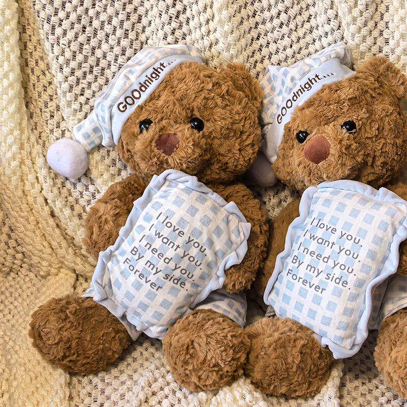 Hong Kong Sc Cute Pillow Blue Plaid Pajamas Bear Doll Plush Toy Sleeping Gift