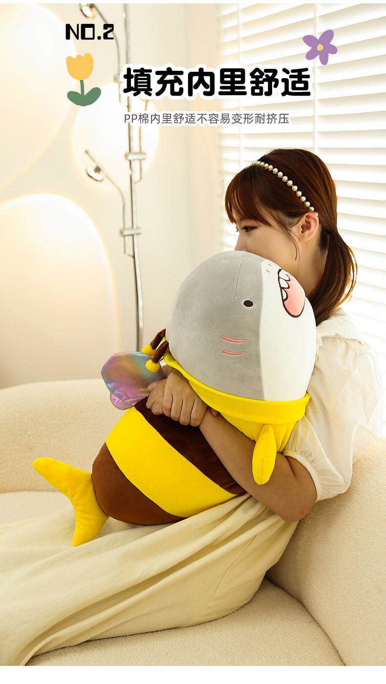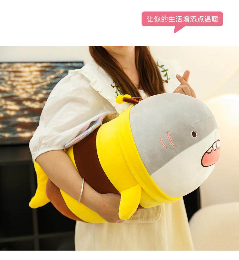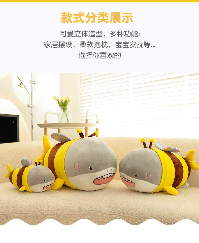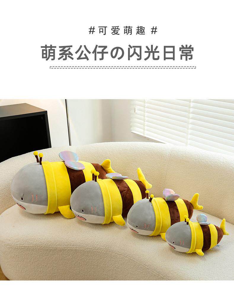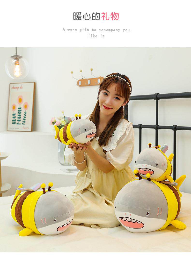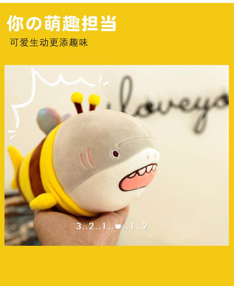 Hong Kong Sc Quirky Plush Toy Bee Shark Stuffed Animal Cute Shark Bee Doll Pillow Birthday Gift