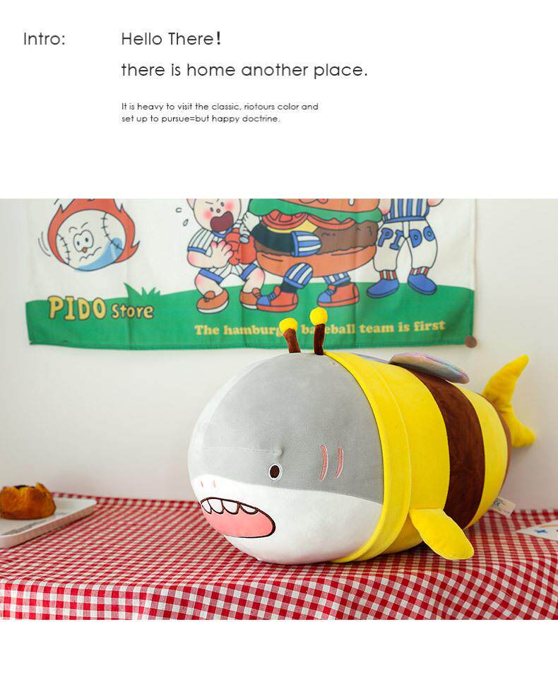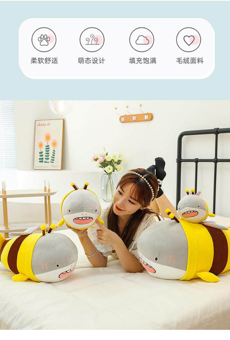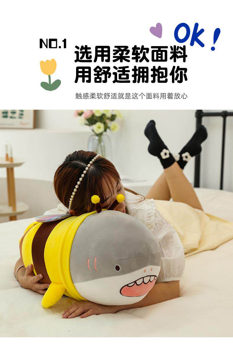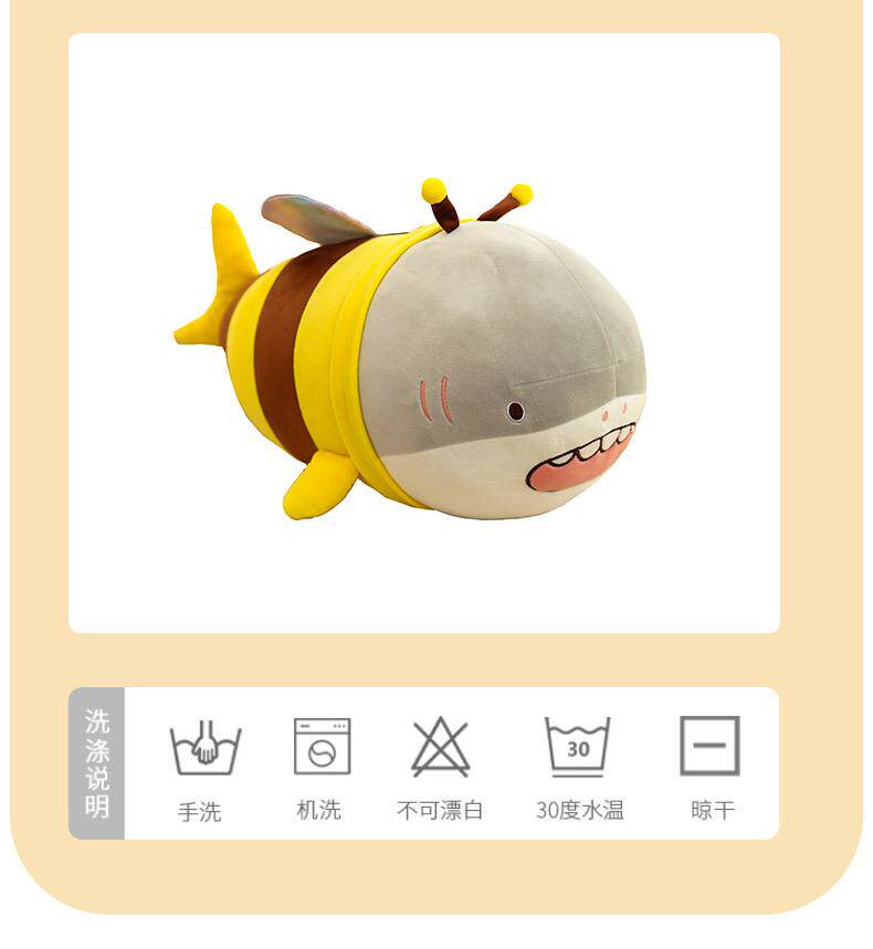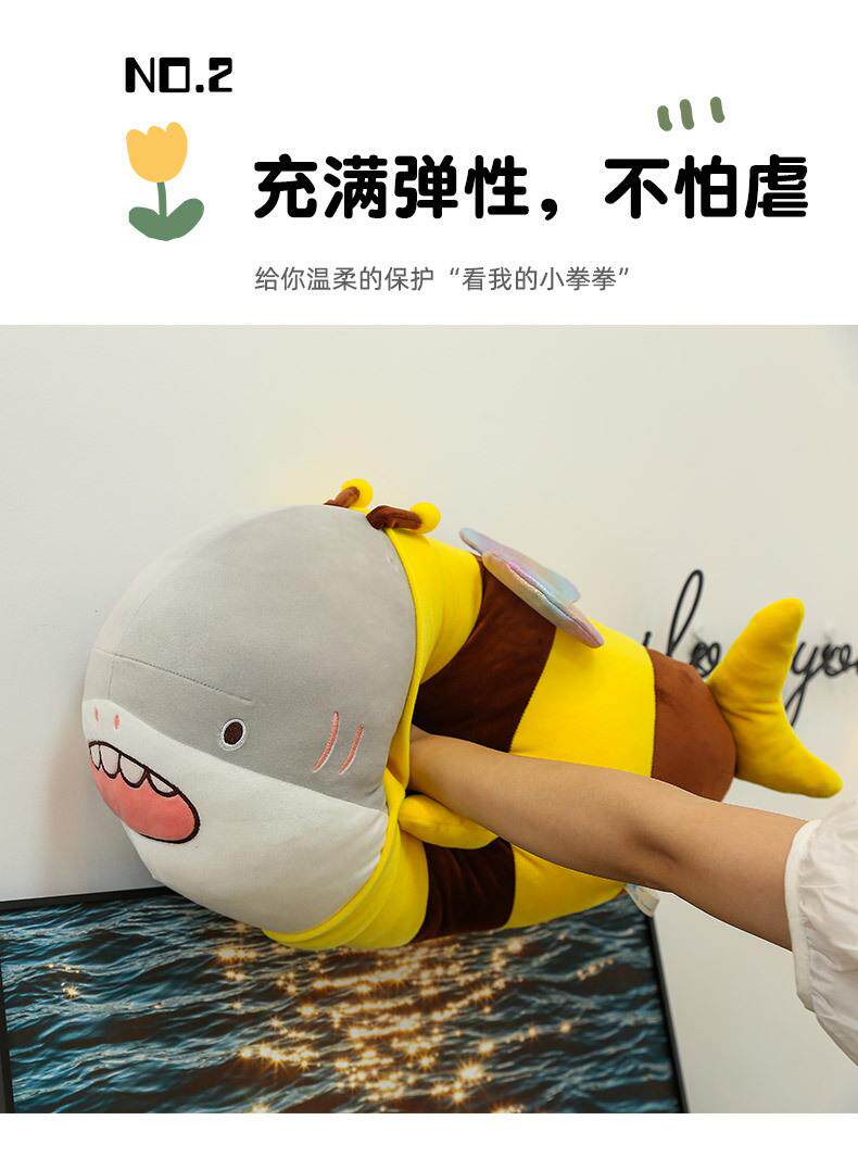 Hong Kong Sc Quirky Plush Toy Bee Shark Stuffed Animal Cute Shark Bee Doll Pillow Birthday Gift