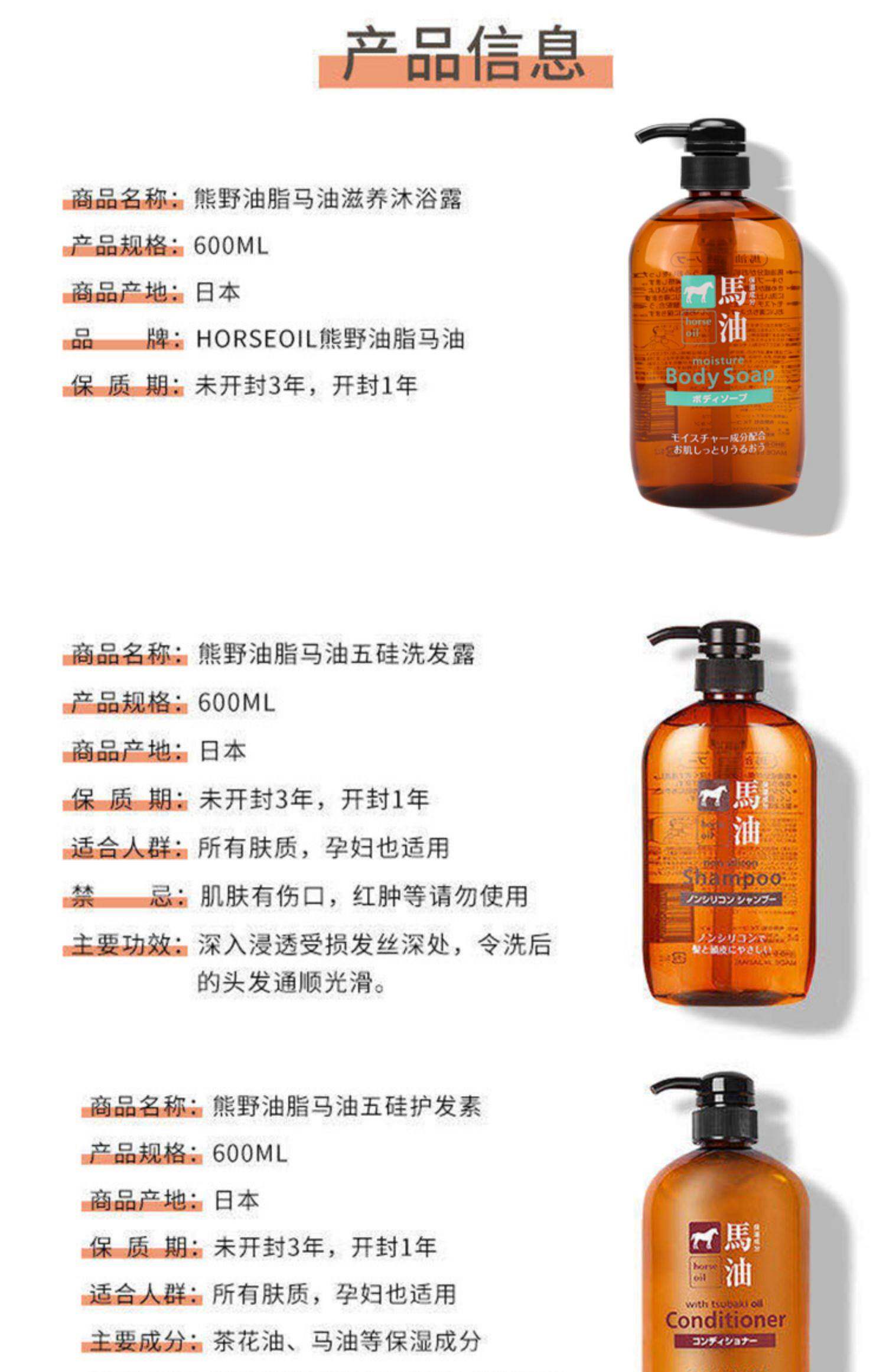 Japanese Kumano Oil Horse Oil Shampoo for Men and Women, Silicone-Free, Anti-Dandruff, Oil Control, Volumizing Conditioner, Genuine Product, Shampoo and Conditioner Set