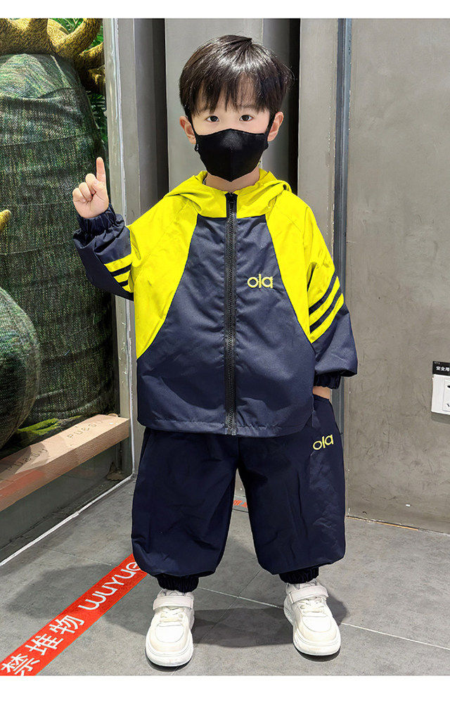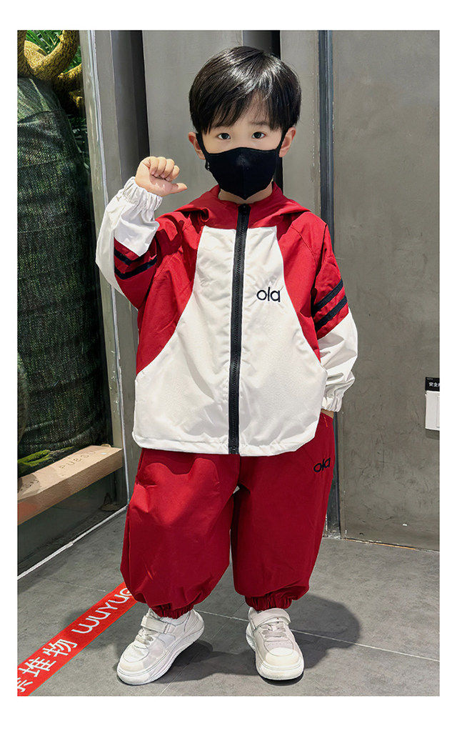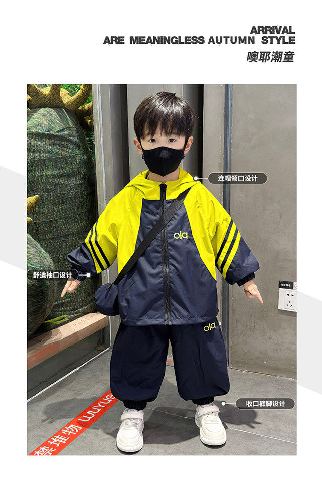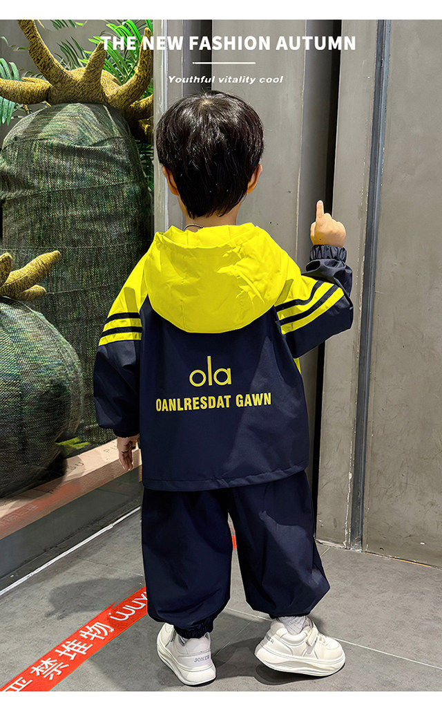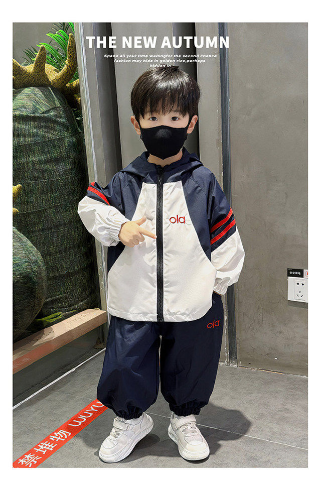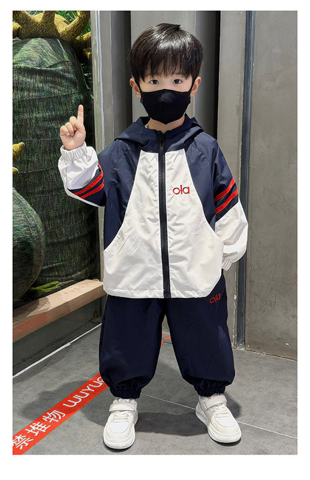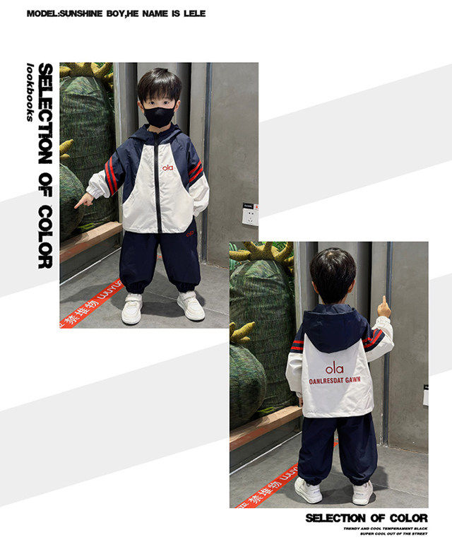 French Boys' Outfit 2026 Spring New Stylish Children's Windbreaker Jacket Spring Outfit Baby Sports Two-Piece Set
