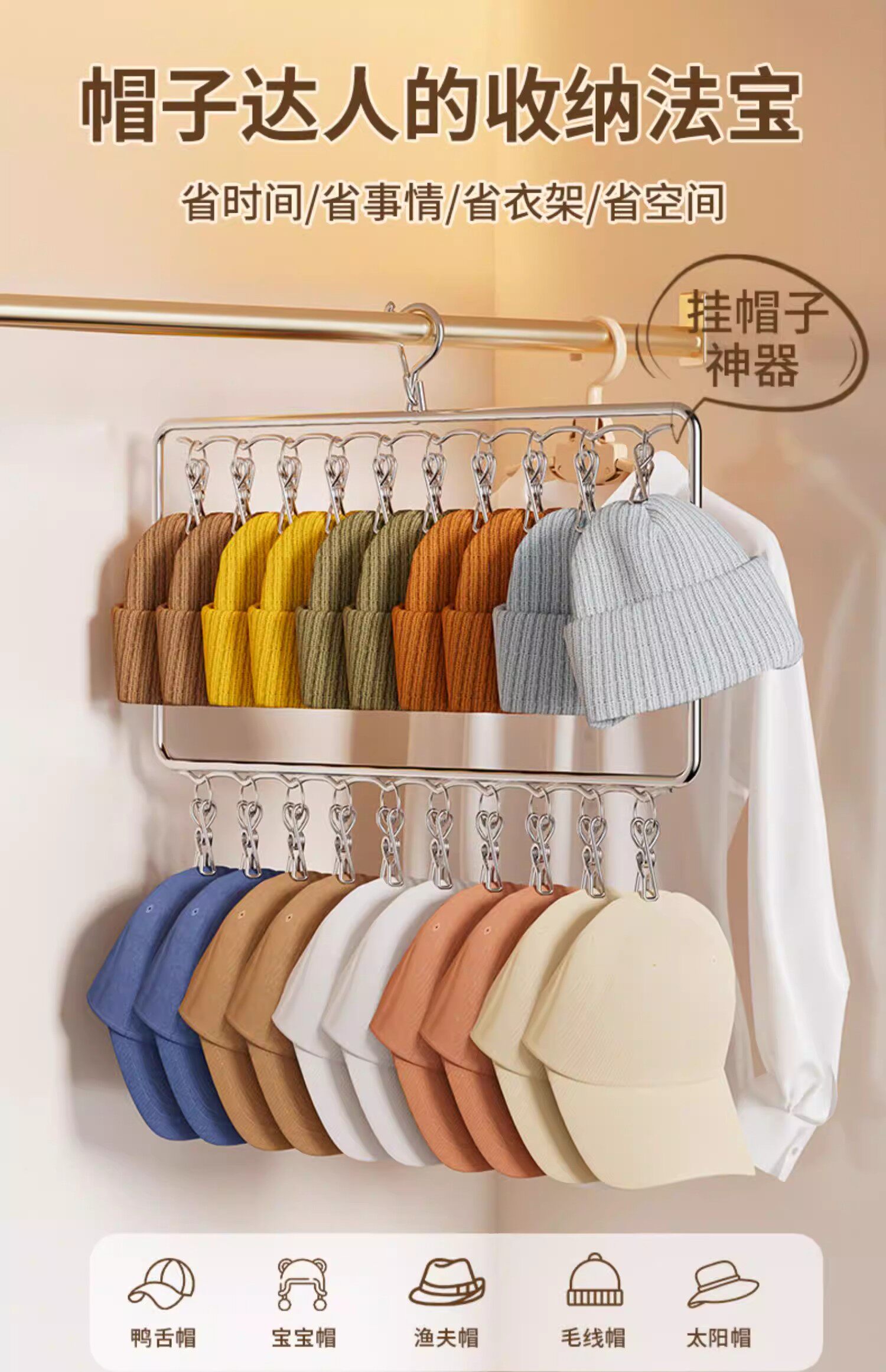 Hanging hat storage wall-mounted home Bailey fisherman duck tongue baseball cap hook clip space-saving wardrobe organization artifact