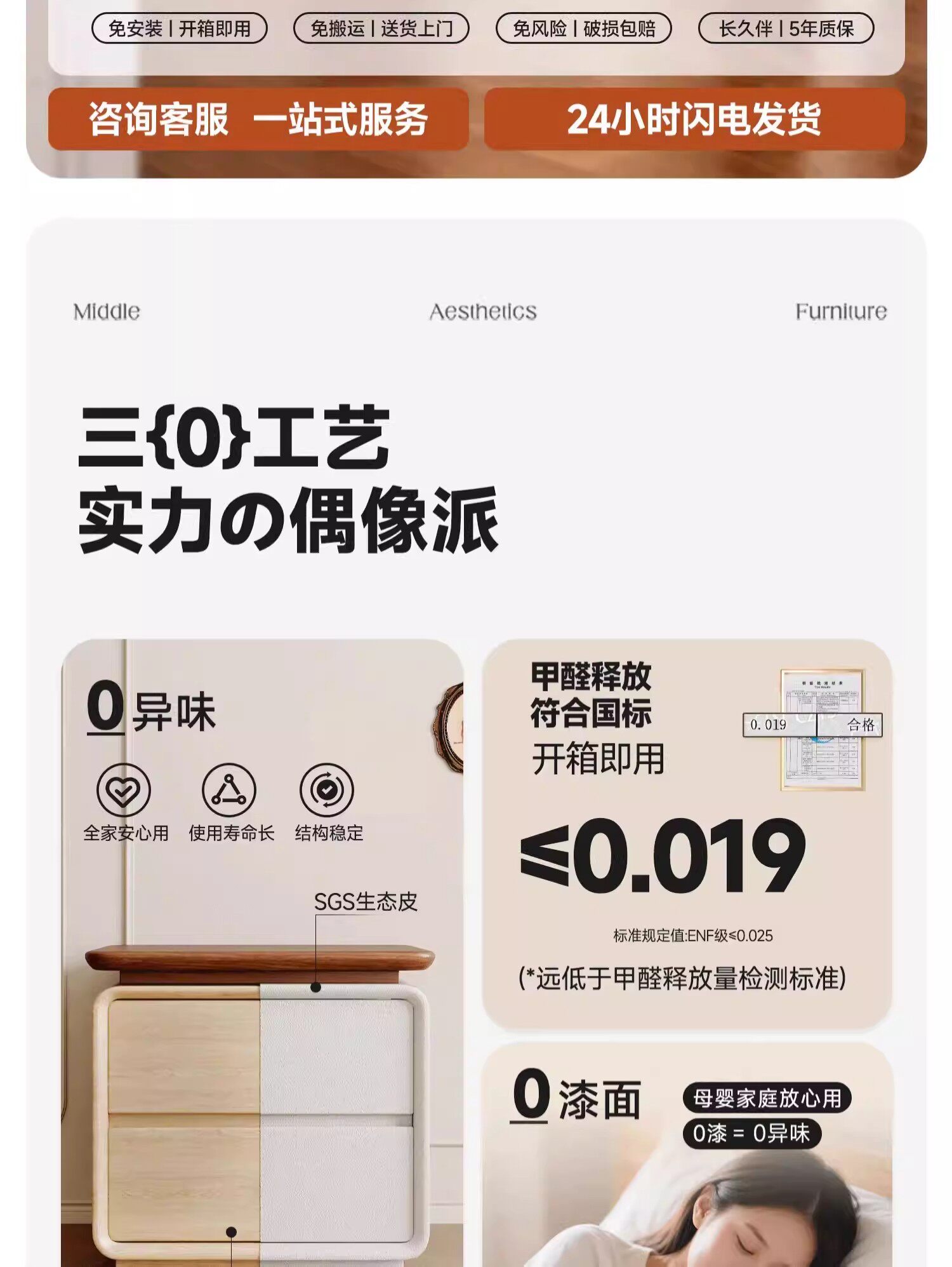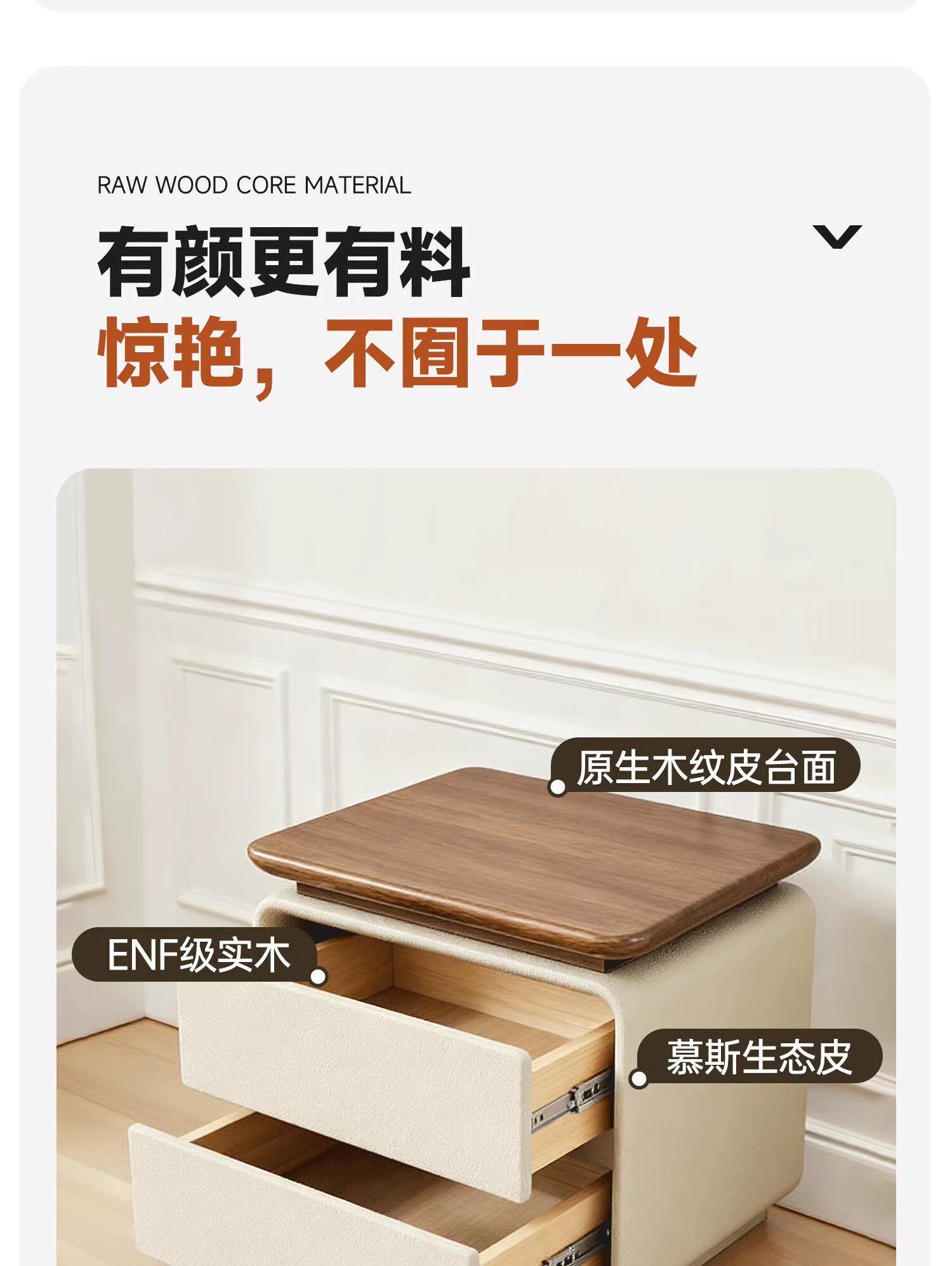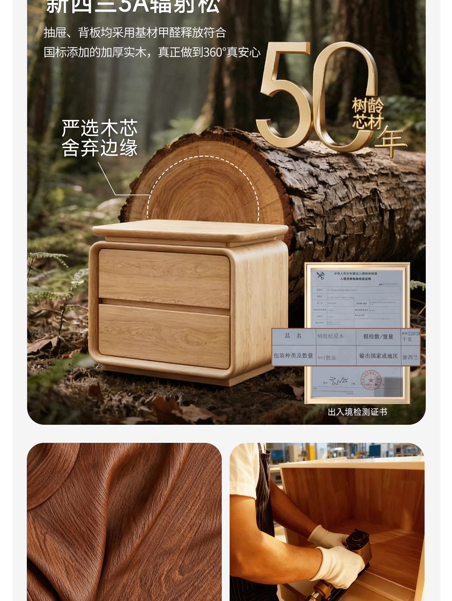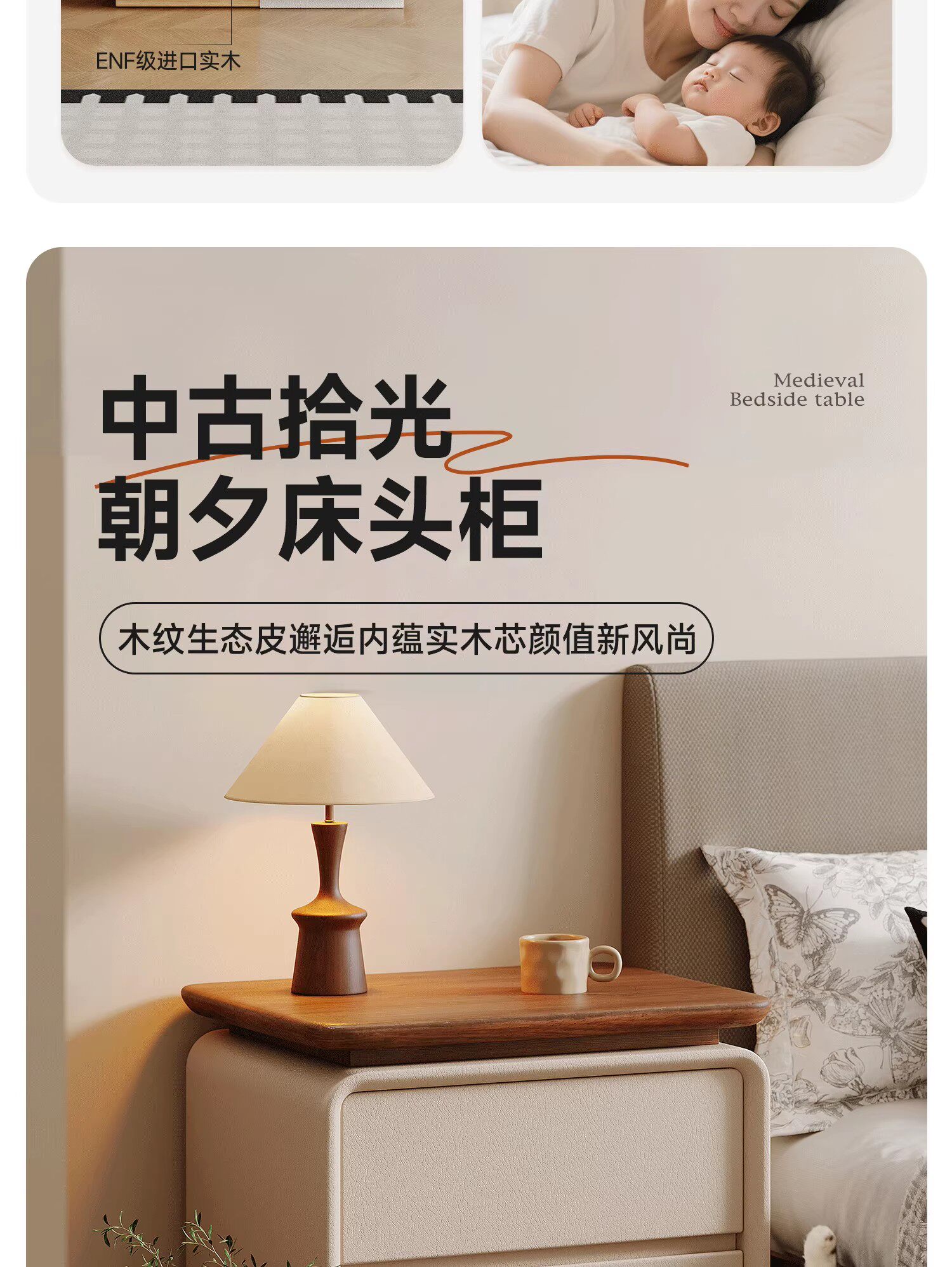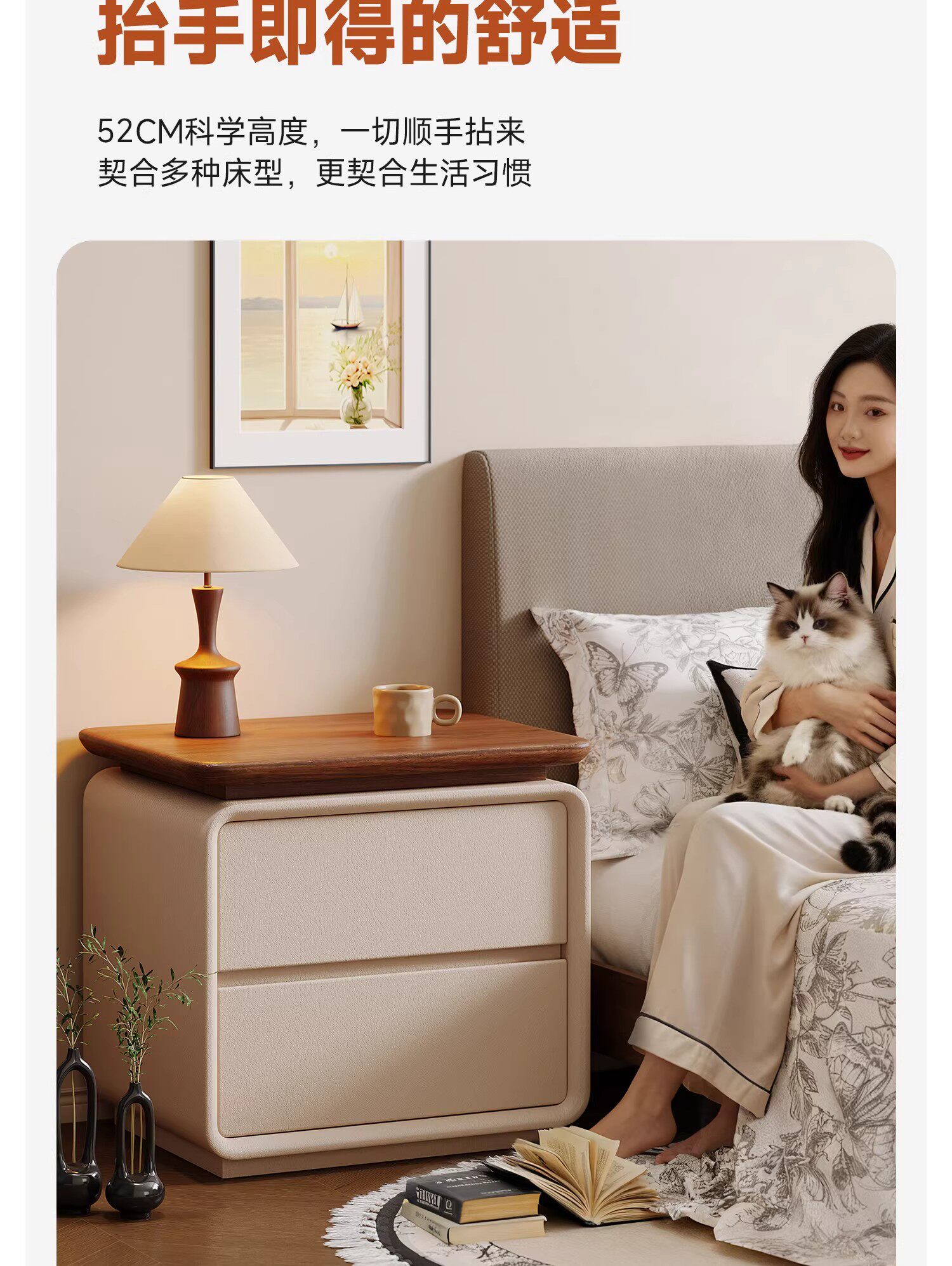 Imported Solid Wood Bedside Table, Modern, Simple, Light Luxury, High-End Bedroom Bedside Large-Capacity Storage Cabinet, 2026 New Model