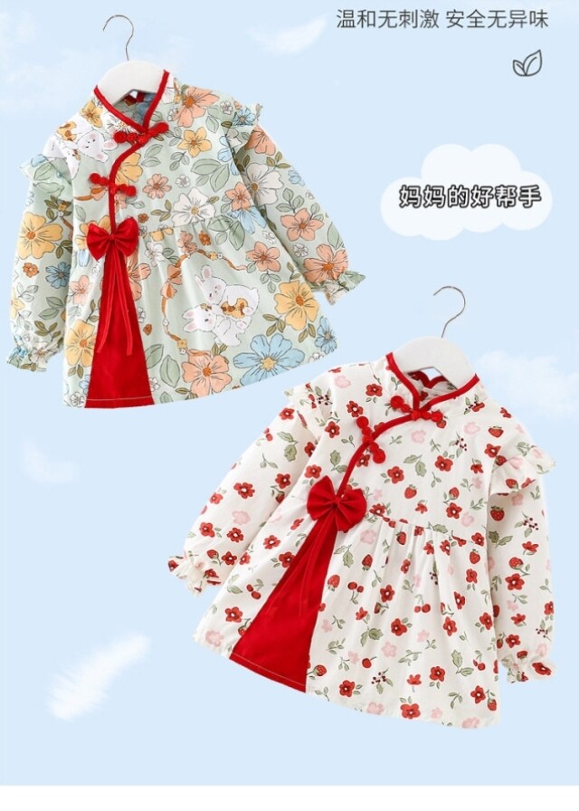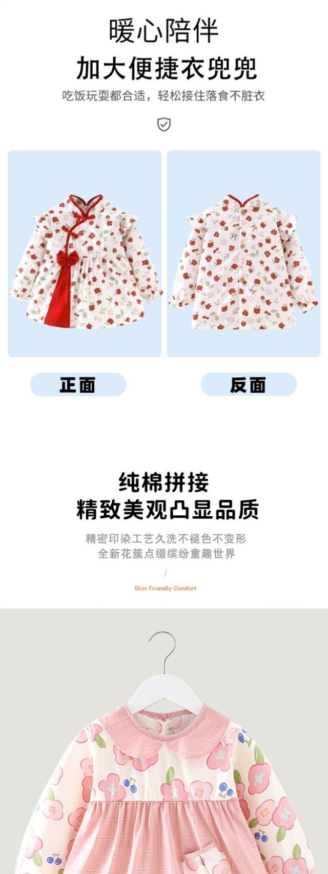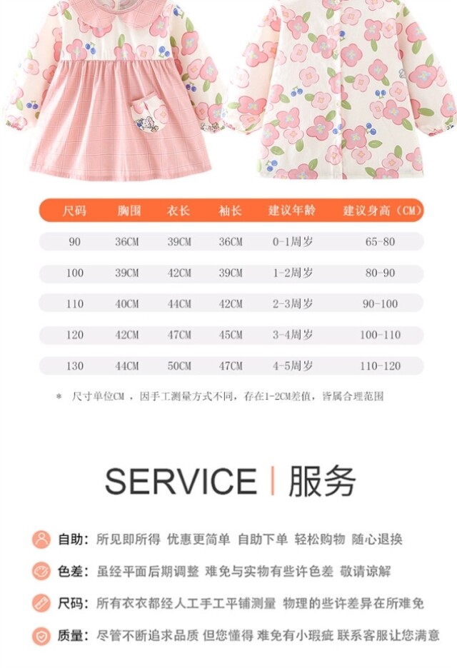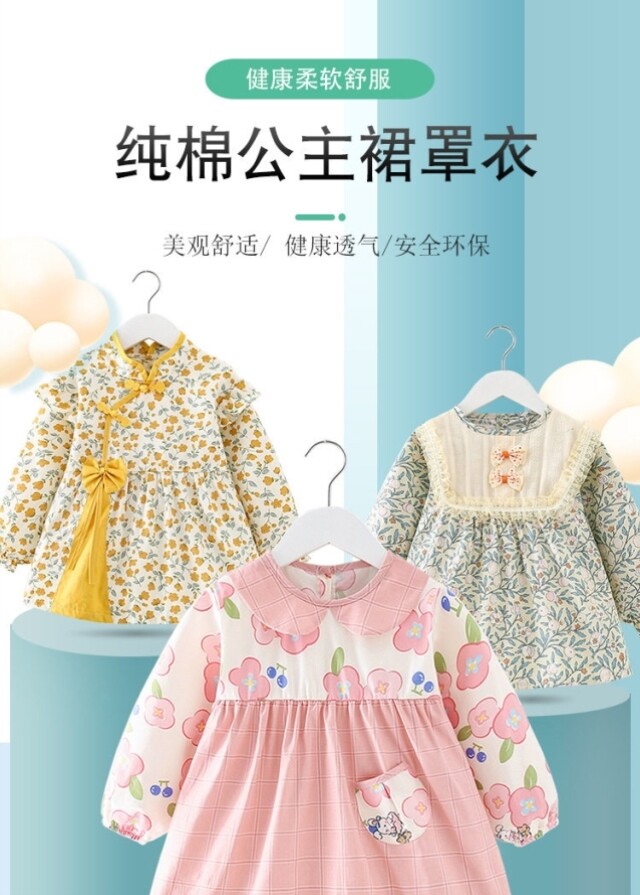 Smock for baby girls to wear as a foreign-style pure cotton children's apron, waterproof and dirt-proof, long-sleeved, thin, reverse dressing and eating protective clothing