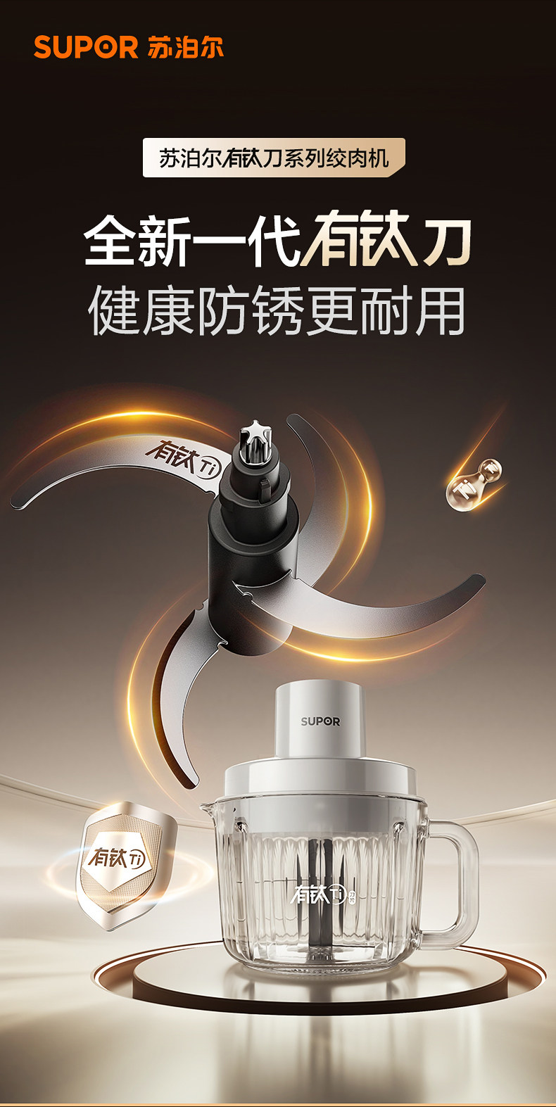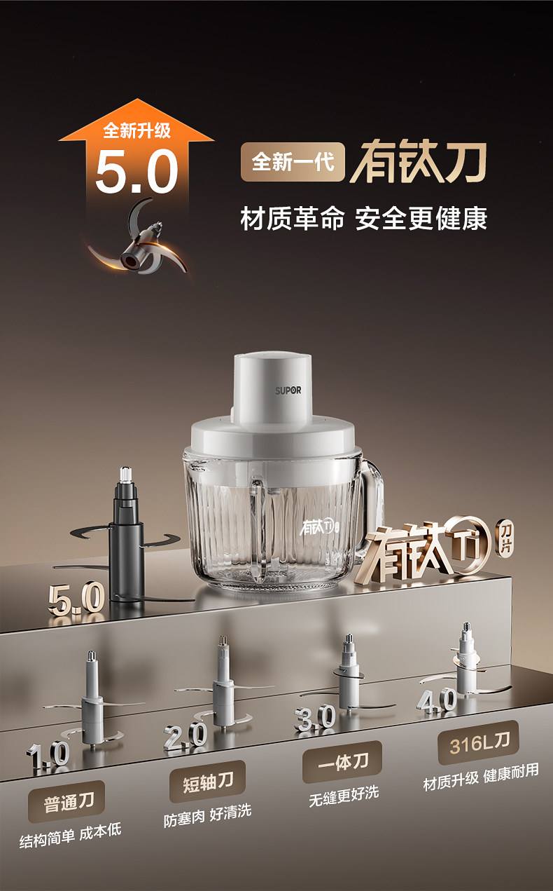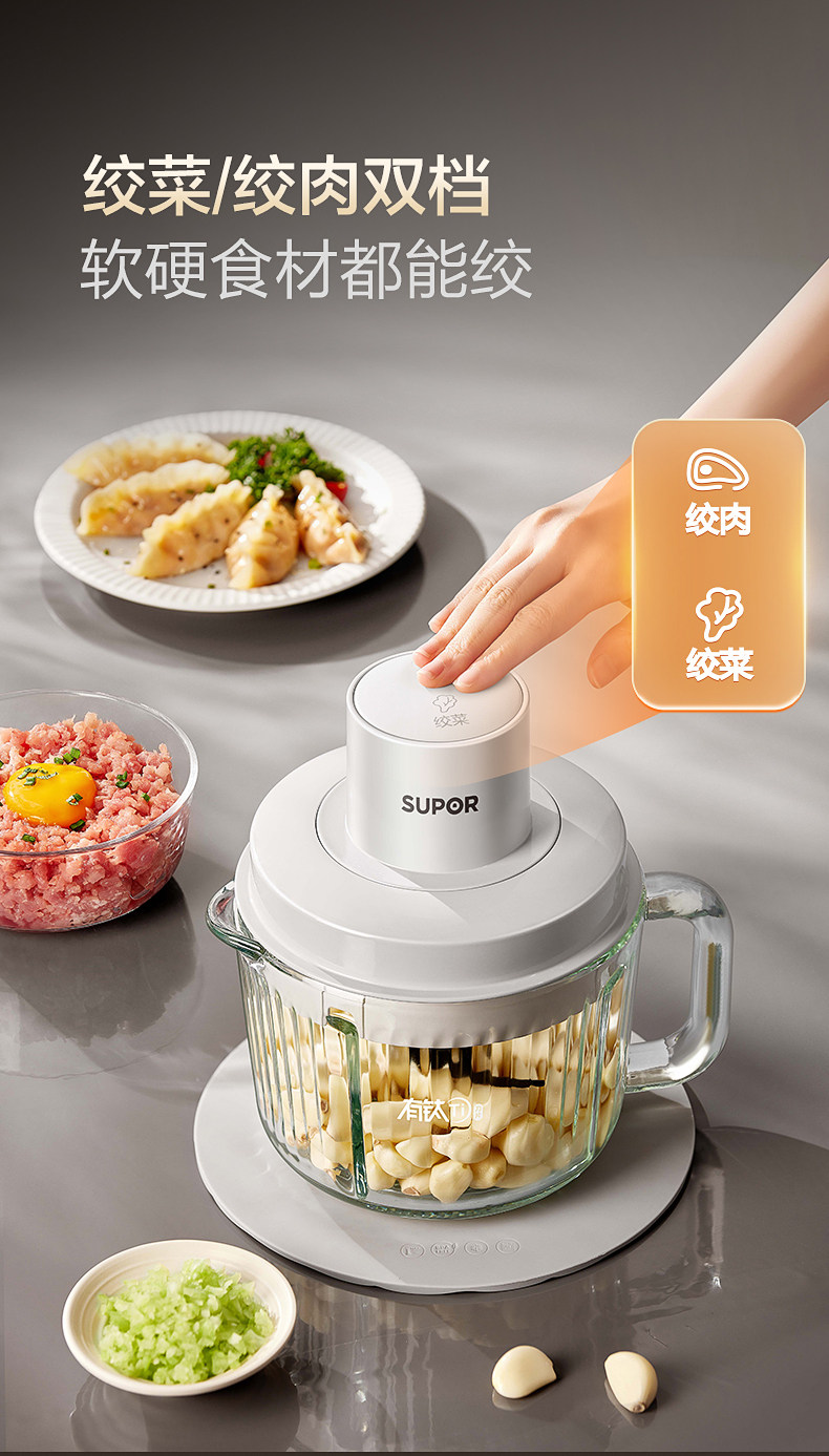 Supor Titanium Meat Grinder for Home Use, Large Capacity 2.2L Electric Small Blender and Food Processor, 2026 New Model