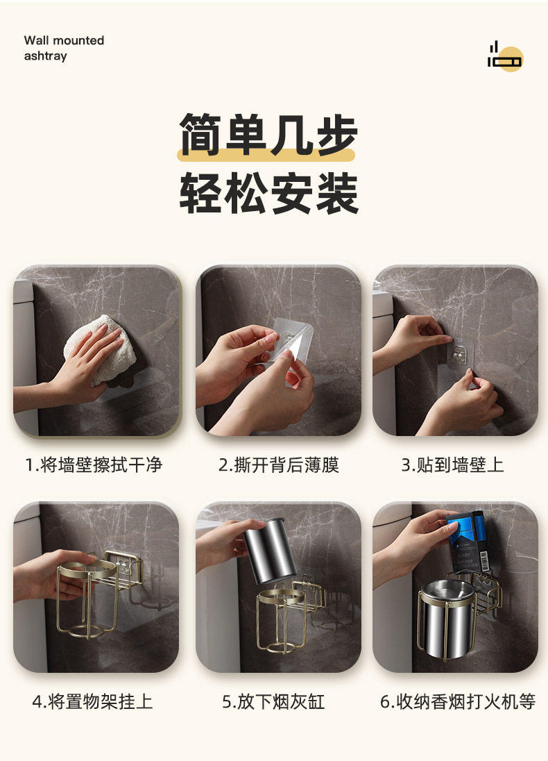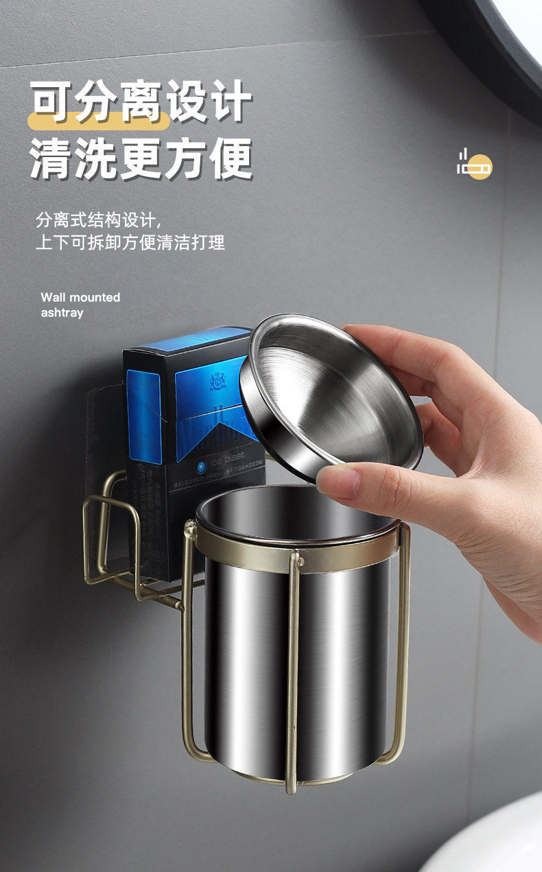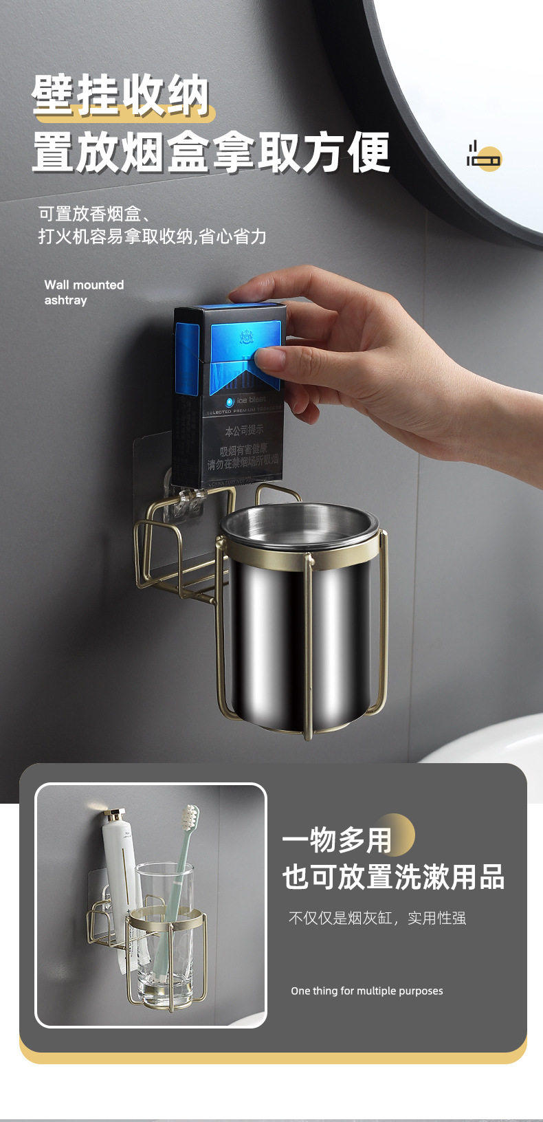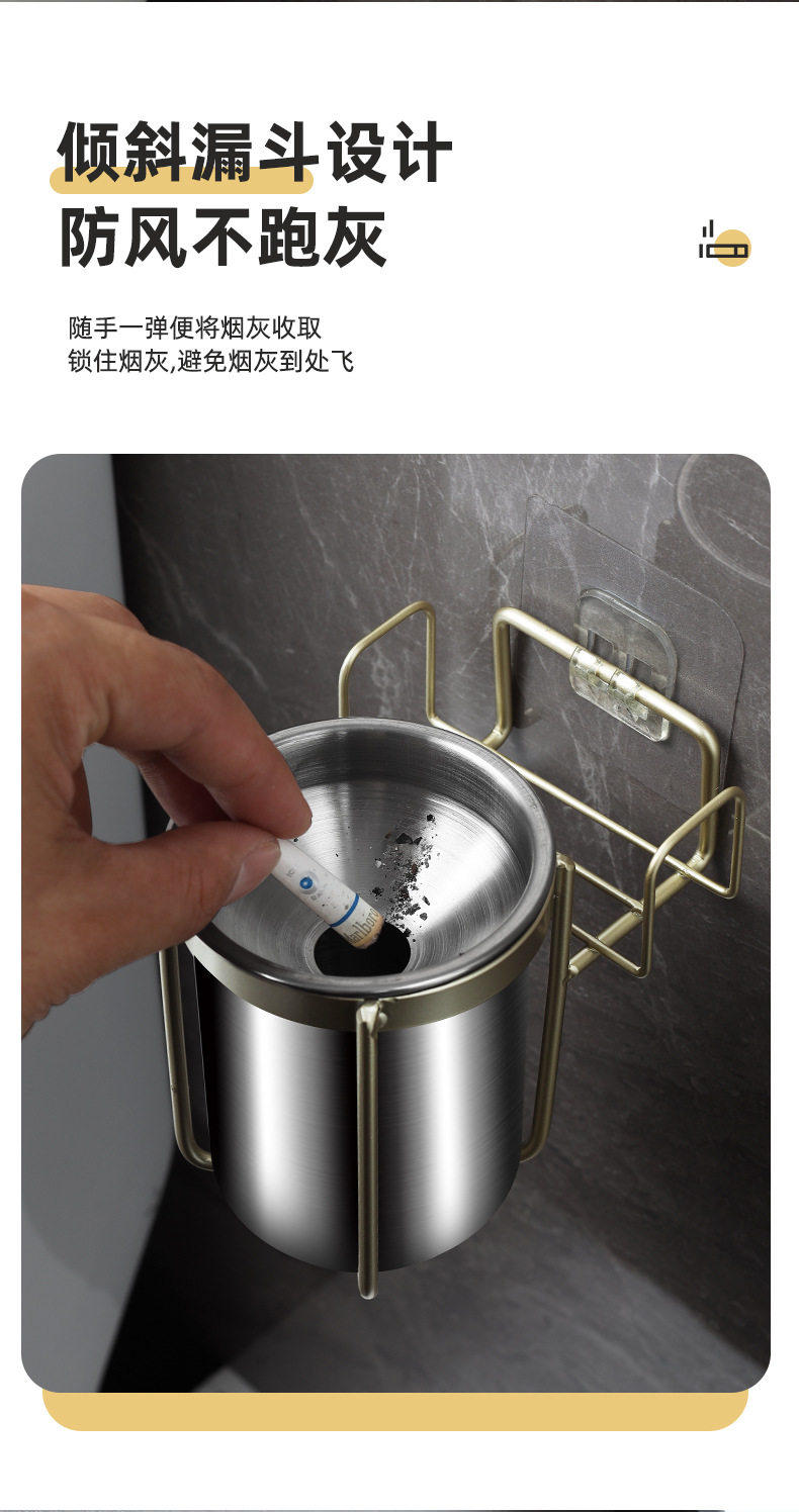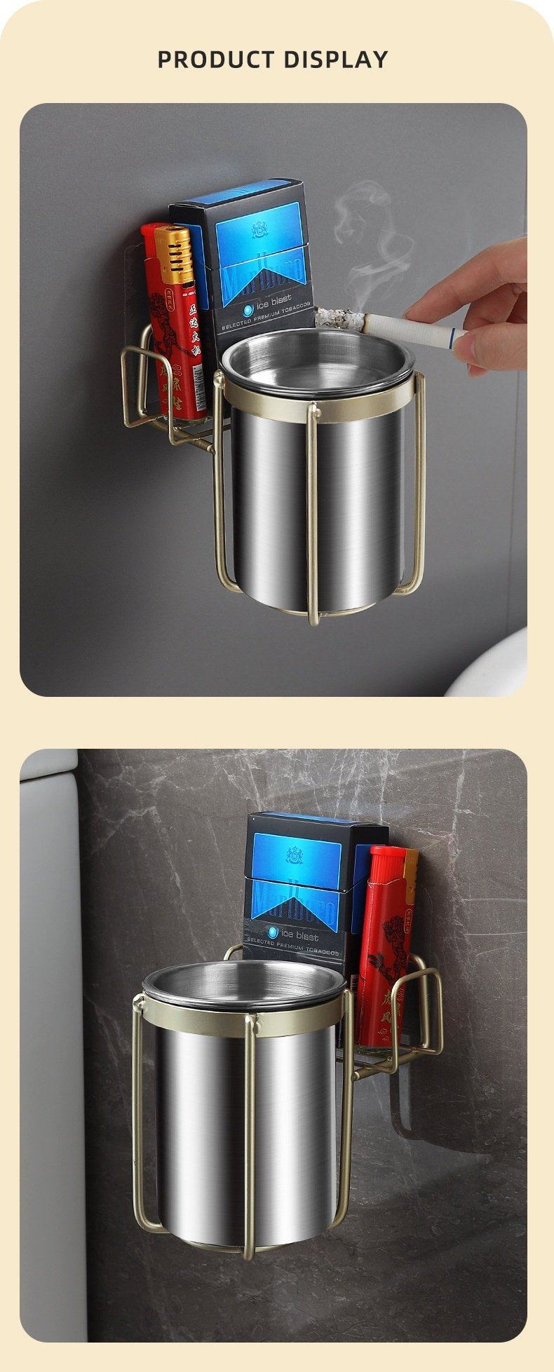 Creative Ashtray with Logo, Anti-Fly Ash, No-Drill Multifunctional Stainless Steel Wall-Mounted Ashtray for Bathroom