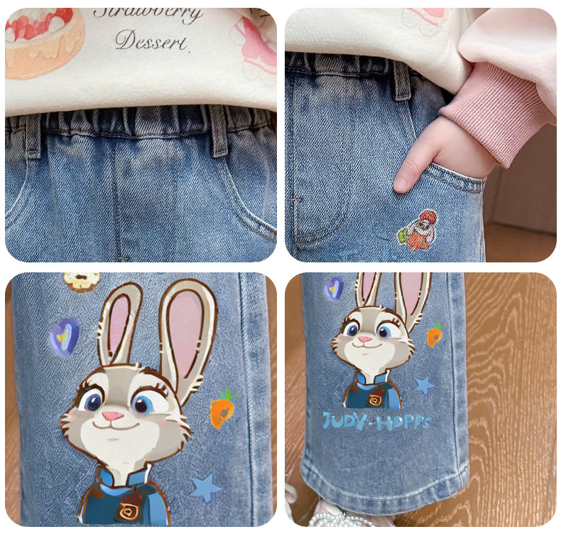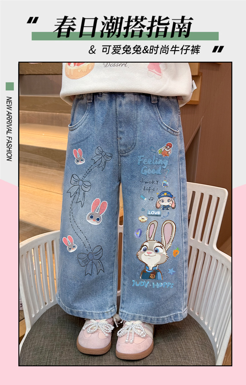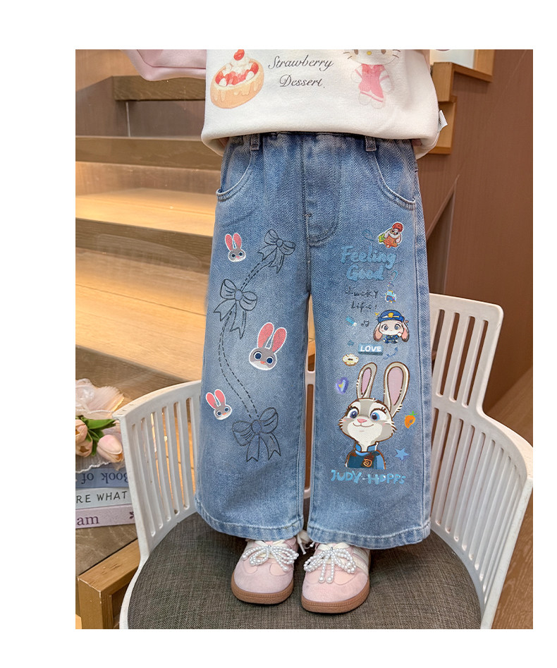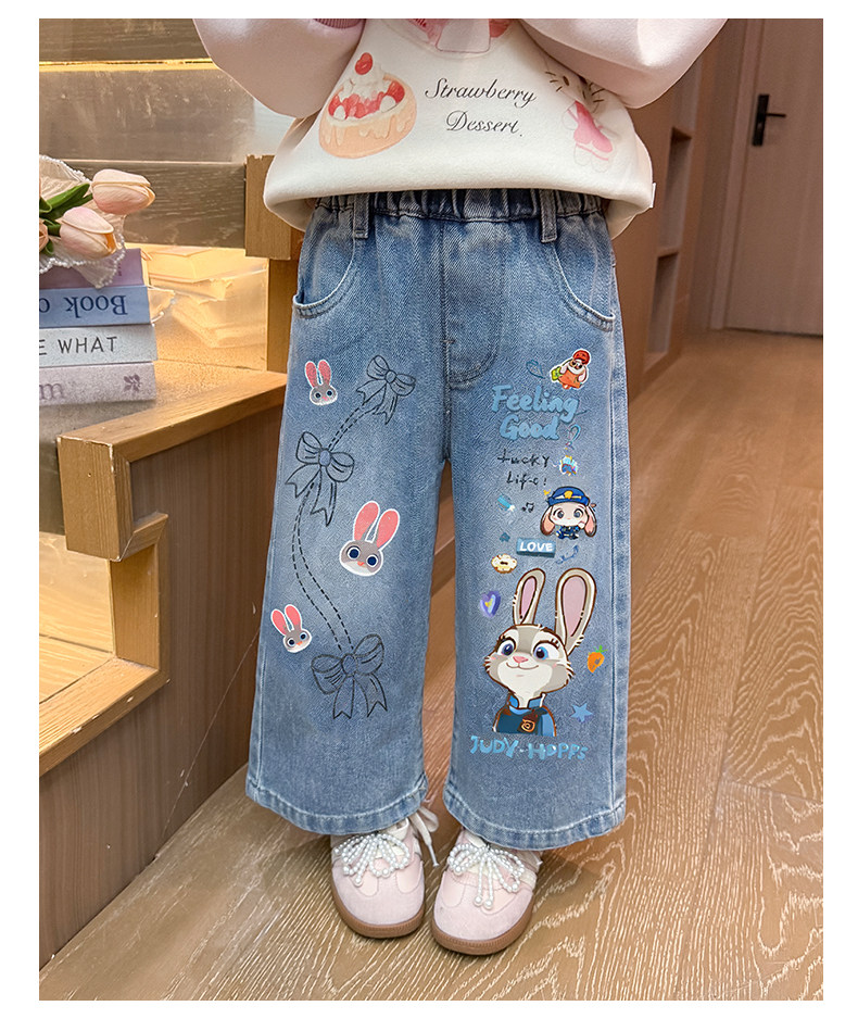 Girls' Rabbit Police Officer Jeans Spring and Autumn 2026 New Korean Style Straight Pants for Children Spring Outfit Baby Long Pants