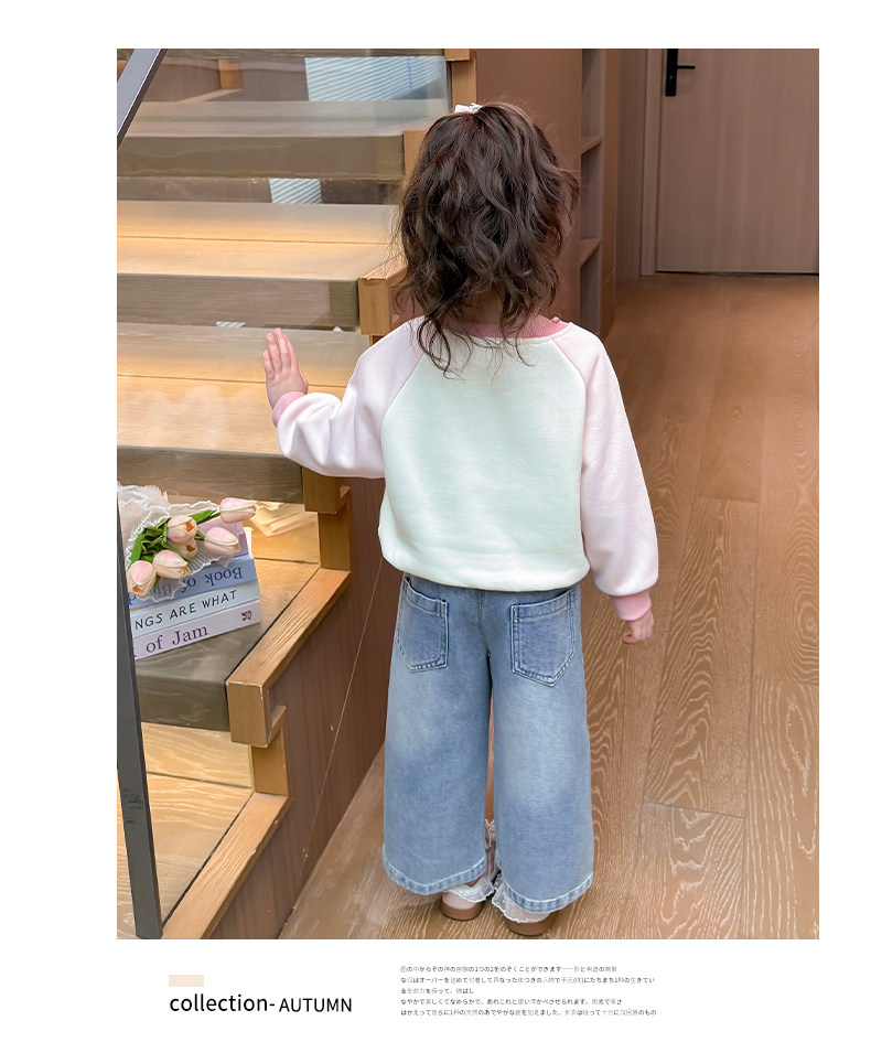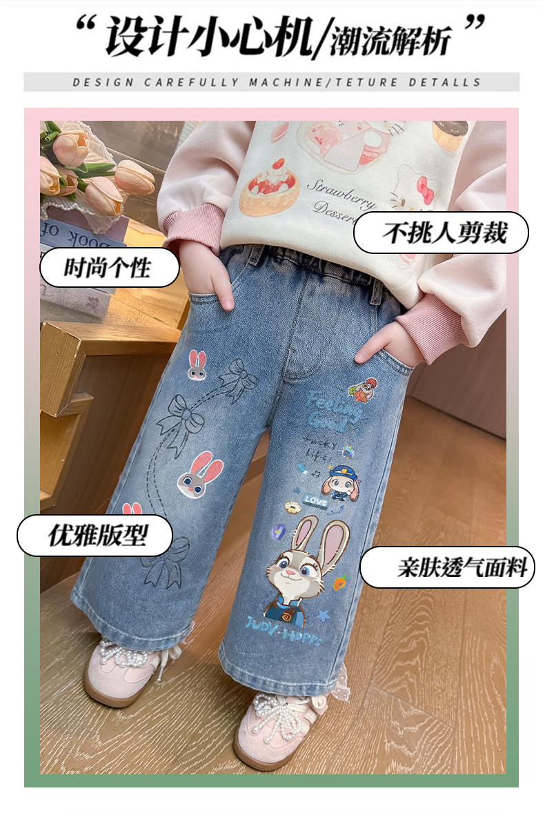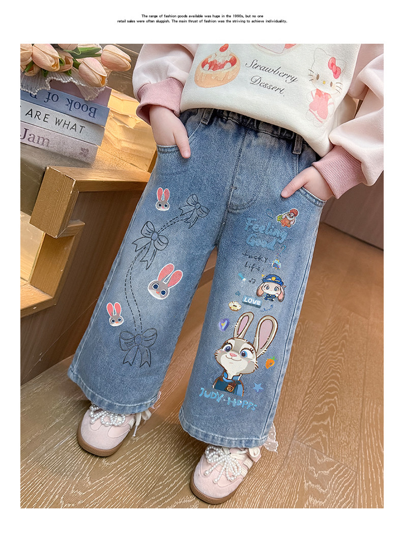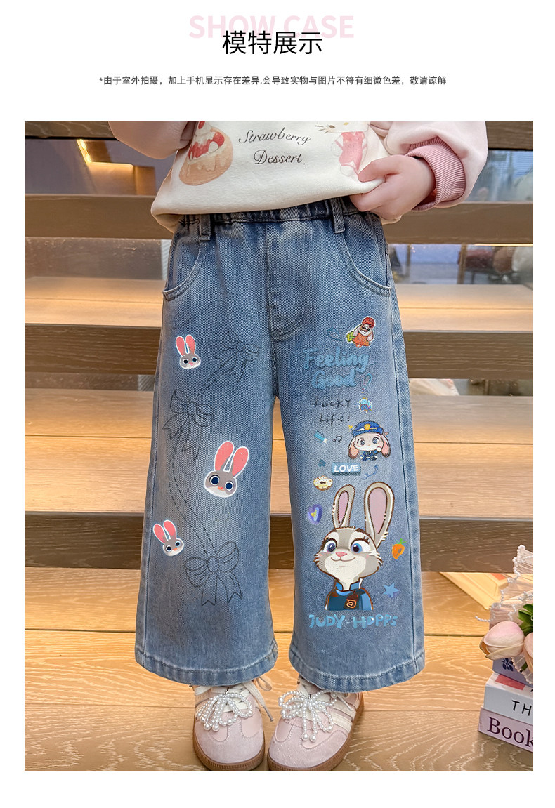 Girls' Rabbit Police Officer Jeans Spring and Autumn 2026 New Korean Style Straight Pants for Children Spring Outfit Baby Long Pants