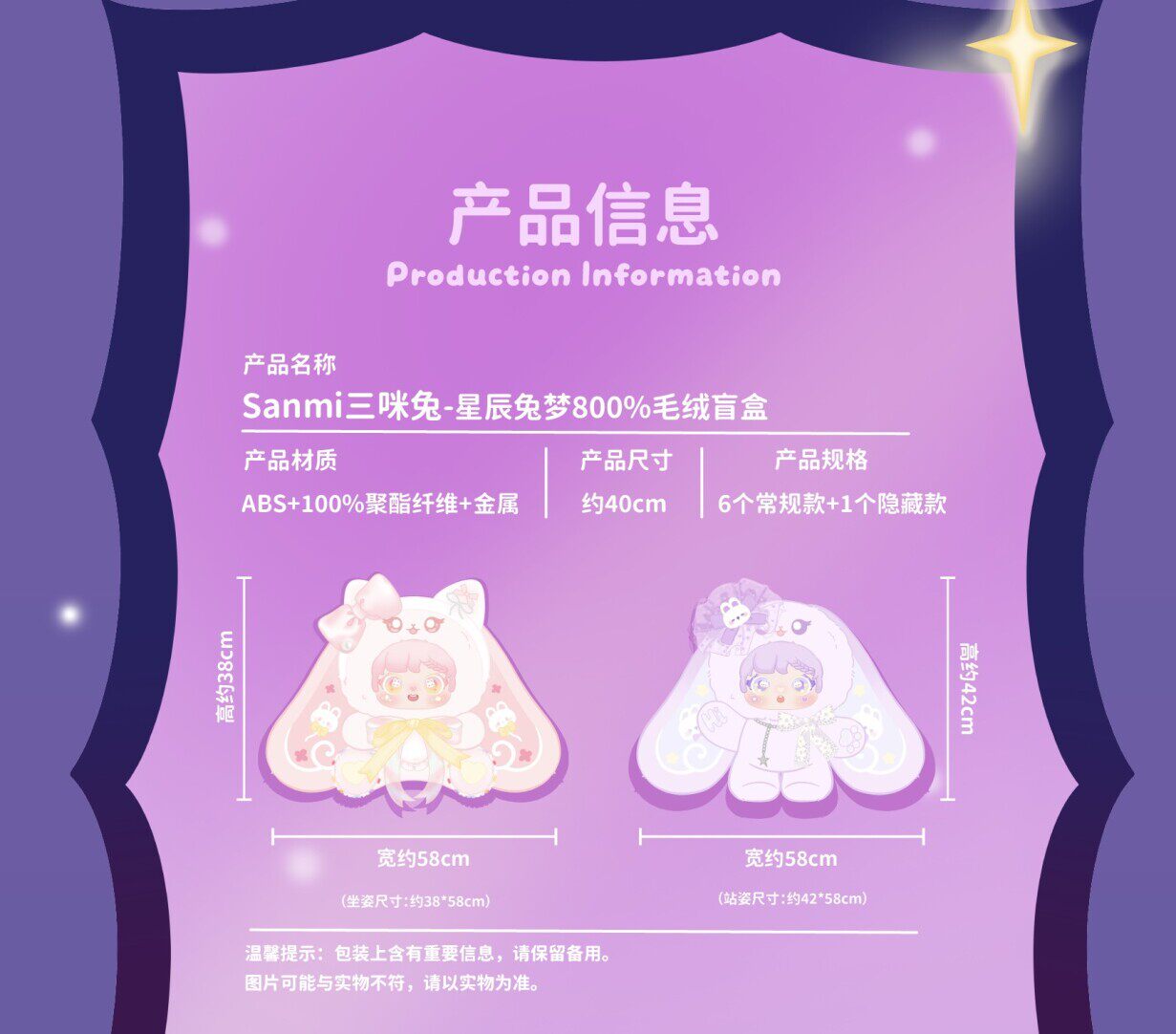 Sanmi Sanmi Rabbit Starry Rabbit Dream 800% Plush Doll Blind Box Indoor Decoration Toy Girl's Gift