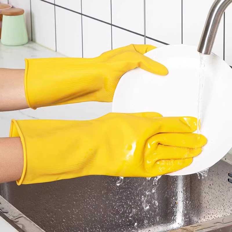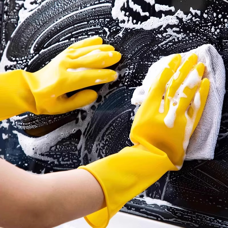 Cowhide Latex Gloves for Household Chores, Dishwashing, Kitchen Use, Durable Rubber, Thickened Silicone, Labor Protection, Wear-Resistant, Waterproof Work Gloves
